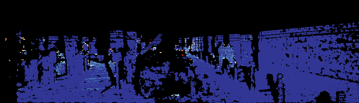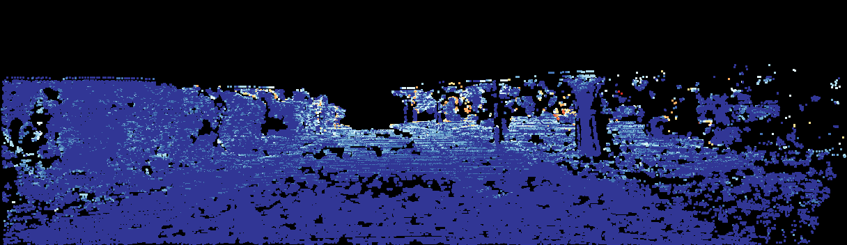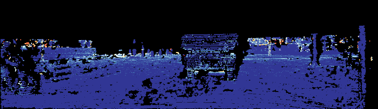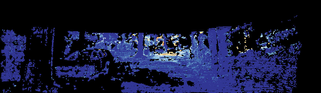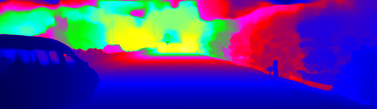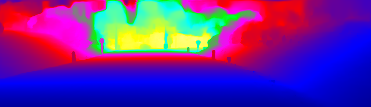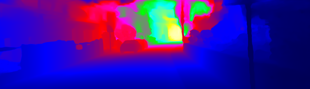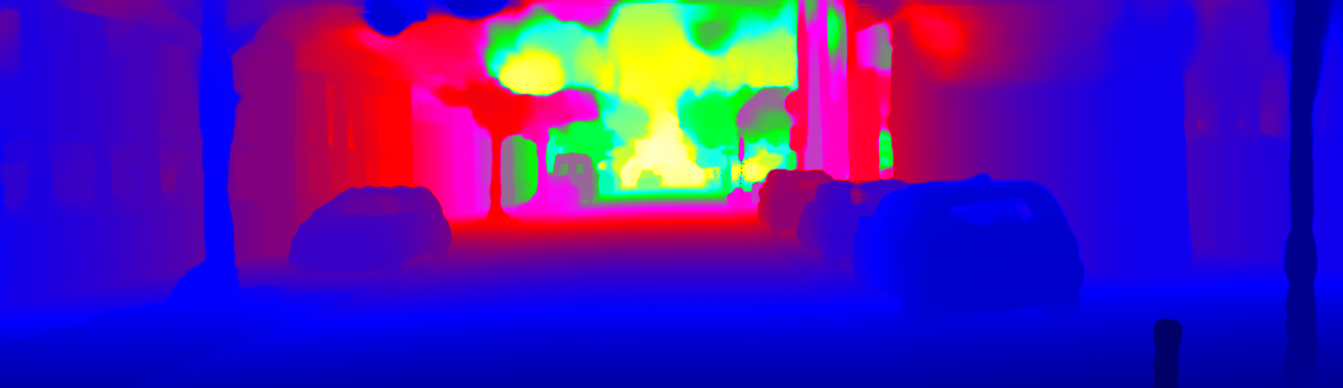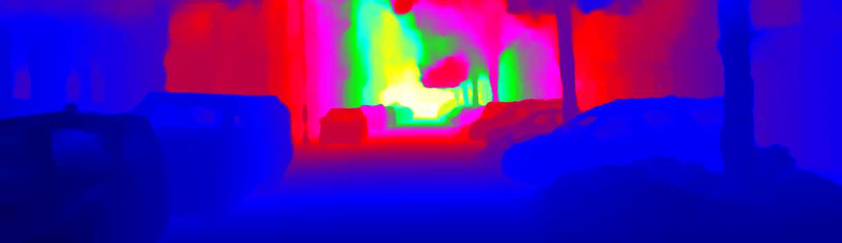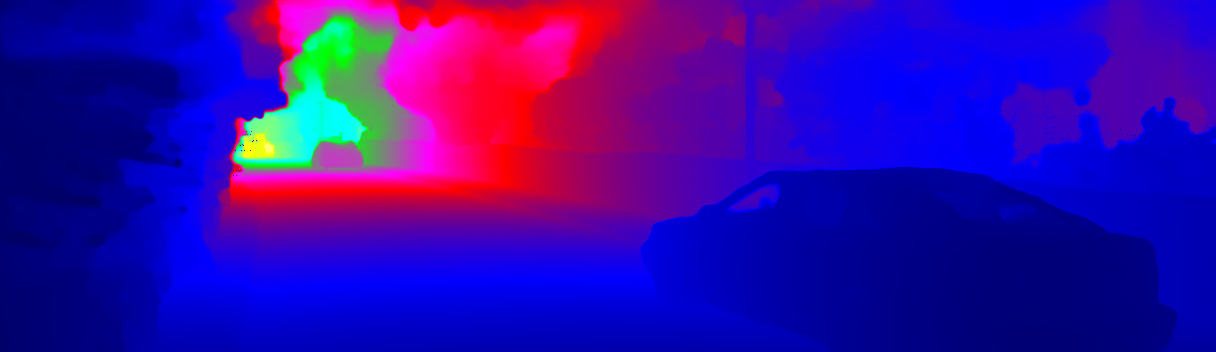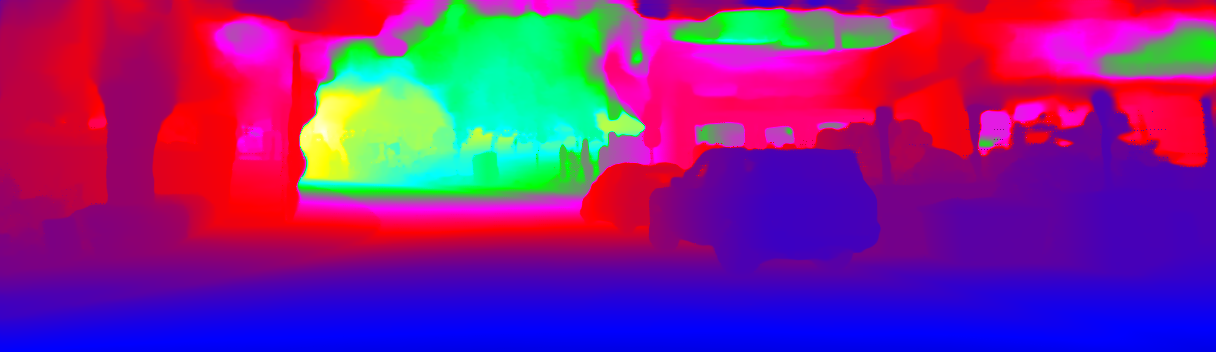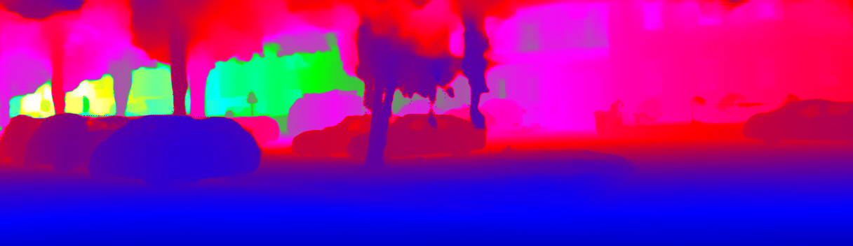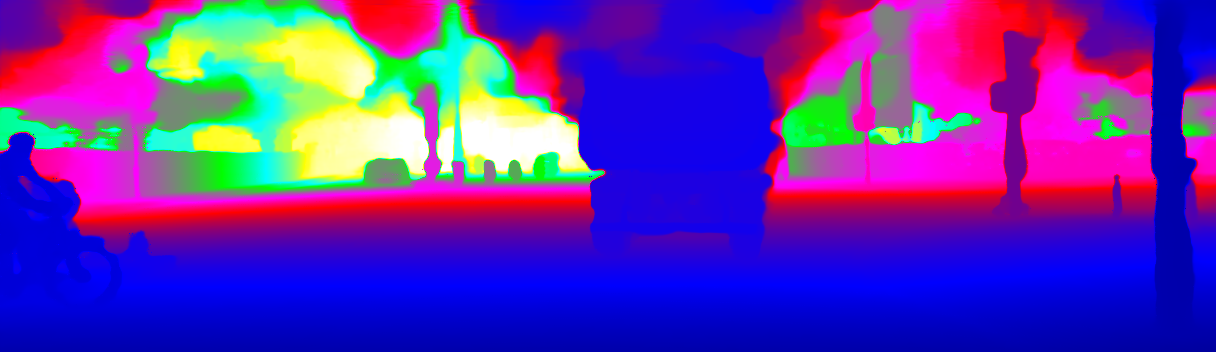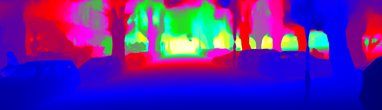 This page provides detailed results for the method(s) selected. For the first 20 test images, the percentage of erroneous pixels is depicted in the table. We use the error metric described in Sparsity Invariant CNNs (THREEDV 2017), which considers a pixel to be correctly estimated if the disparity or flow end-point error is <3px or <5% (for scene flow this criterion needs to be fulfilled for both disparity maps and the flow map). Underneath, the left input image, the estimated results and the error maps are shown (for disp_0/disp_1/flow/scene_flow, respectively). The error map uses the log-color scale described in Sparsity Invariant CNNs (THREEDV 2017), depicting correct estimates (<3px or <5% error) in blue and wrong estimates in red color tones. Dark regions in the error images denote the occluded pixels which fall outside the image boundaries. The false color maps of the results are scaled to the largest ground truth disparity values / flow magnitudes.