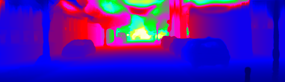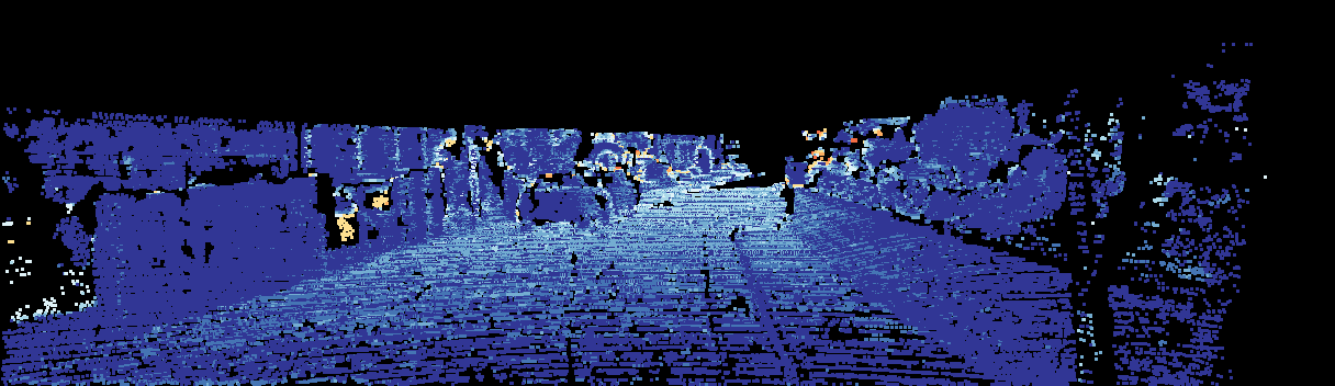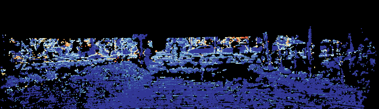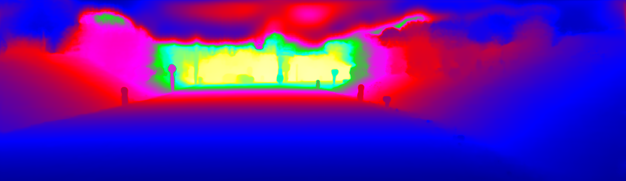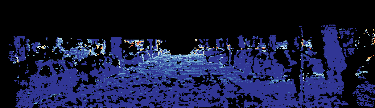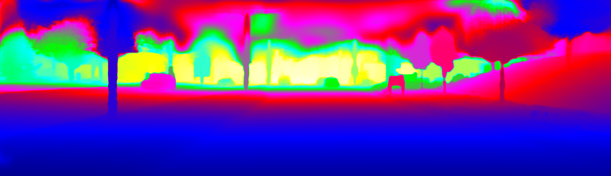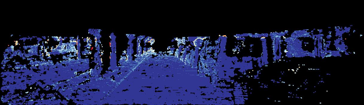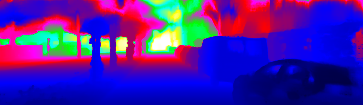 This page provides detailed results for the method(s) selected. For the first 20 test images, the percentage of erroneous pixels is depicted in the table. We use the error metric described in Sparsity Invariant CNNs (THREEDV 2017), which considers a pixel to be correctly estimated if the disparity or flow end-point error is <3px or <5% (for scene flow this criterion needs to be fulfilled for both disparity maps and the flow map). Underneath, the left input image, the estimated results and the error maps are shown (for disp_0/disp_1/flow/scene_flow, respectively). The error map uses the log-color scale described in Sparsity Invariant CNNs (THREEDV 2017), depicting correct estimates (<3px or <5% error) in blue and wrong estimates in red color tones. Dark regions in the error images denote the occluded pixels which fall outside the image boundaries. The false color maps of the results are scaled to the largest ground truth disparity values / flow magnitudes.