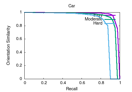 Object detection and orientation estimation results. Results for object detection are given in terms of average precision (AP) and results for joint object detection and orientation estimation are provided in terms of average orientation similarity (AOS).