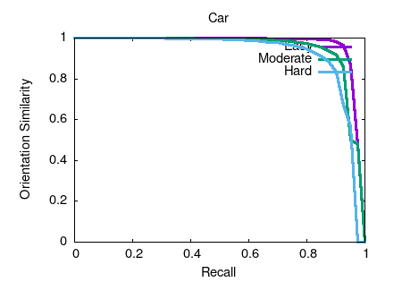 Object detection and orientation estimation results. Results for object detection are given in terms of average precision (AP) and results for joint object detection and orientation estimation are provided in terms of average orientation similarity (AOS).