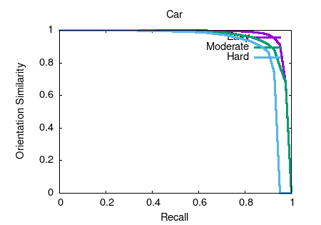 Object detection and orientation estimation results. Results for object detection are given in terms of average precision (AP) and results for joint object detection and orientation estimation are provided in terms of average orientation similarity (AOS).