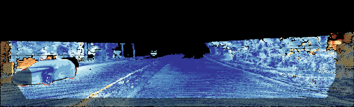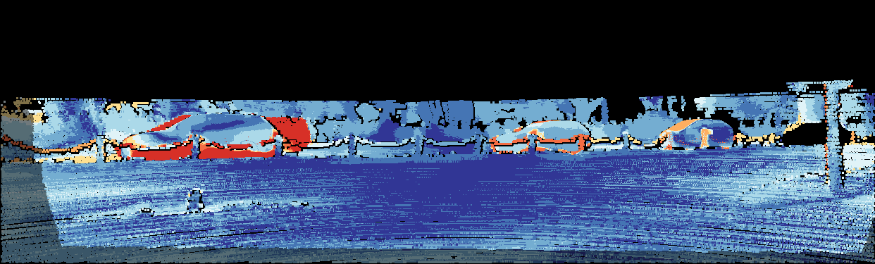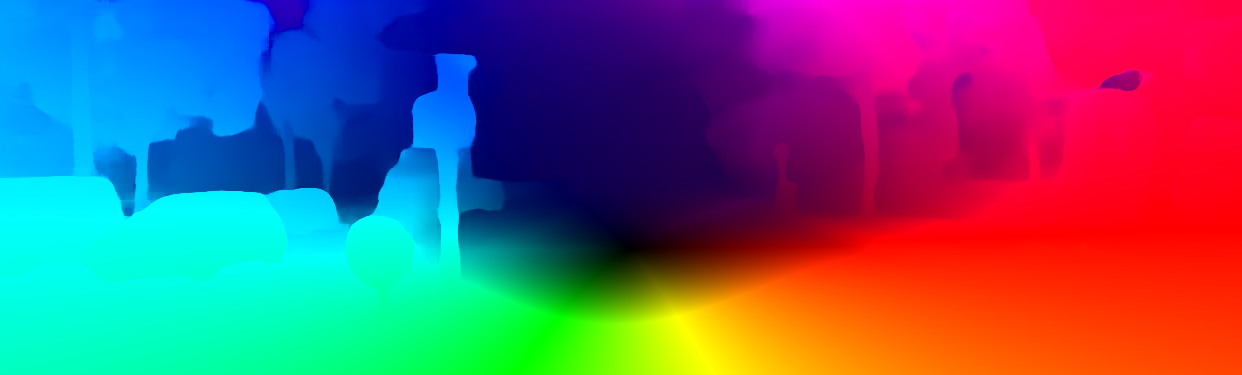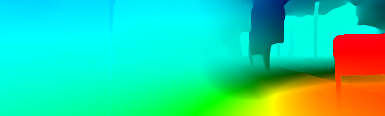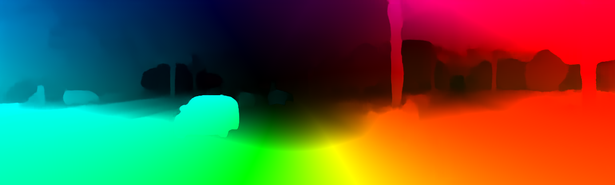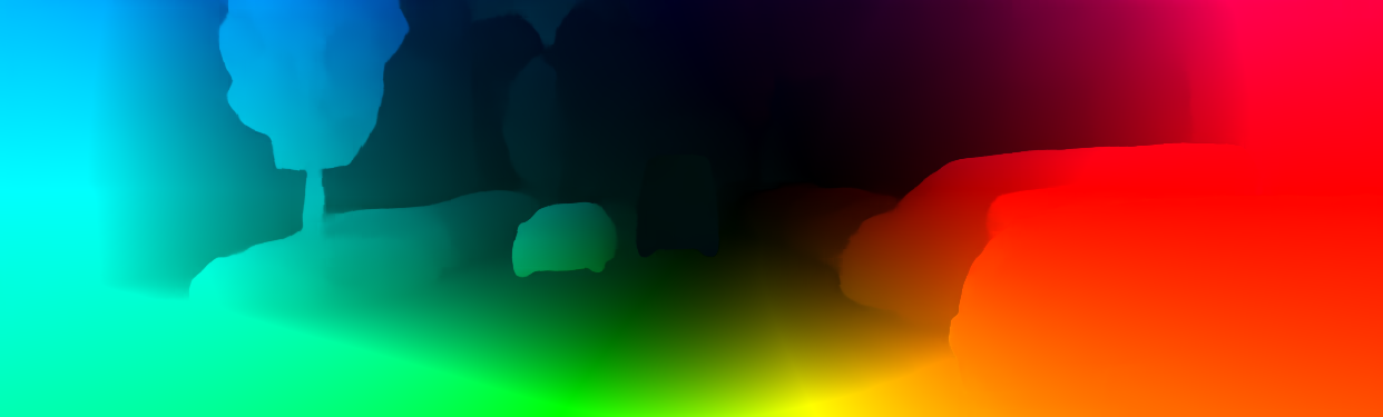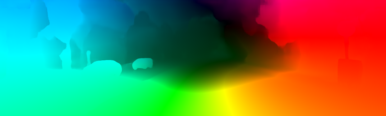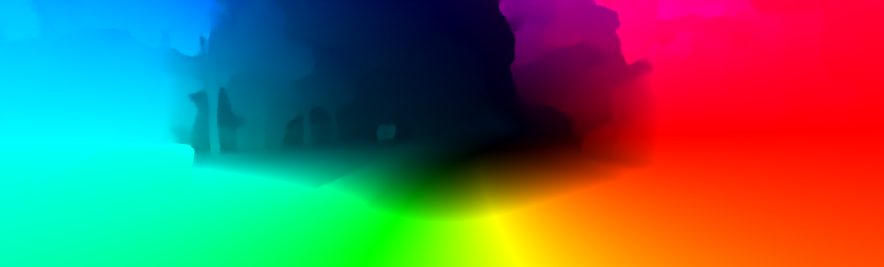 This page provides detailed results for the method(s) selected. For the first 20 test images, the percentage of erroneous pixels is depicted in the table. We use the error metric described in Object Scene Flow for Autonomous Vehicles (CVPR 2015), which considers a pixel to be correctly estimated if the disparity or flow end-point error is <3px or <5% (for scene flow this criterion needs to be fulfilled for both disparity maps and the flow map). Underneath, the left input image, the estimated results and the error maps are shown (for disp_0/disp_1/flow/scene_flow, respectively). The error map uses the log-color scale described in Object Scene Flow for Autonomous Vehicles (CVPR 2015), depicting correct estimates (<3px or <5% error) in blue and wrong estimates in red color tones. Dark regions in the error images denote the occluded pixels which fall outside the image boundaries. The false color maps of the results are scaled to the largest ground truth disparity values / flow magnitudes.