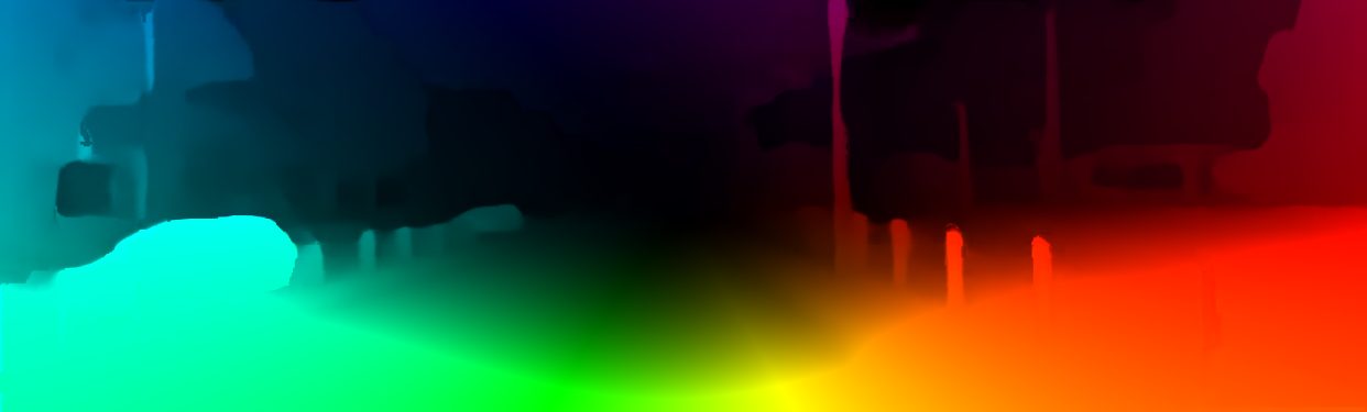 This page provides detailed results for the method(s) selected. For the first 20 test images, the percentage of erroneous pixels is depicted in the table. We use the error metric described in Object Scene Flow for Autonomous Vehicles (CVPR 2015), which considers a pixel to be correctly estimated if the disparity or flow end-point error is <3px or <5% (for scene flow this criterion needs to be fulfilled for both disparity maps and the flow map). Underneath, the left input image, the estimated results and the error maps are shown (for disp_0/disp_1/flow/scene_flow, respectively). The error map uses the log-color scale described in Object Scene Flow for Autonomous Vehicles (CVPR 2015), depicting correct estimates (<3px or <5% error) in blue and wrong estimates in red color tones. Dark regions in the error images denote the occluded pixels which fall outside the image boundaries. The false color maps of the results are scaled to the largest ground truth disparity values / flow magnitudes.