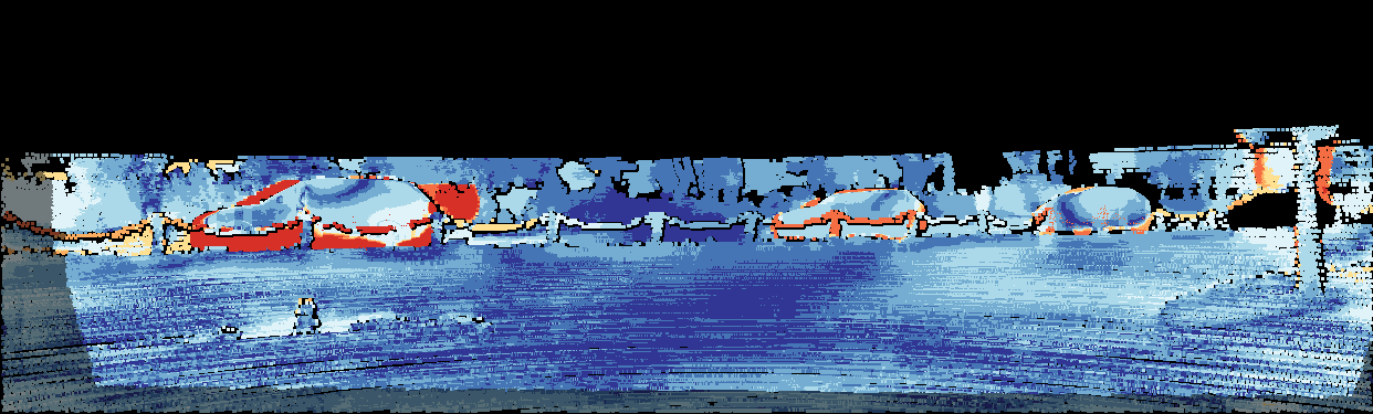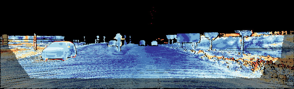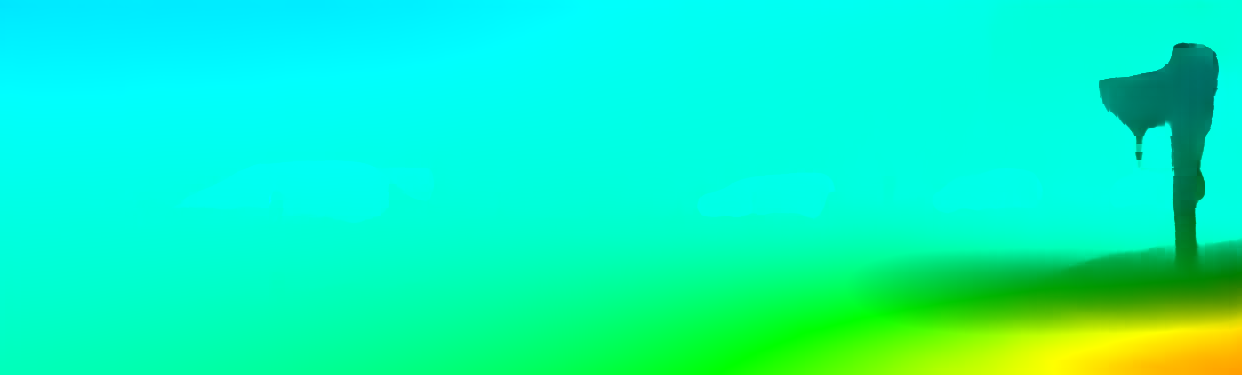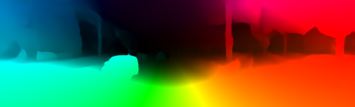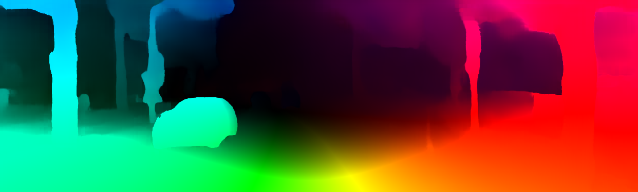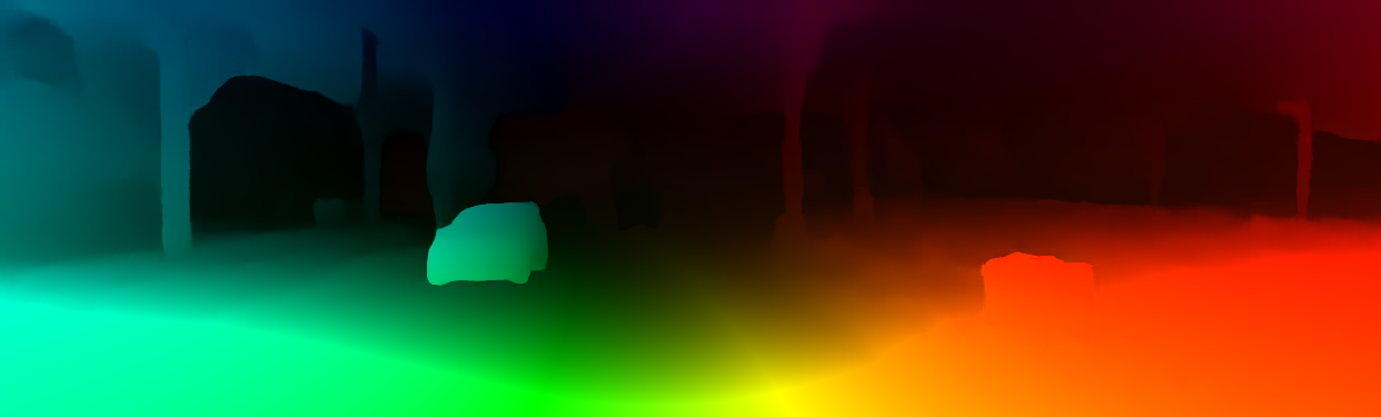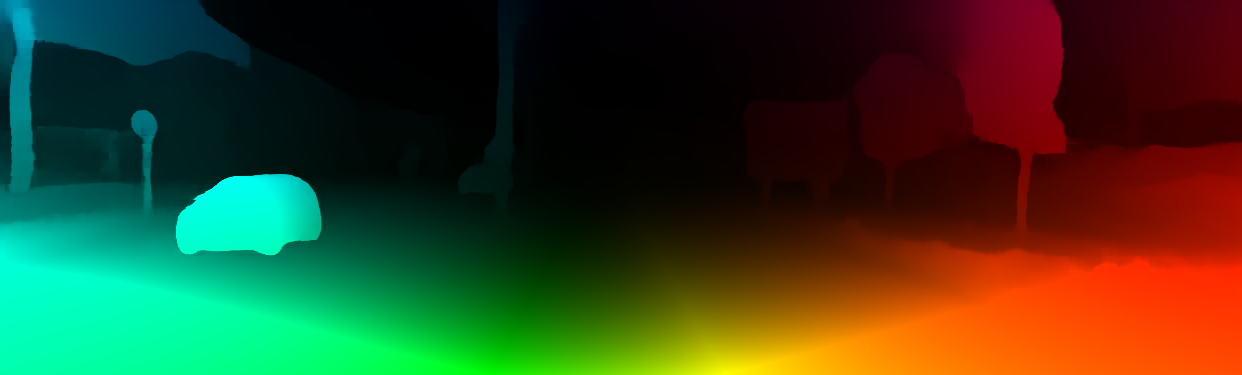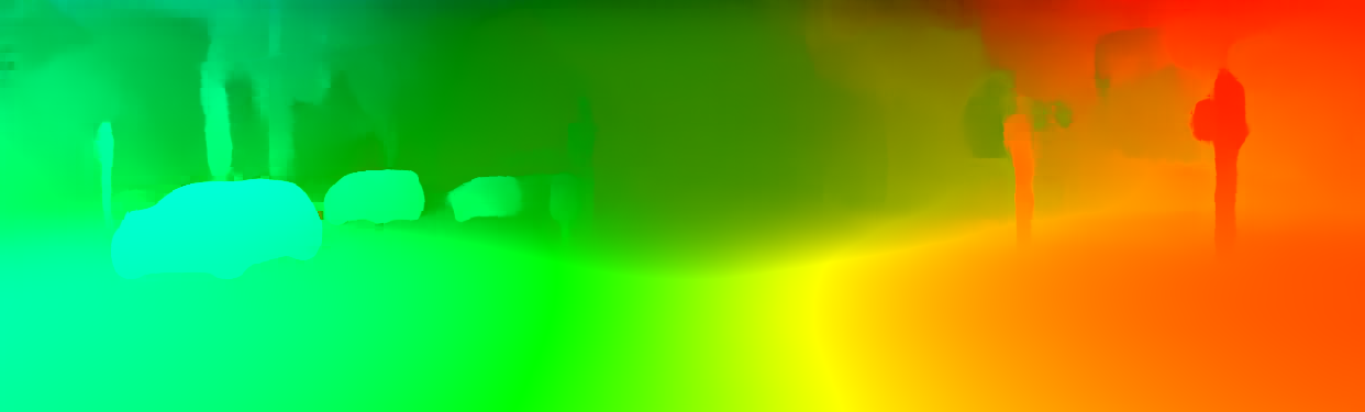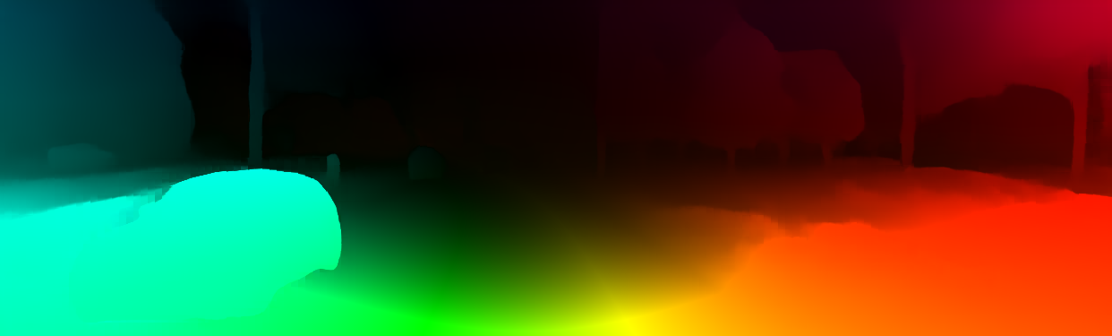 This page provides detailed results for the method(s) selected. For the first 20 test images, the percentage of erroneous pixels is depicted in the table. We use the error metric described in Object Scene Flow for Autonomous Vehicles (CVPR 2015), which considers a pixel to be correctly estimated if the disparity or flow end-point error is <3px or <5% (for scene flow this criterion needs to be fulfilled for both disparity maps and the flow map). Underneath, the left input image, the estimated results and the error maps are shown (for disp_0/disp_1/flow/scene_flow, respectively). The error map uses the log-color scale described in Object Scene Flow for Autonomous Vehicles (CVPR 2015), depicting correct estimates (<3px or <5% error) in blue and wrong estimates in red color tones. Dark regions in the error images denote the occluded pixels which fall outside the image boundaries. The false color maps of the results are scaled to the largest ground truth disparity values / flow magnitudes.