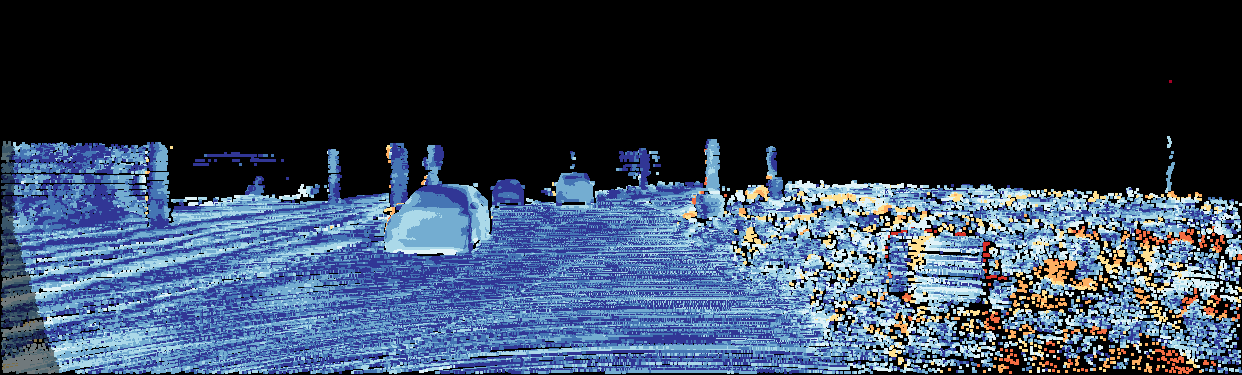 This page provides detailed results for the method(s) selected. For the first 20 test images, the percentage of erroneous pixels is depicted in the table. We use the error metric described in Object Scene Flow for Autonomous Vehicles (CVPR 2015), which considers a pixel to be correctly estimated if the disparity or flow end-point error is <3px or <5% (for scene flow this criterion needs to be fulfilled for both disparity maps and the flow map). Underneath, the left input image, the estimated results and the error maps are shown (for disp_0/disp_1/flow/scene_flow, respectively). The error map uses the log-color scale described in Object Scene Flow for Autonomous Vehicles (CVPR 2015), depicting correct estimates (<3px or <5% error) in blue and wrong estimates in red color tones. Dark regions in the error images denote the occluded pixels which fall outside the image boundaries. The false color maps of the results are scaled to the largest ground truth disparity values / flow magnitudes.