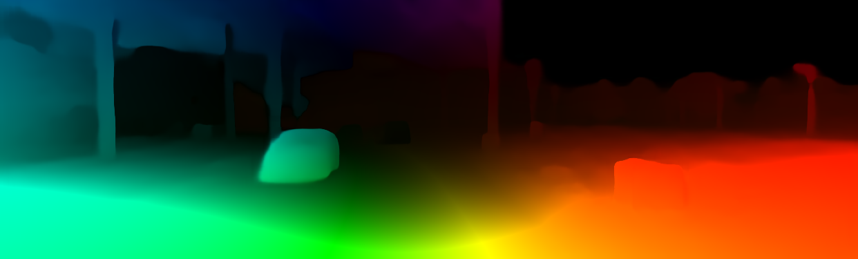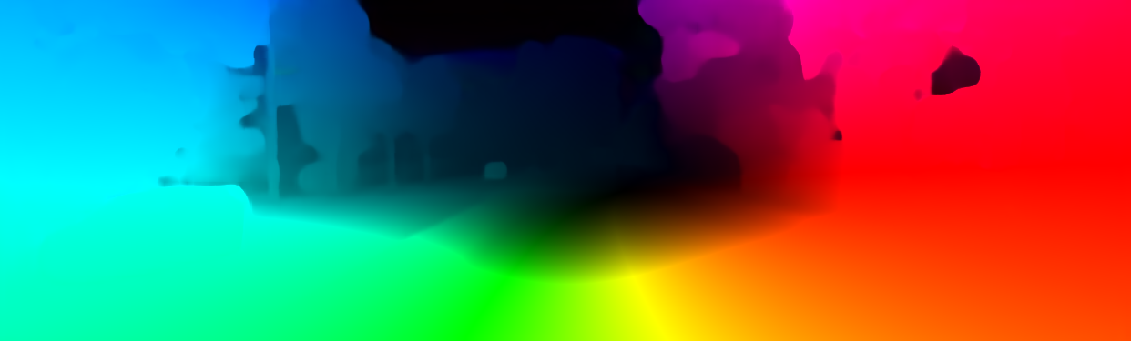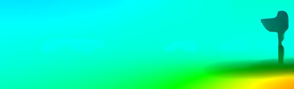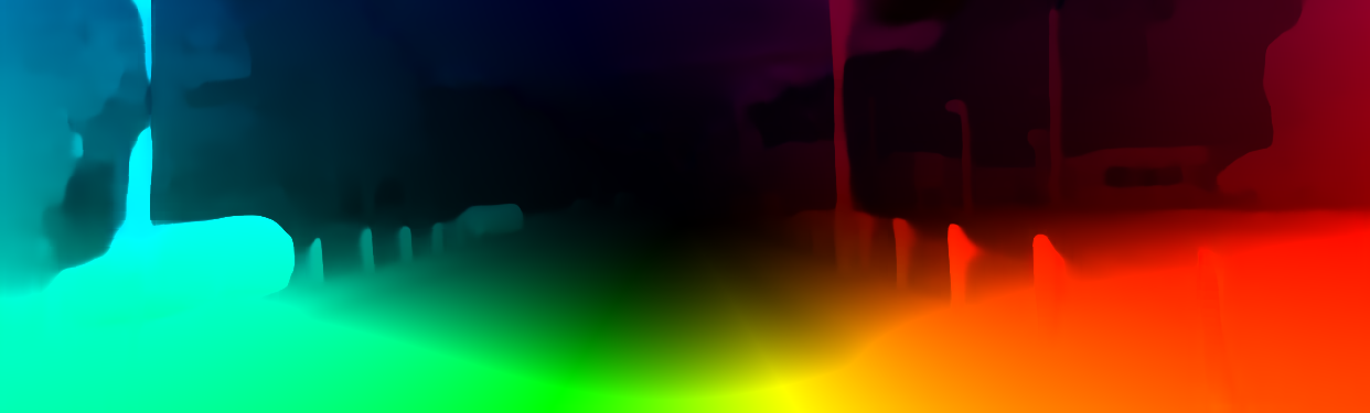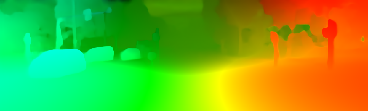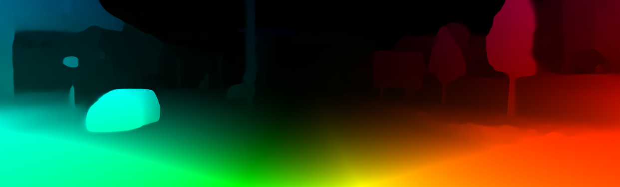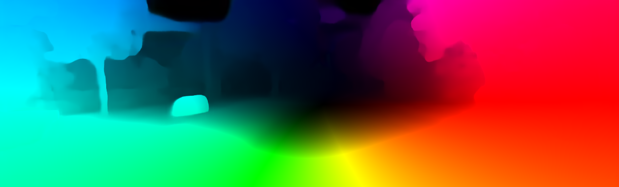 This page provides detailed results for the method(s) selected. For the first 20 test images, the percentage of erroneous pixels is depicted in the table. We use the error metric described in Object Scene Flow for Autonomous Vehicles (CVPR 2015), which considers a pixel to be correctly estimated if the disparity or flow end-point error is <3px or <5% (for scene flow this criterion needs to be fulfilled for both disparity maps and the flow map). Underneath, the left input image, the estimated results and the error maps are shown (for disp_0/disp_1/flow/scene_flow, respectively). The error map uses the log-color scale described in Object Scene Flow for Autonomous Vehicles (CVPR 2015), depicting correct estimates (<3px or <5% error) in blue and wrong estimates in red color tones. Dark regions in the error images denote the occluded pixels which fall outside the image boundaries. The false color maps of the results are scaled to the largest ground truth disparity values / flow magnitudes.