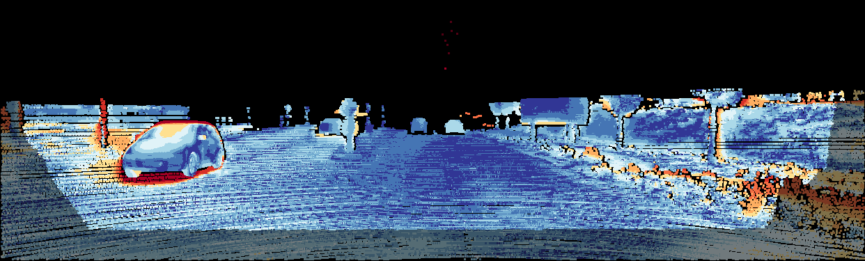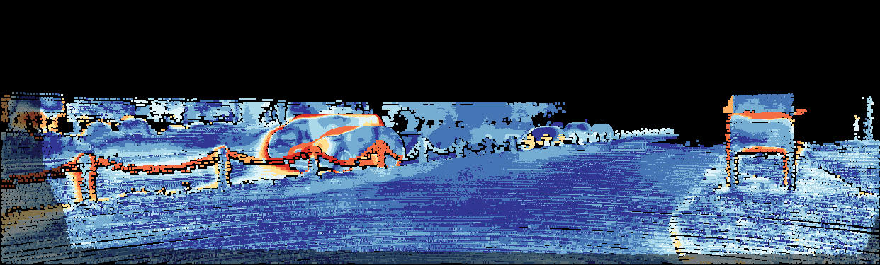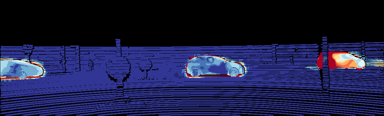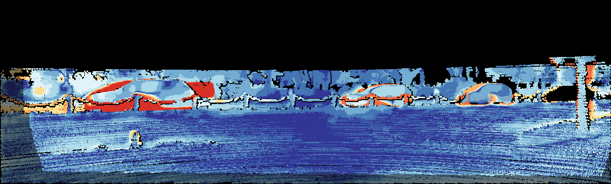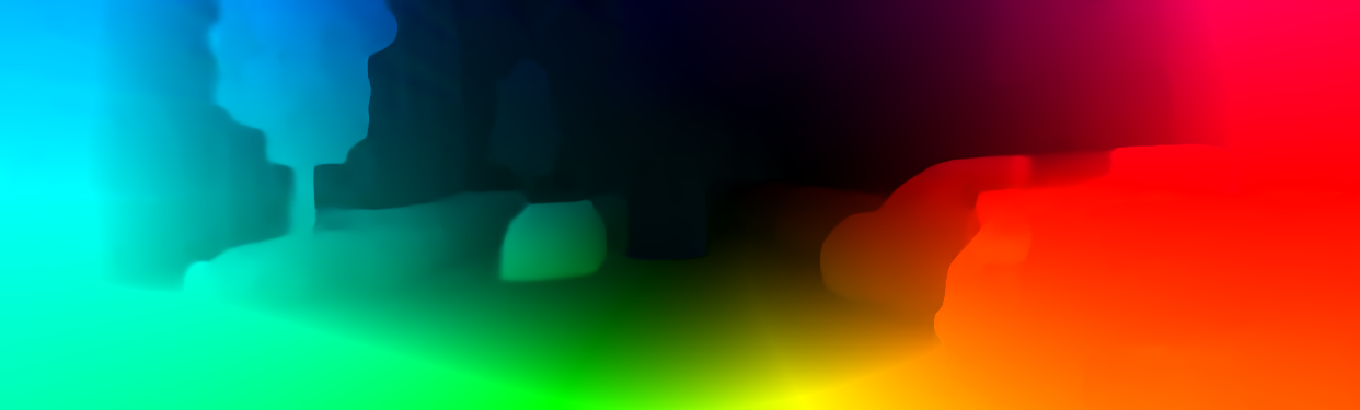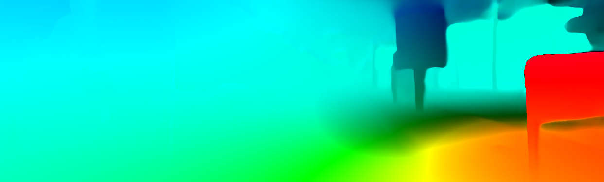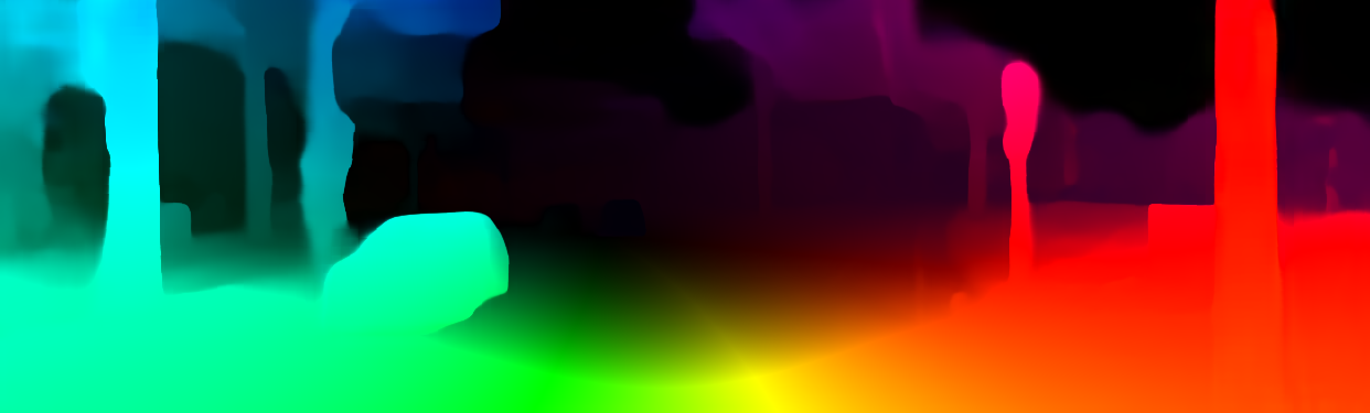 This page provides detailed results for the method(s) selected. For the first 20 test images, the percentage of erroneous pixels is depicted in the table. We use the error metric described in Object Scene Flow for Autonomous Vehicles (CVPR 2015), which considers a pixel to be correctly estimated if the disparity or flow end-point error is <3px or <5% (for scene flow this criterion needs to be fulfilled for both disparity maps and the flow map). Underneath, the left input image, the estimated results and the error maps are shown (for disp_0/disp_1/flow/scene_flow, respectively). The error map uses the log-color scale described in Object Scene Flow for Autonomous Vehicles (CVPR 2015), depicting correct estimates (<3px or <5% error) in blue and wrong estimates in red color tones. Dark regions in the error images denote the occluded pixels which fall outside the image boundaries. The false color maps of the results are scaled to the largest ground truth disparity values / flow magnitudes.