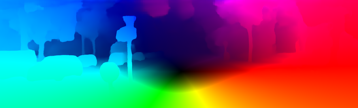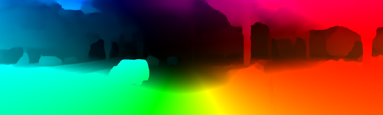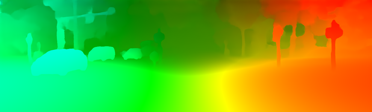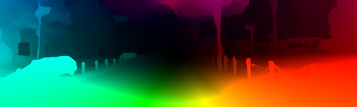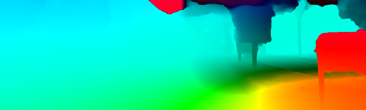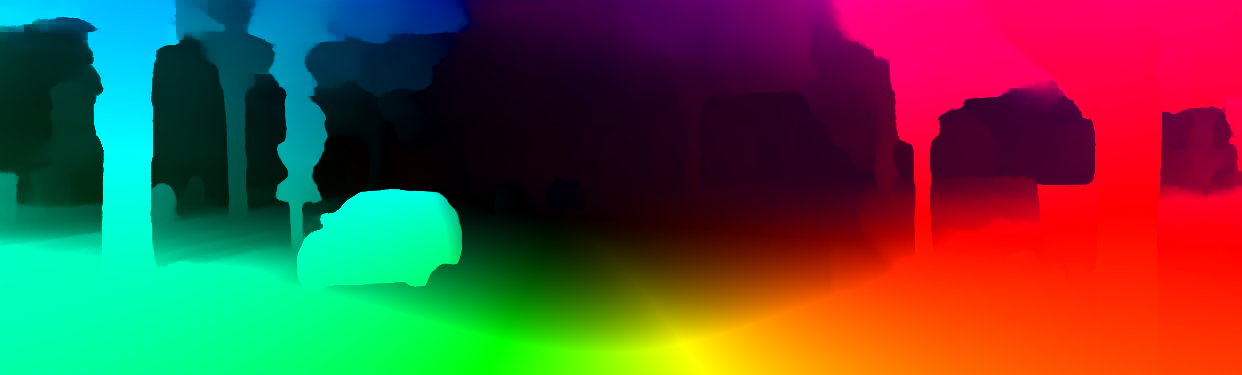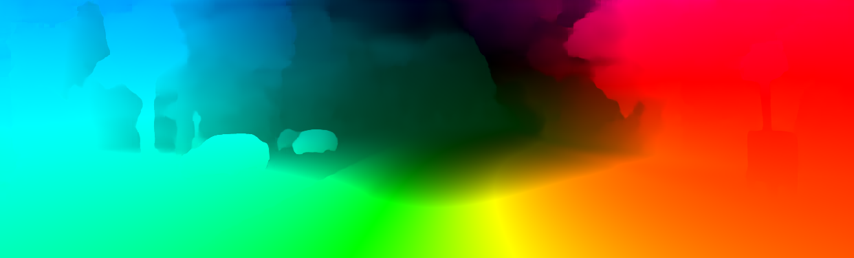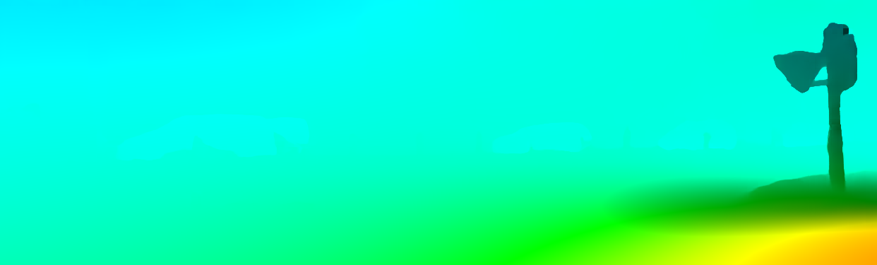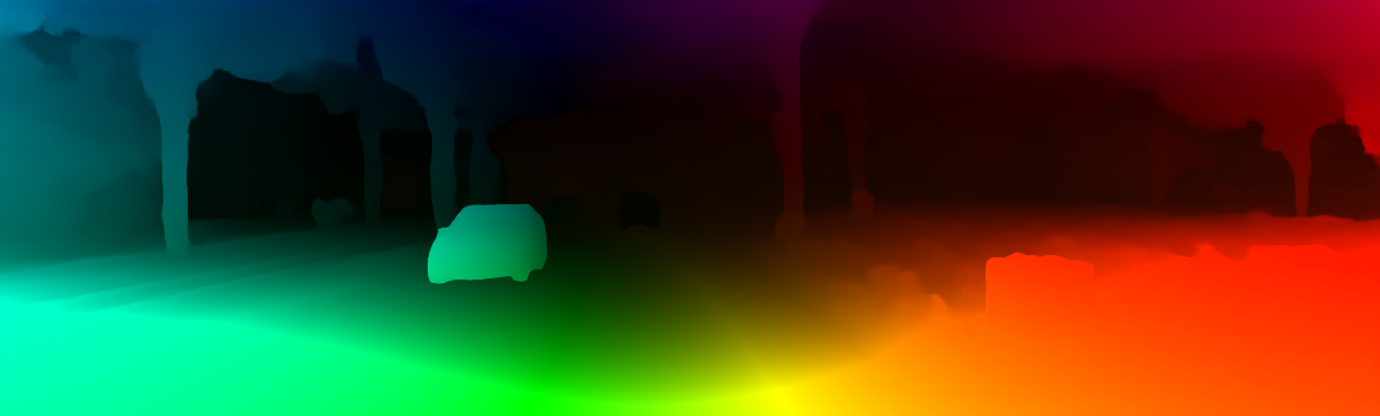 This page provides detailed results for the method(s) selected. For the first 20 test images, the percentage of erroneous pixels is depicted in the table. We use the error metric described in Object Scene Flow for Autonomous Vehicles (CVPR 2015), which considers a pixel to be correctly estimated if the disparity or flow end-point error is <3px or <5% (for scene flow this criterion needs to be fulfilled for both disparity maps and the flow map). Underneath, the left input image, the estimated results and the error maps are shown (for disp_0/disp_1/flow/scene_flow, respectively). The error map uses the log-color scale described in Object Scene Flow for Autonomous Vehicles (CVPR 2015), depicting correct estimates (<3px or <5% error) in blue and wrong estimates in red color tones. Dark regions in the error images denote the occluded pixels which fall outside the image boundaries. The false color maps of the results are scaled to the largest ground truth disparity values / flow magnitudes.