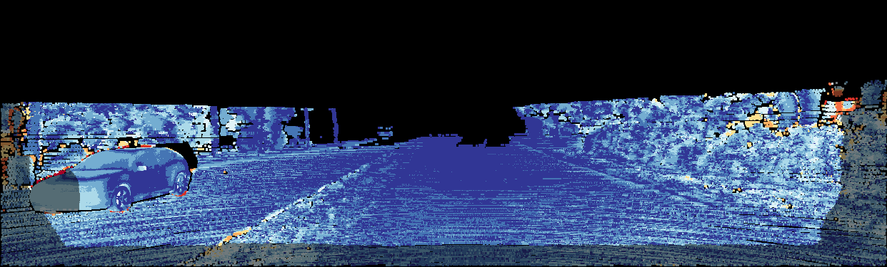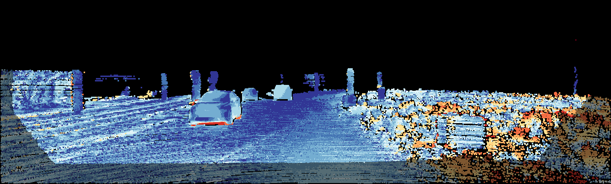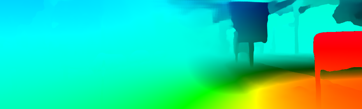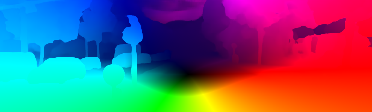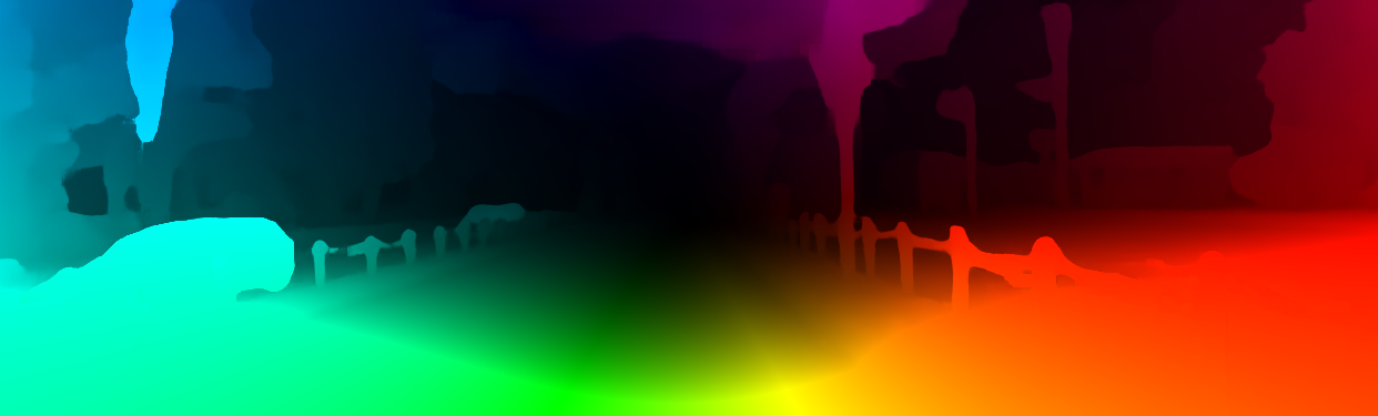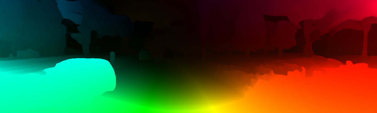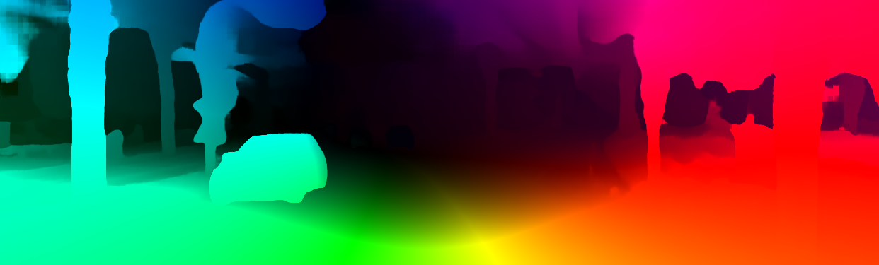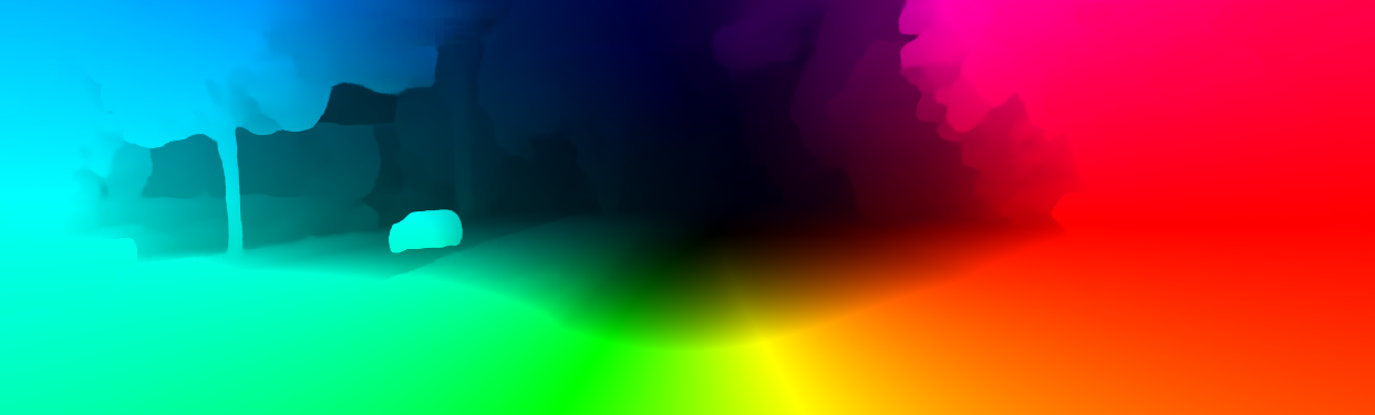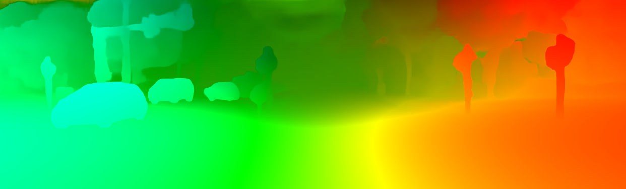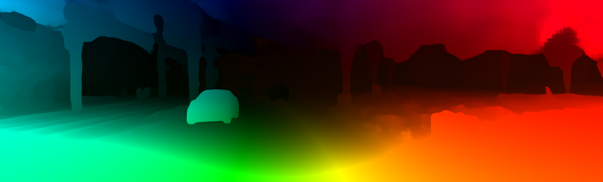 This page provides detailed results for the method(s) selected. For the first 20 test images, the percentage of erroneous pixels is depicted in the table. We use the error metric described in Object Scene Flow for Autonomous Vehicles (CVPR 2015), which considers a pixel to be correctly estimated if the disparity or flow end-point error is <3px or <5% (for scene flow this criterion needs to be fulfilled for both disparity maps and the flow map). Underneath, the left input image, the estimated results and the error maps are shown (for disp_0/disp_1/flow/scene_flow, respectively). The error map uses the log-color scale described in Object Scene Flow for Autonomous Vehicles (CVPR 2015), depicting correct estimates (<3px or <5% error) in blue and wrong estimates in red color tones. Dark regions in the error images denote the occluded pixels which fall outside the image boundaries. The false color maps of the results are scaled to the largest ground truth disparity values / flow magnitudes.