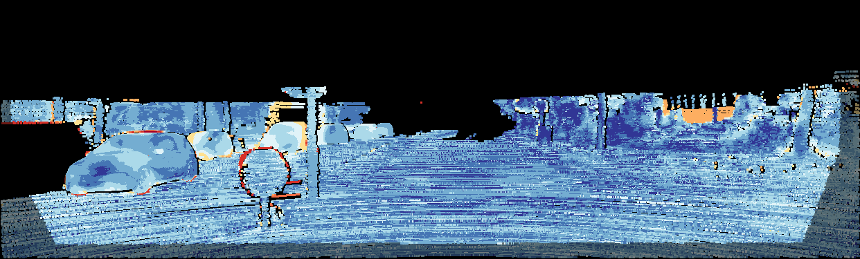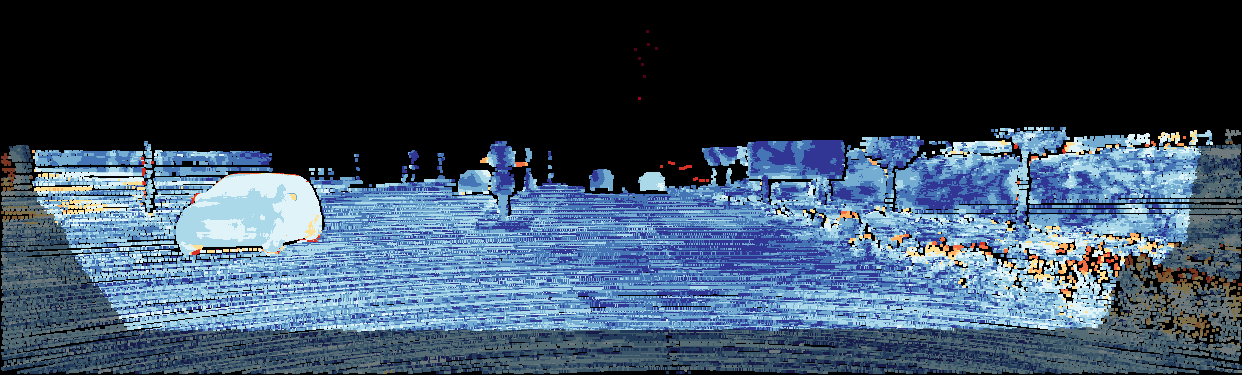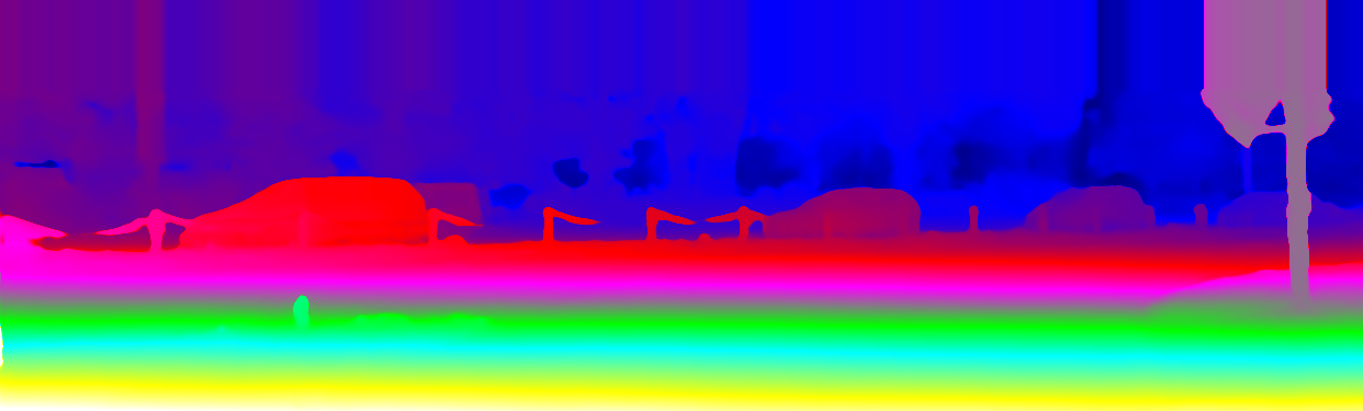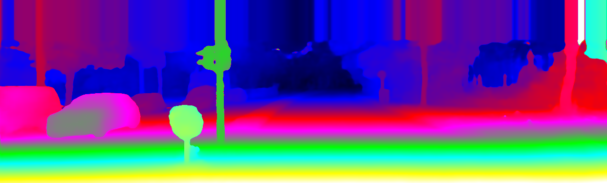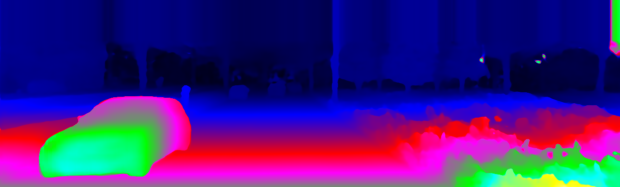 This page provides detailed results for the method(s) selected. For the first 20 test images, the percentage of erroneous pixels is depicted in the table. We use the error metric described in Object Scene Flow for Autonomous Vehicles (CVPR 2015), which considers a pixel to be correctly estimated if the disparity or flow end-point error is <3px or <5% (for scene flow this criterion needs to be fulfilled for both disparity maps and the flow map). Underneath, the left input image, the estimated results and the error maps are shown (for disp_0/disp_1/flow/scene_flow, respectively). The error map uses the log-color scale described in Object Scene Flow for Autonomous Vehicles (CVPR 2015), depicting correct estimates (<3px or <5% error) in blue and wrong estimates in red color tones. Dark regions in the error images denote the occluded pixels which fall outside the image boundaries. The false color maps of the results are scaled to the largest ground truth disparity values / flow magnitudes.