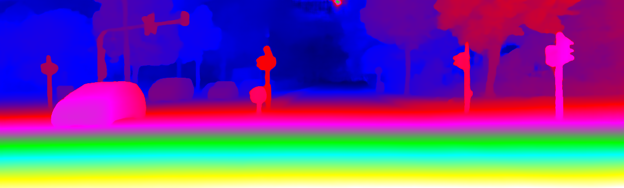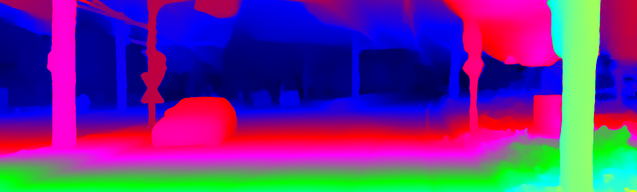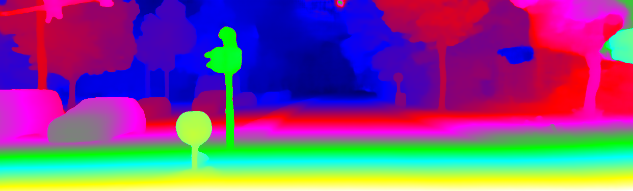 This page provides detailed results for the method(s) selected. For the first 20 test images, the percentage of erroneous pixels is depicted in the table. We use the error metric described in Object Scene Flow for Autonomous Vehicles (CVPR 2015), which considers a pixel to be correctly estimated if the disparity or flow end-point error is <3px or <5% (for scene flow this criterion needs to be fulfilled for both disparity maps and the flow map). Underneath, the left input image, the estimated results and the error maps are shown (for disp_0/disp_1/flow/scene_flow, respectively). The error map uses the log-color scale described in Object Scene Flow for Autonomous Vehicles (CVPR 2015), depicting correct estimates (<3px or <5% error) in blue and wrong estimates in red color tones. Dark regions in the error images denote the occluded pixels which fall outside the image boundaries. The false color maps of the results are scaled to the largest ground truth disparity values / flow magnitudes.