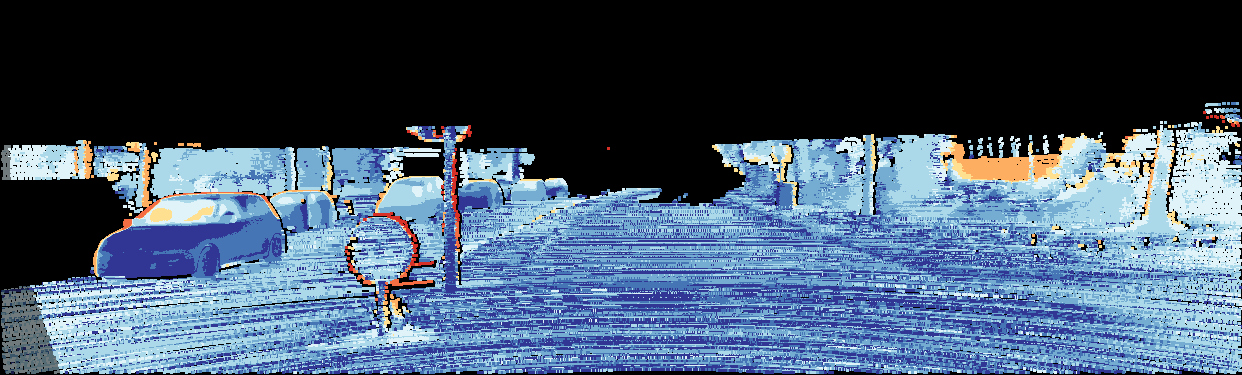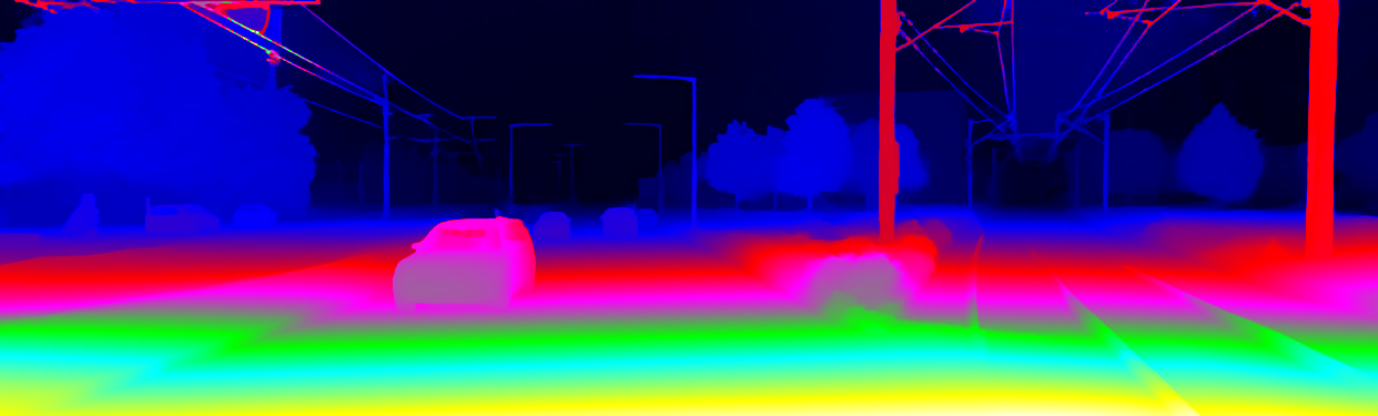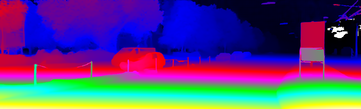 This page provides detailed results for the method(s) selected. For the first 20 test images, the percentage of erroneous pixels is depicted in the table. We use the error metric described in Object Scene Flow for Autonomous Vehicles (CVPR 2015), which considers a pixel to be correctly estimated if the disparity or flow end-point error is <3px or <5% (for scene flow this criterion needs to be fulfilled for both disparity maps and the flow map). Underneath, the left input image, the estimated results and the error maps are shown (for disp_0/disp_1/flow/scene_flow, respectively). The error map uses the log-color scale described in Object Scene Flow for Autonomous Vehicles (CVPR 2015), depicting correct estimates (<3px or <5% error) in blue and wrong estimates in red color tones. Dark regions in the error images denote the occluded pixels which fall outside the image boundaries. The false color maps of the results are scaled to the largest ground truth disparity values / flow magnitudes.