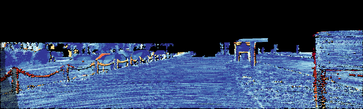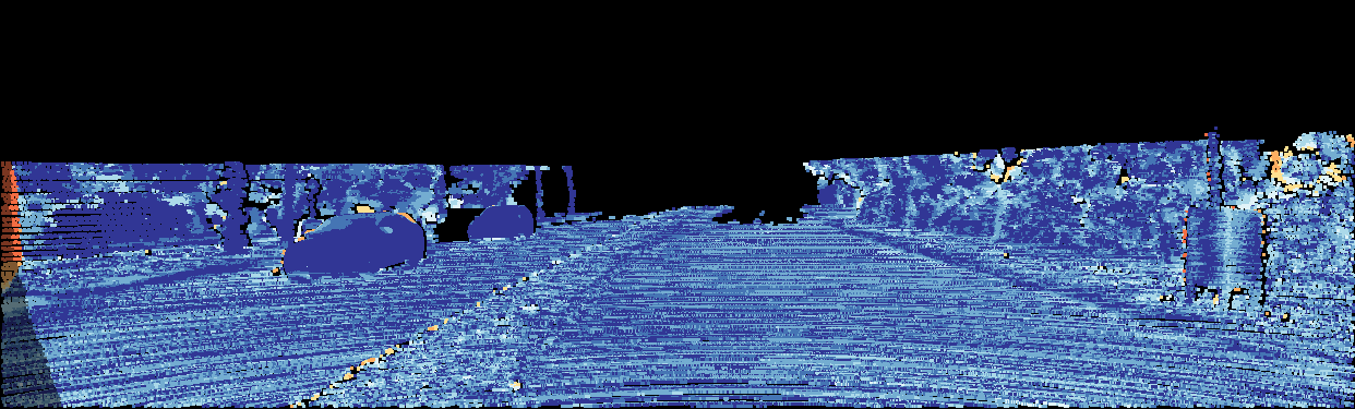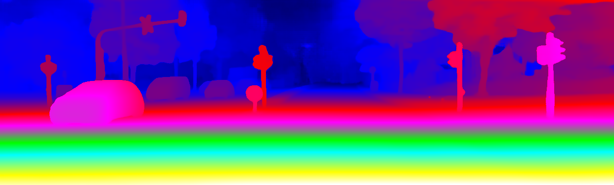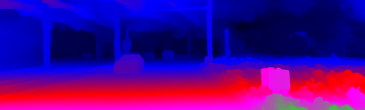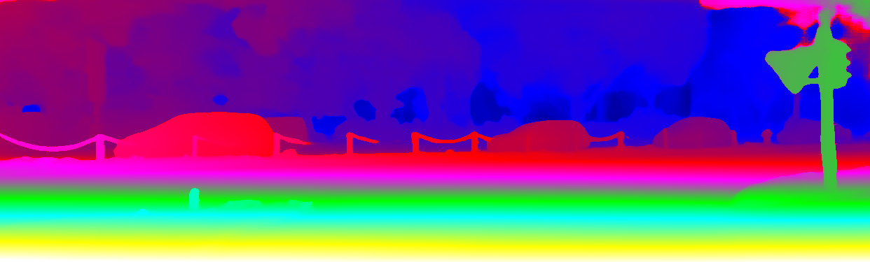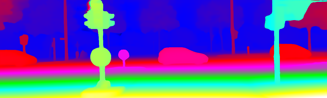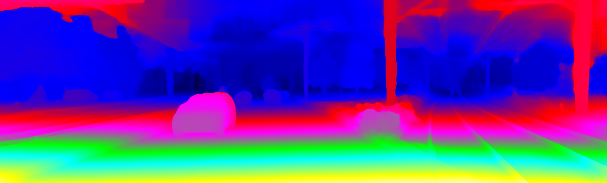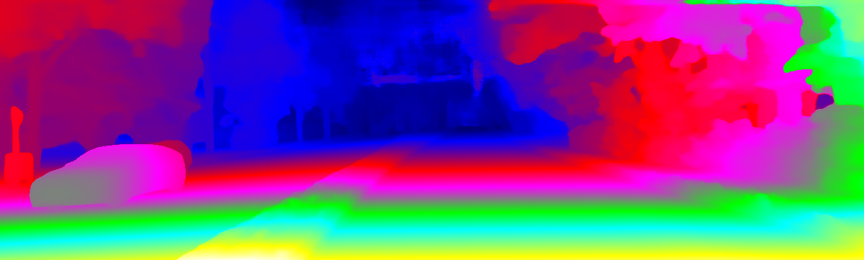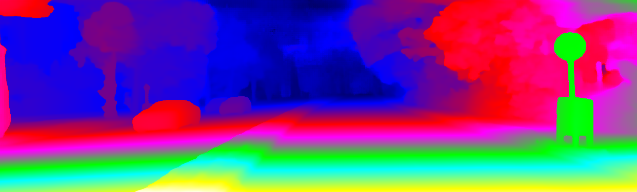 This page provides detailed results for the method(s) selected. For the first 20 test images, the percentage of erroneous pixels is depicted in the table. We use the error metric described in Object Scene Flow for Autonomous Vehicles (CVPR 2015), which considers a pixel to be correctly estimated if the disparity or flow end-point error is <3px or <5% (for scene flow this criterion needs to be fulfilled for both disparity maps and the flow map). Underneath, the left input image, the estimated results and the error maps are shown (for disp_0/disp_1/flow/scene_flow, respectively). The error map uses the log-color scale described in Object Scene Flow for Autonomous Vehicles (CVPR 2015), depicting correct estimates (<3px or <5% error) in blue and wrong estimates in red color tones. Dark regions in the error images denote the occluded pixels which fall outside the image boundaries. The false color maps of the results are scaled to the largest ground truth disparity values / flow magnitudes.
