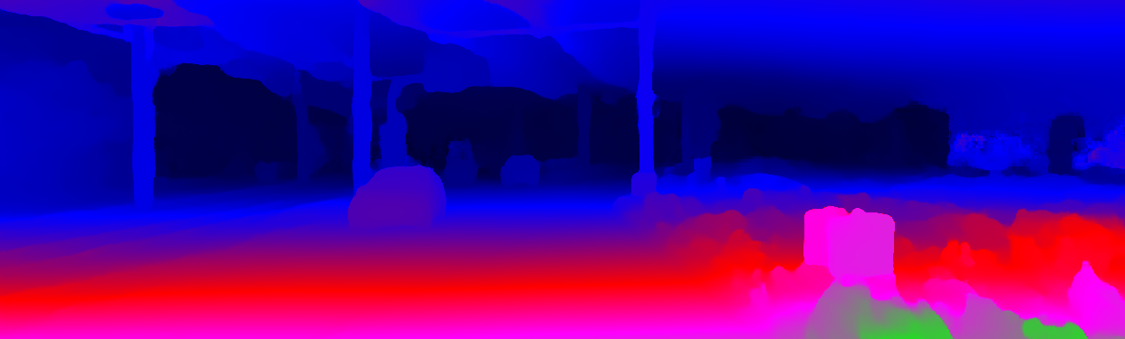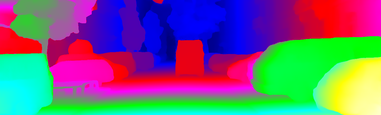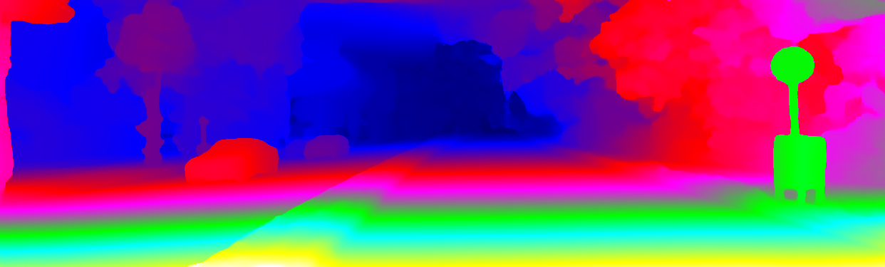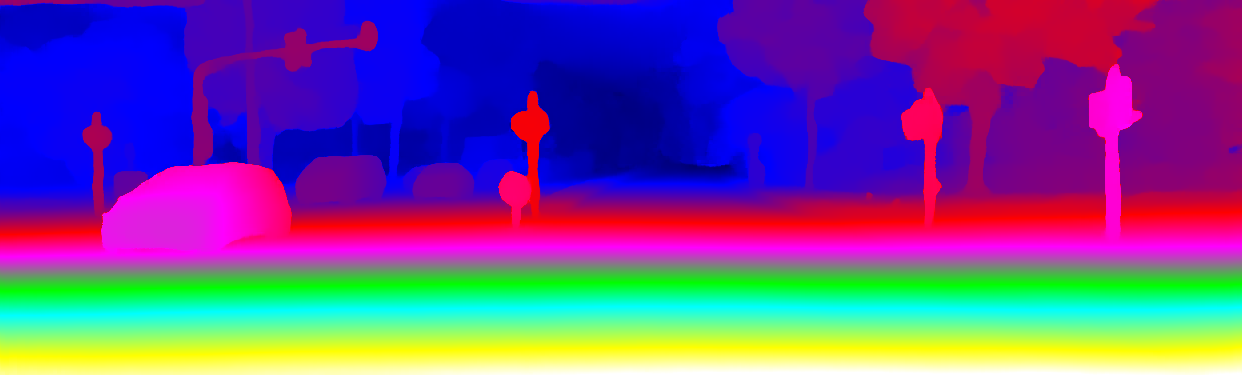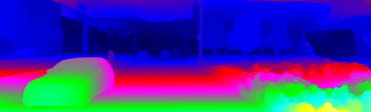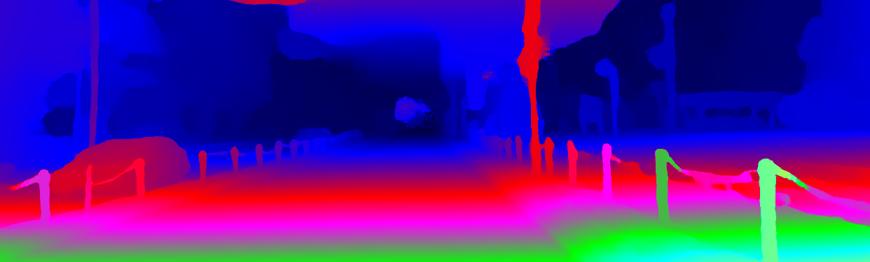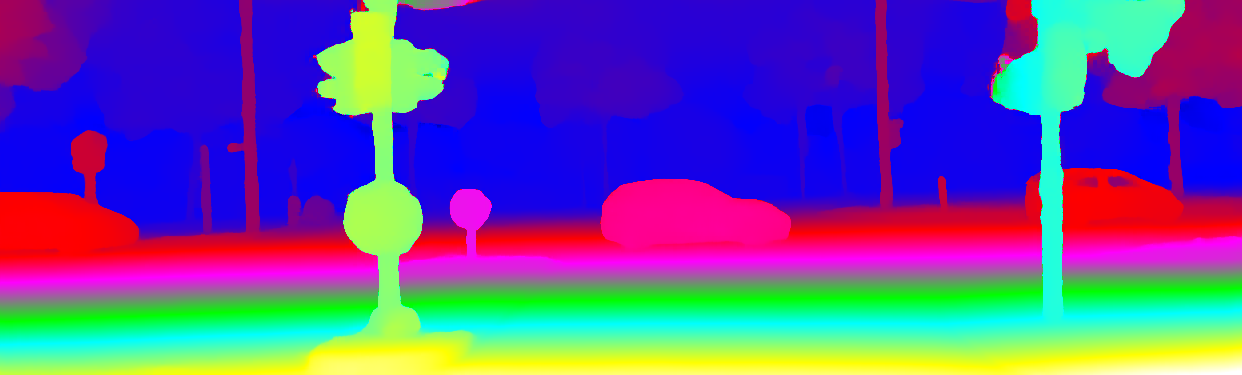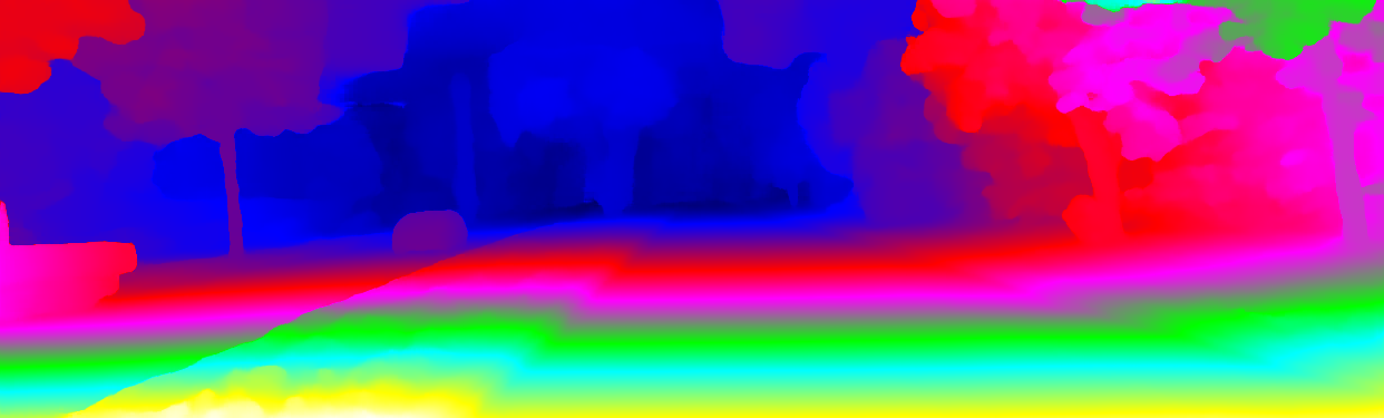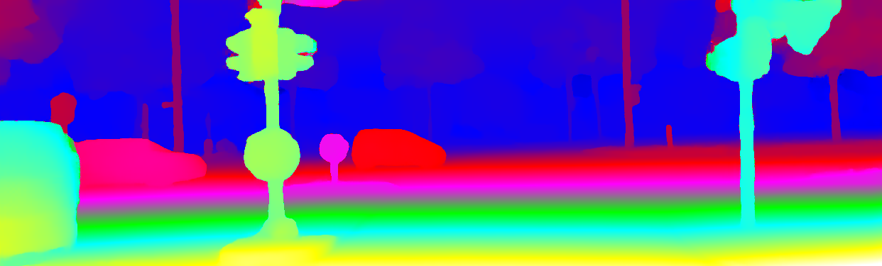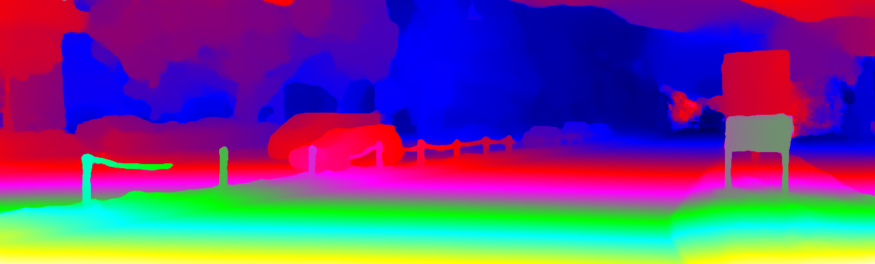 This page provides detailed results for the method(s) selected. For the first 20 test images, the percentage of erroneous pixels is depicted in the table. We use the error metric described in Object Scene Flow for Autonomous Vehicles (CVPR 2015), which considers a pixel to be correctly estimated if the disparity or flow end-point error is <3px or <5% (for scene flow this criterion needs to be fulfilled for both disparity maps and the flow map). Underneath, the left input image, the estimated results and the error maps are shown (for disp_0/disp_1/flow/scene_flow, respectively). The error map uses the log-color scale described in Object Scene Flow for Autonomous Vehicles (CVPR 2015), depicting correct estimates (<3px or <5% error) in blue and wrong estimates in red color tones. Dark regions in the error images denote the occluded pixels which fall outside the image boundaries. The false color maps of the results are scaled to the largest ground truth disparity values / flow magnitudes.