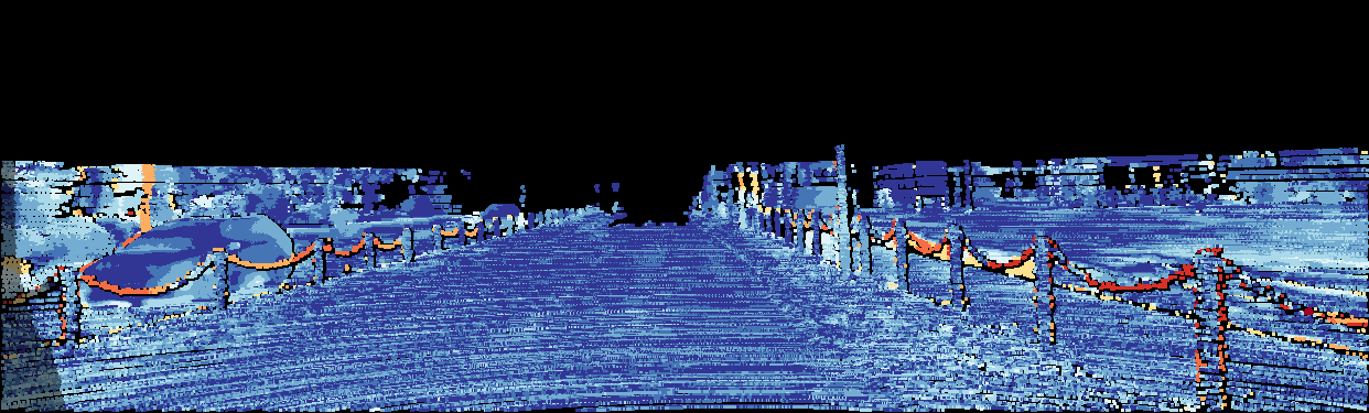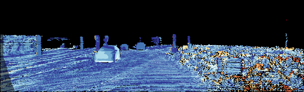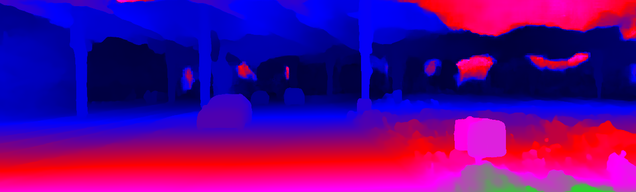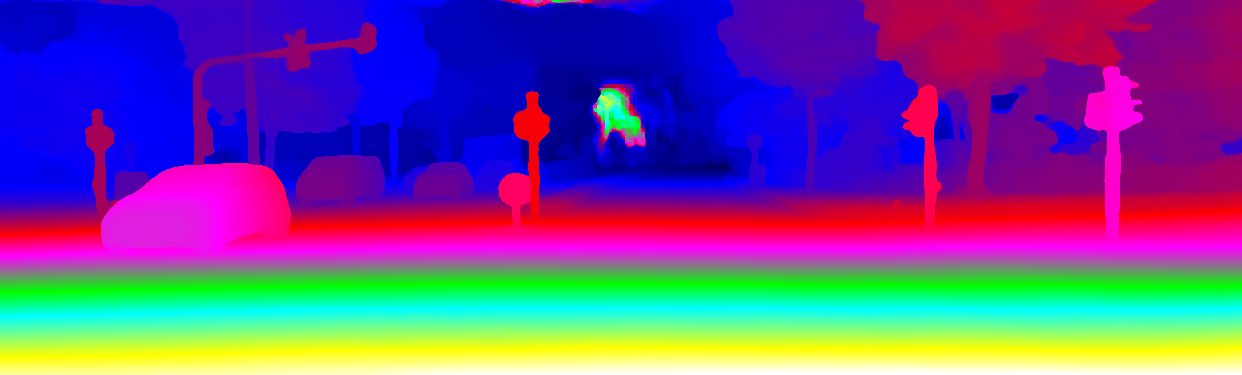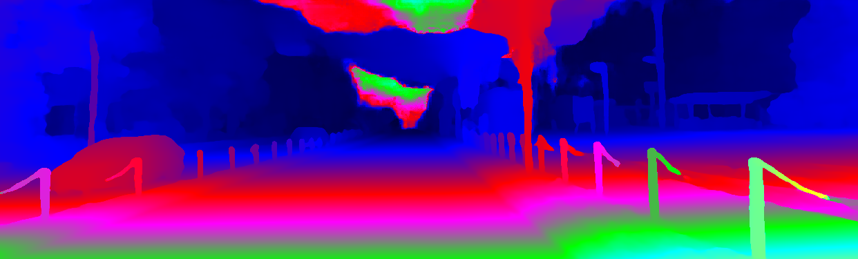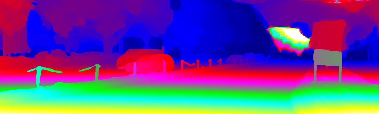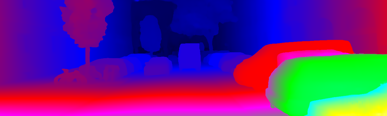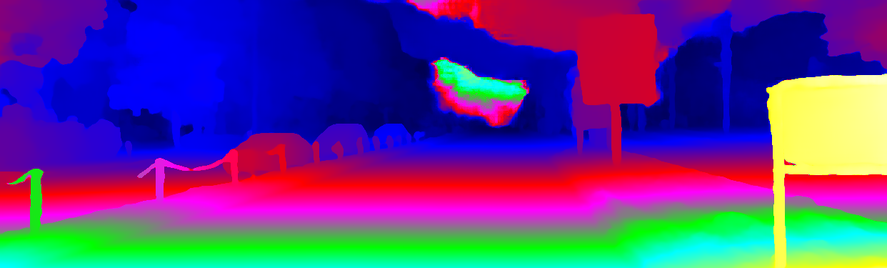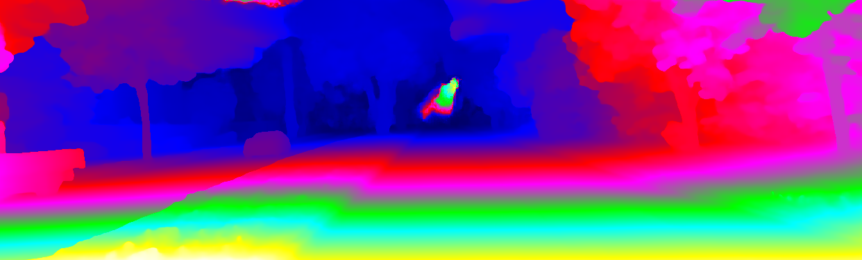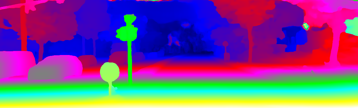 This page provides detailed results for the method(s) selected. For the first 20 test images, the percentage of erroneous pixels is depicted in the table. We use the error metric described in Object Scene Flow for Autonomous Vehicles (CVPR 2015), which considers a pixel to be correctly estimated if the disparity or flow end-point error is <3px or <5% (for scene flow this criterion needs to be fulfilled for both disparity maps and the flow map). Underneath, the left input image, the estimated results and the error maps are shown (for disp_0/disp_1/flow/scene_flow, respectively). The error map uses the log-color scale described in Object Scene Flow for Autonomous Vehicles (CVPR 2015), depicting correct estimates (<3px or <5% error) in blue and wrong estimates in red color tones. Dark regions in the error images denote the occluded pixels which fall outside the image boundaries. The false color maps of the results are scaled to the largest ground truth disparity values / flow magnitudes.
