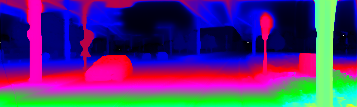 This page provides detailed results for the method(s) selected. For the first 20 test images, the percentage of erroneous pixels is depicted in the table. We use the error metric described in Object Scene Flow for Autonomous Vehicles (CVPR 2015), which considers a pixel to be correctly estimated if the disparity or flow end-point error is <3px or <5% (for scene flow this criterion needs to be fulfilled for both disparity maps and the flow map). Underneath, the left input image, the estimated results and the error maps are shown (for disp_0/disp_1/flow/scene_flow, respectively). The error map uses the log-color scale described in Object Scene Flow for Autonomous Vehicles (CVPR 2015), depicting correct estimates (<3px or <5% error) in blue and wrong estimates in red color tones. Dark regions in the error images denote the occluded pixels which fall outside the image boundaries. The false color maps of the results are scaled to the largest ground truth disparity values / flow magnitudes.
