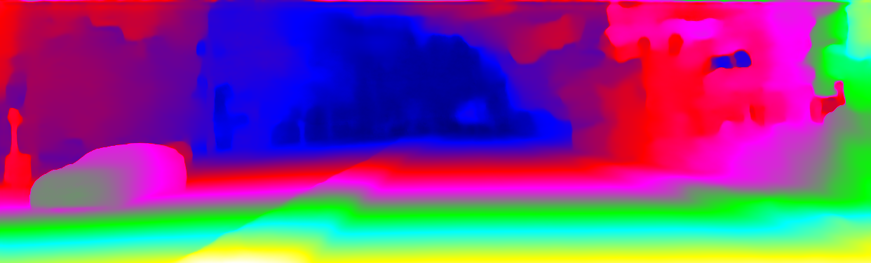 This page provides detailed results for the method(s) selected. For the first 20 test images, the percentage of erroneous pixels is depicted in the table. We use the error metric described in Object Scene Flow for Autonomous Vehicles (CVPR 2015), which considers a pixel to be correctly estimated if the disparity or flow end-point error is <3px or <5% (for scene flow this criterion needs to be fulfilled for both disparity maps and the flow map). Underneath, the left input image, the estimated results and the error maps are shown (for disp_0/disp_1/flow/scene_flow, respectively). The error map uses the log-color scale described in Object Scene Flow for Autonomous Vehicles (CVPR 2015), depicting correct estimates (<3px or <5% error) in blue and wrong estimates in red color tones. Dark regions in the error images denote the occluded pixels which fall outside the image boundaries. The false color maps of the results are scaled to the largest ground truth disparity values / flow magnitudes.
