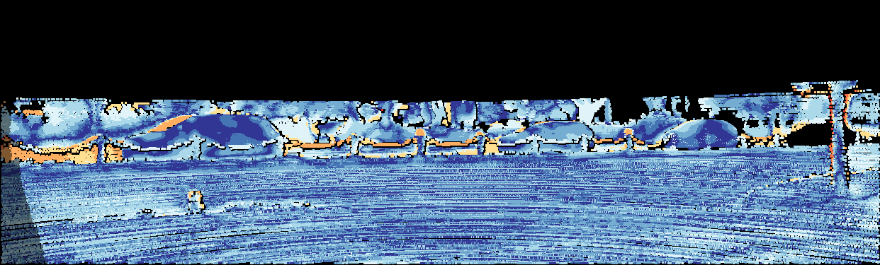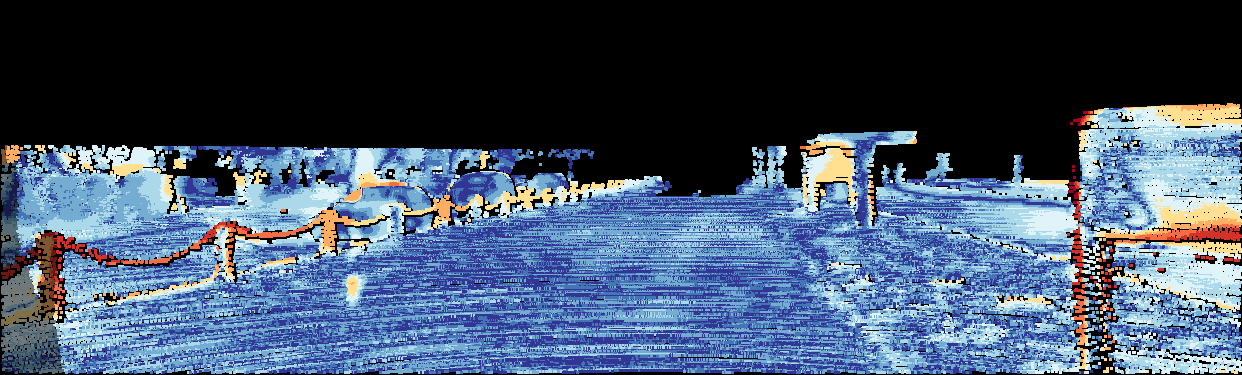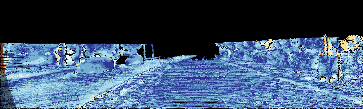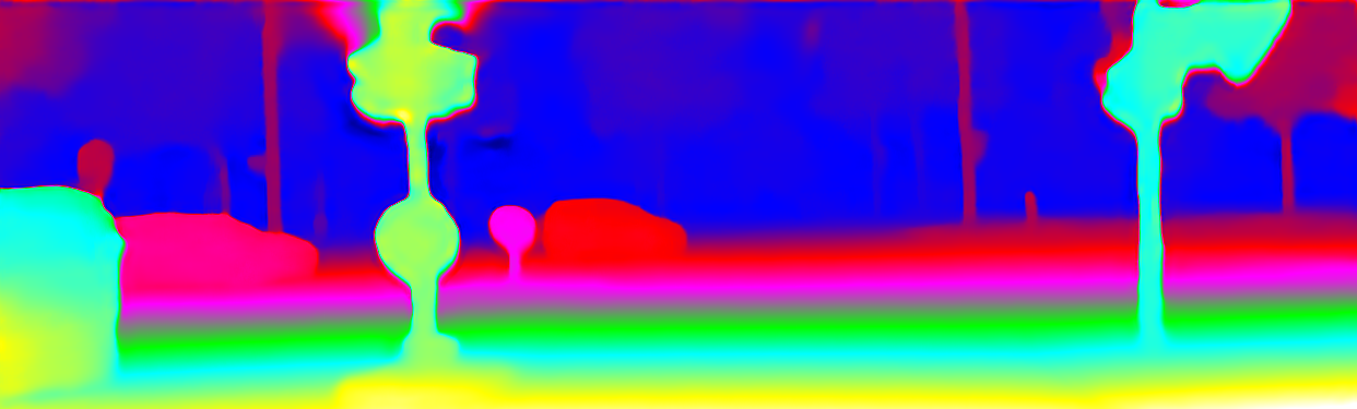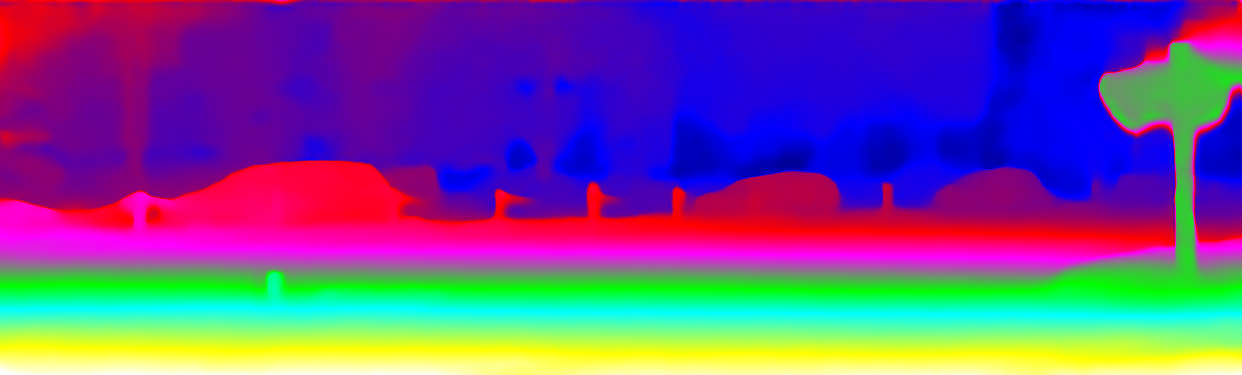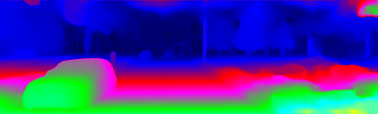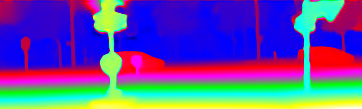 This page provides detailed results for the method(s) selected. For the first 20 test images, the percentage of erroneous pixels is depicted in the table. We use the error metric described in Object Scene Flow for Autonomous Vehicles (CVPR 2015), which considers a pixel to be correctly estimated if the disparity or flow end-point error is <3px or <5% (for scene flow this criterion needs to be fulfilled for both disparity maps and the flow map). Underneath, the left input image, the estimated results and the error maps are shown (for disp_0/disp_1/flow/scene_flow, respectively). The error map uses the log-color scale described in Object Scene Flow for Autonomous Vehicles (CVPR 2015), depicting correct estimates (<3px or <5% error) in blue and wrong estimates in red color tones. Dark regions in the error images denote the occluded pixels which fall outside the image boundaries. The false color maps of the results are scaled to the largest ground truth disparity values / flow magnitudes.