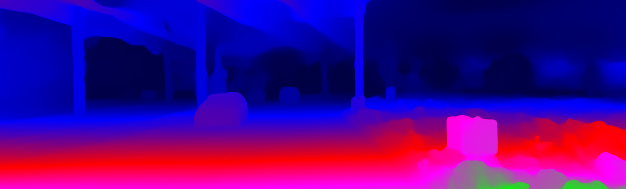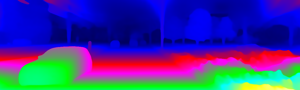 This page provides detailed results for the method(s) selected. For the first 20 test images, the percentage of erroneous pixels is depicted in the table. We use the error metric described in Object Scene Flow for Autonomous Vehicles (CVPR 2015), which considers a pixel to be correctly estimated if the disparity or flow end-point error is <3px or <5% (for scene flow this criterion needs to be fulfilled for both disparity maps and the flow map). Underneath, the left input image, the estimated results and the error maps are shown (for disp_0/disp_1/flow/scene_flow, respectively). The error map uses the log-color scale described in Object Scene Flow for Autonomous Vehicles (CVPR 2015), depicting correct estimates (<3px or <5% error) in blue and wrong estimates in red color tones. Dark regions in the error images denote the occluded pixels which fall outside the image boundaries. The false color maps of the results are scaled to the largest ground truth disparity values / flow magnitudes.