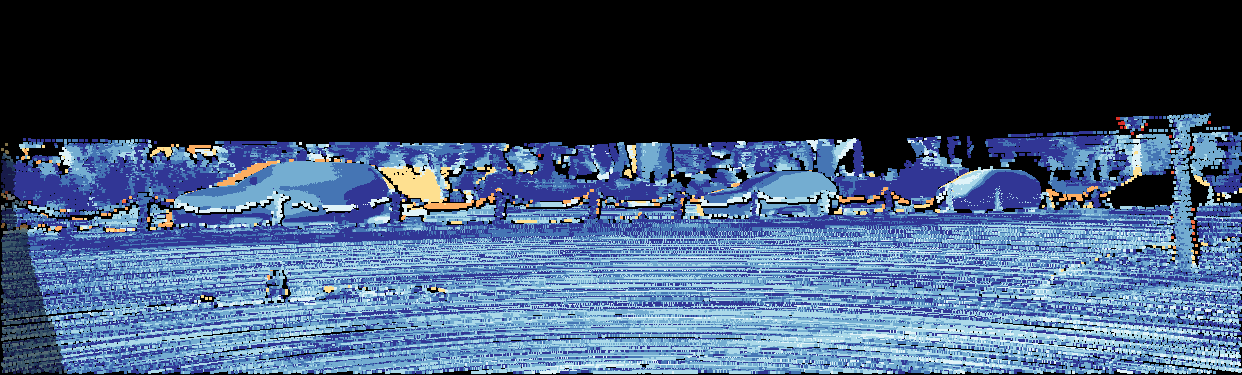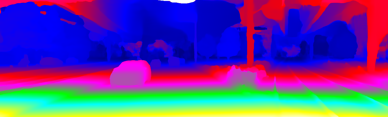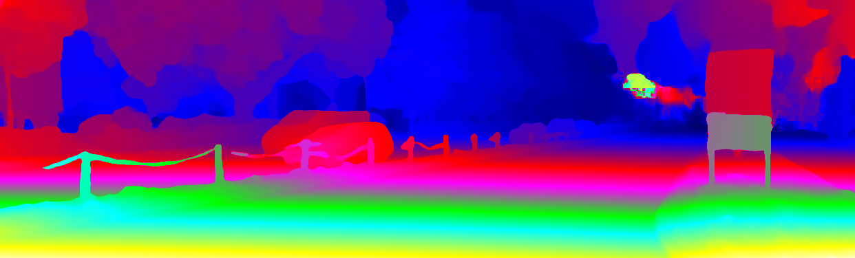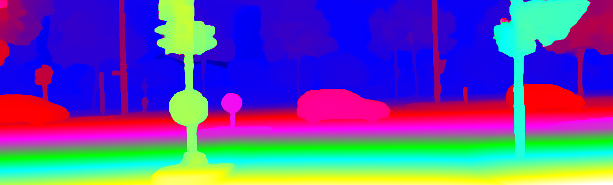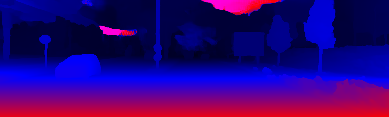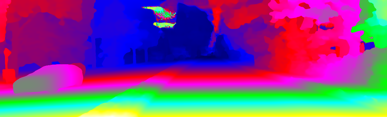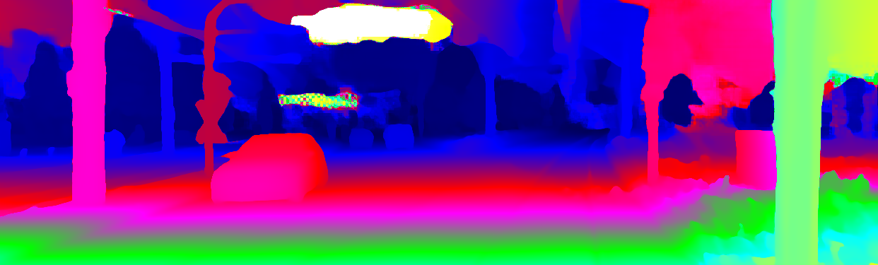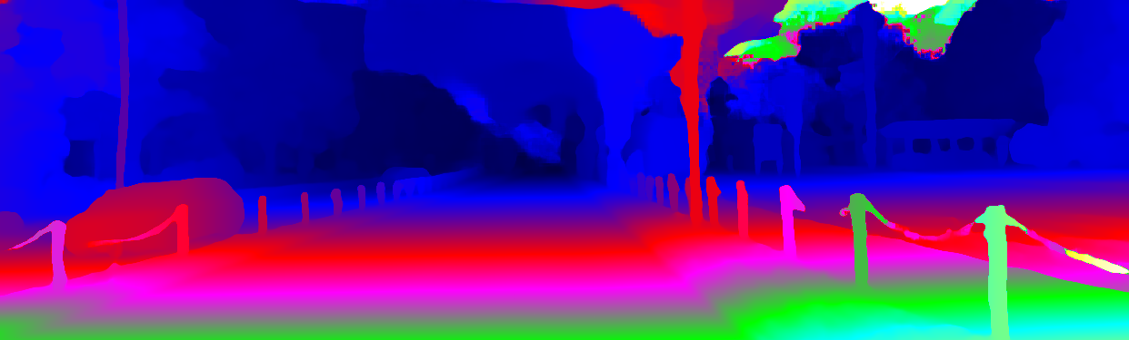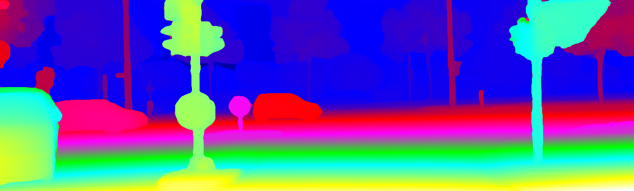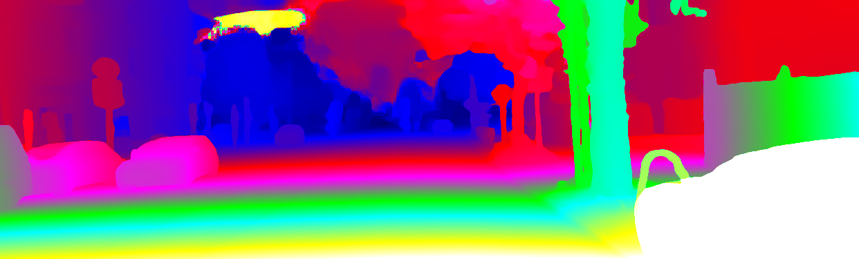This page provides detailed results for the method(s) selected. For the first 20 test images, the percentage of erroneous pixels is depicted in the table. We use the error metric described in Object Scene Flow for Autonomous Vehicles (CVPR 2015), which considers a pixel to be correctly estimated if the disparity or flow end-point error is <3px or <5% (for scene flow this criterion needs to be fulfilled for both disparity maps and the flow map). Underneath, the left input image, the estimated results and the error maps are shown (for disp_0/disp_1/flow/scene_flow, respectively). The error map uses the log-color scale described in Object Scene Flow for Autonomous Vehicles (CVPR 2015), depicting correct estimates (<3px or <5% error) in blue and wrong estimates in red color tones. Dark regions in the error images denote the occluded pixels which fall outside the image boundaries. The false color maps of the results are scaled to the largest ground truth disparity values / flow magnitudes.