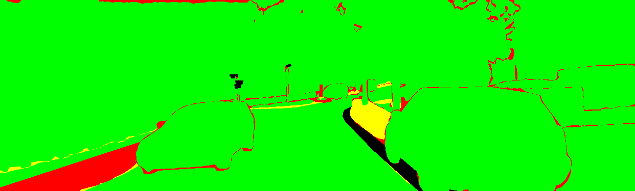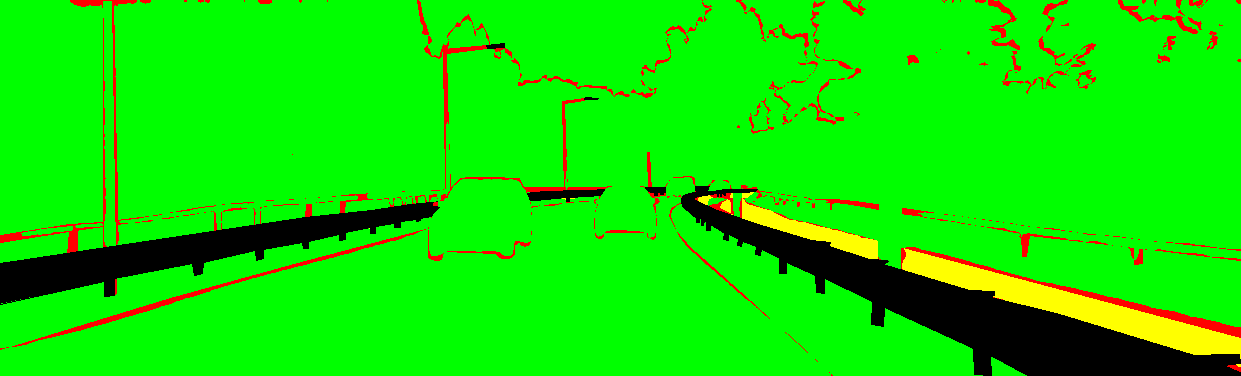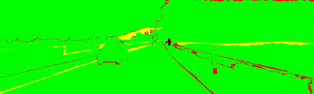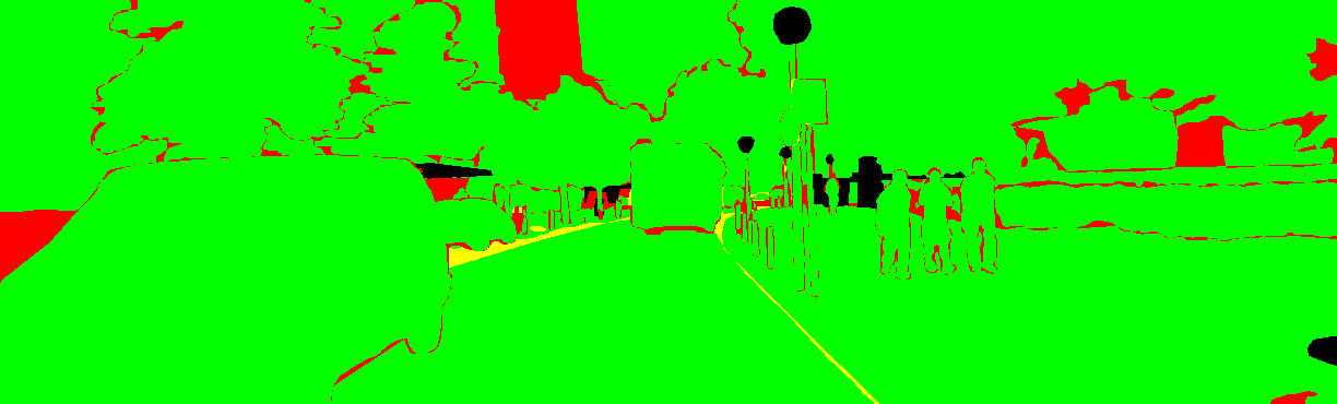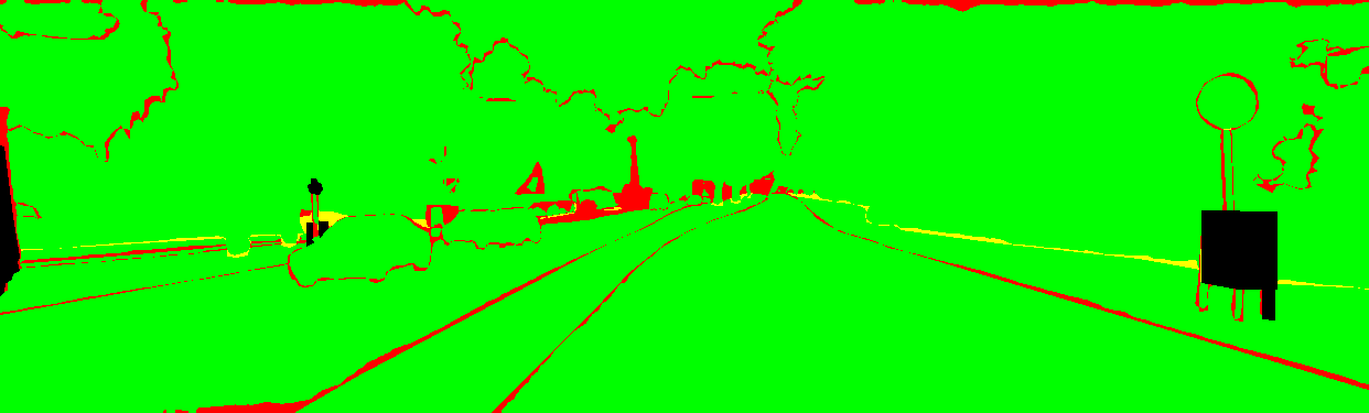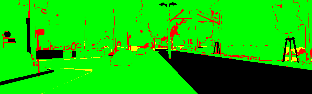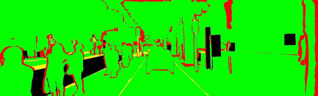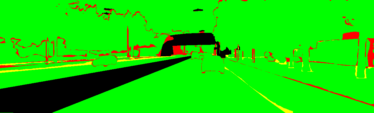 yellow: the pixel has the wrong label but the correct category