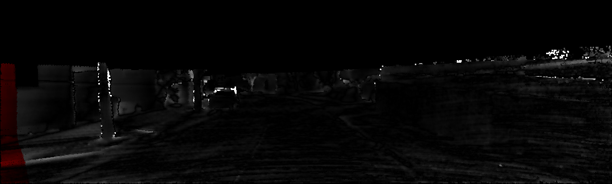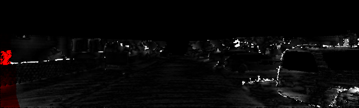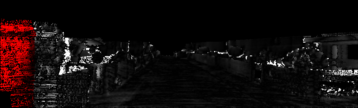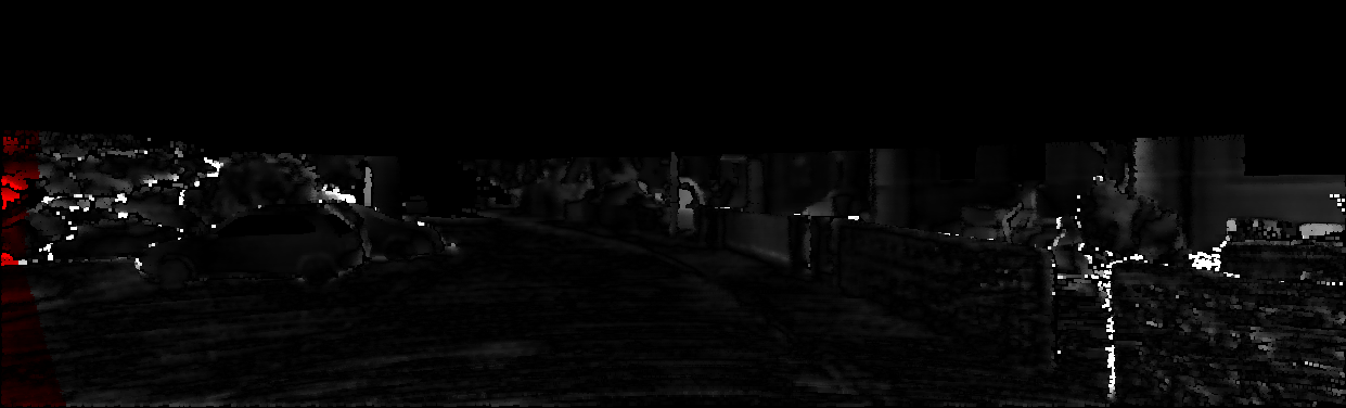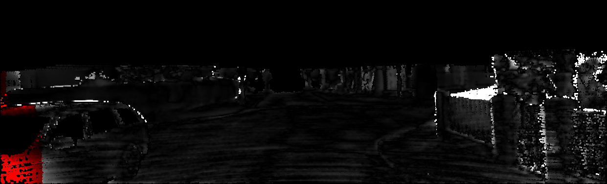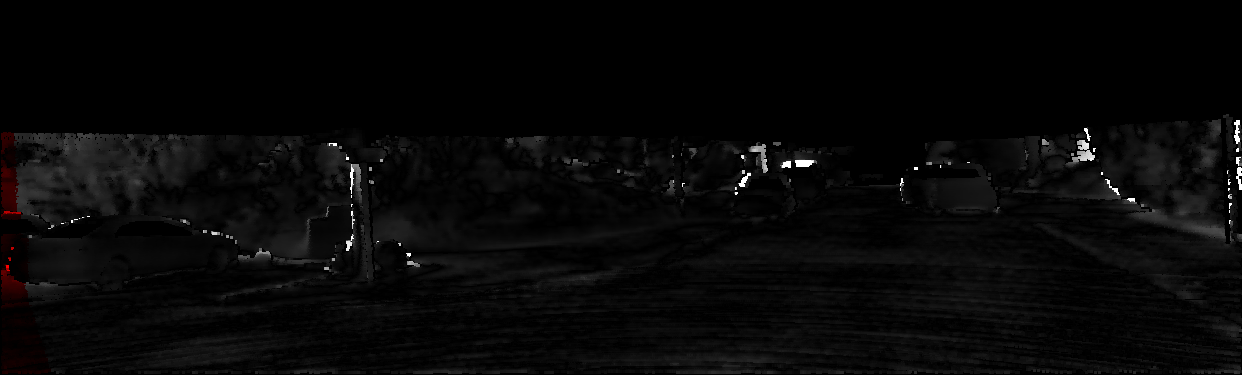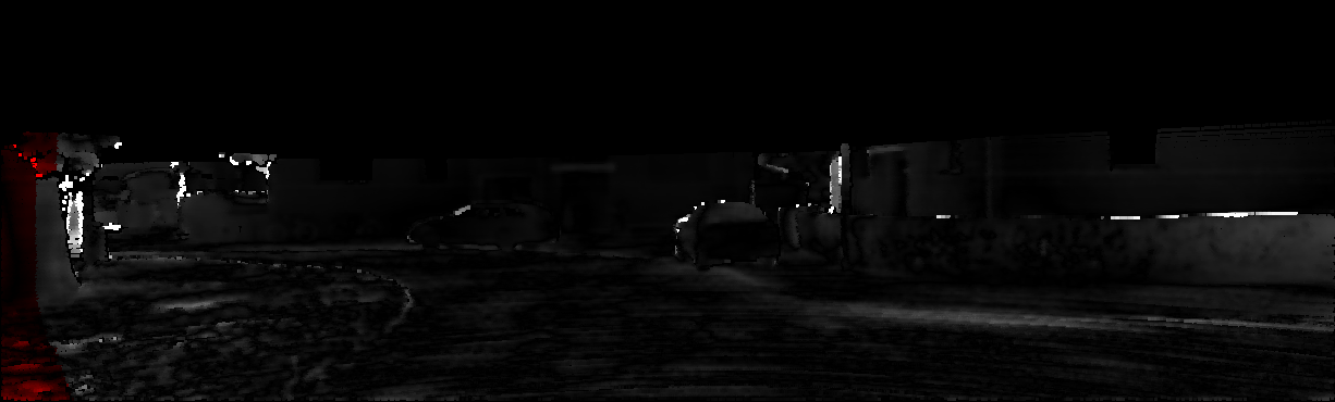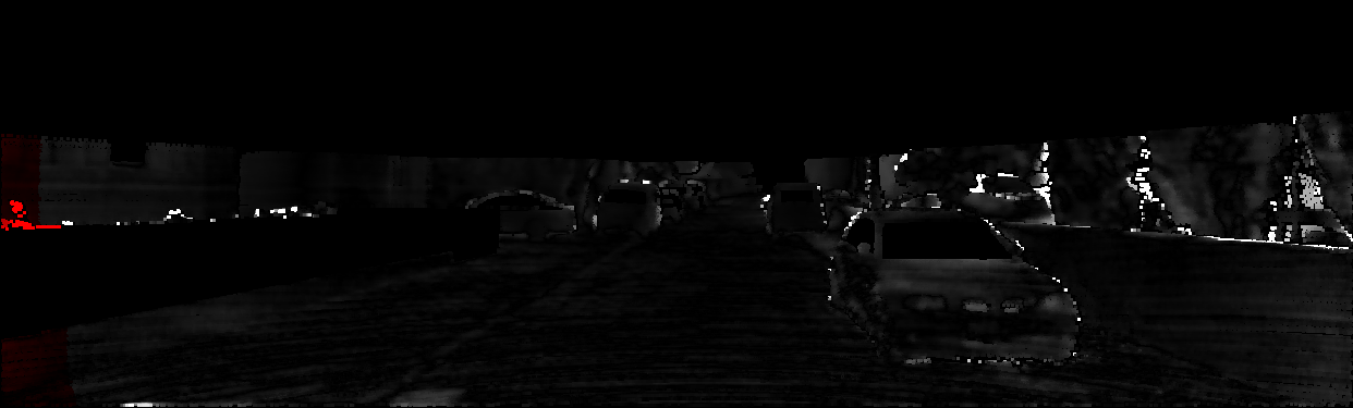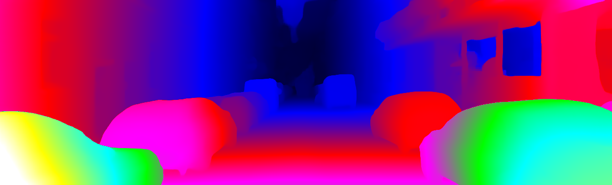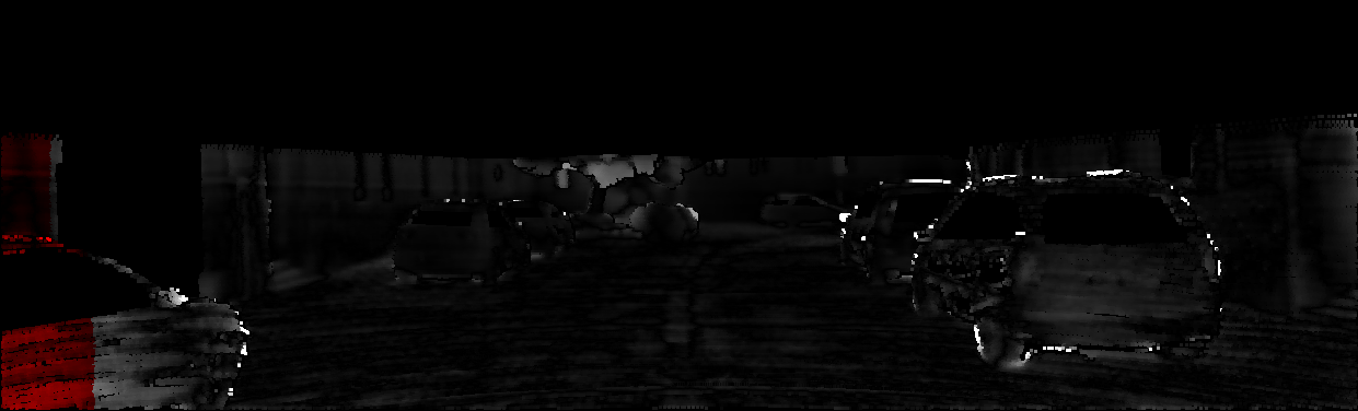 This page provides detailed results for the method(s) selected. For each of the first 20 test images, the number of erroneous pixels at all thresholds is depicted in the table. Underneath, the left input image, the disparity / end-point error map and the estimated (and interpolated) disparity / optical flow map are shown. The error map scales linearly between 0 (black) and >=5 (white) pixels error. Red denotes all occluded pixels, falling outside the image boundaries. The false color map is scaled to the largest ground truth disparity / flow value.