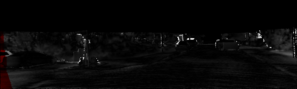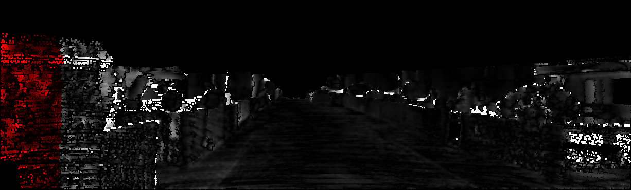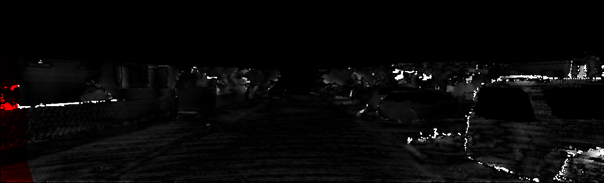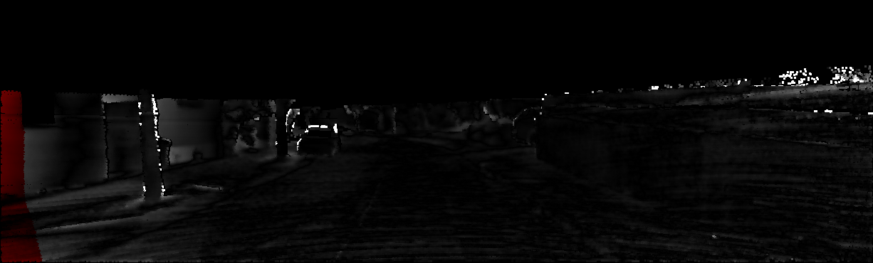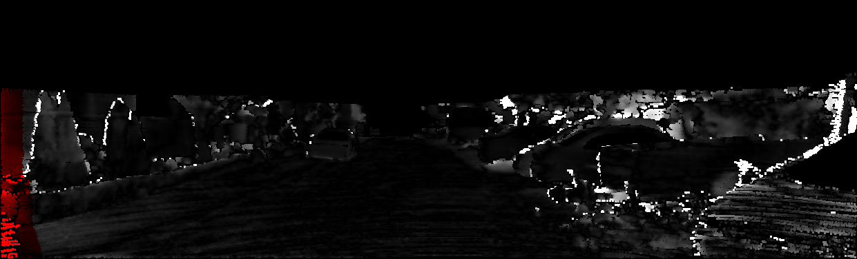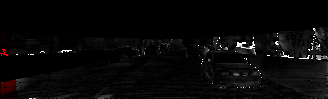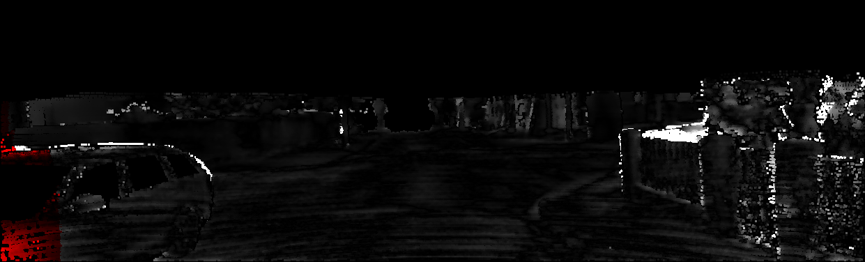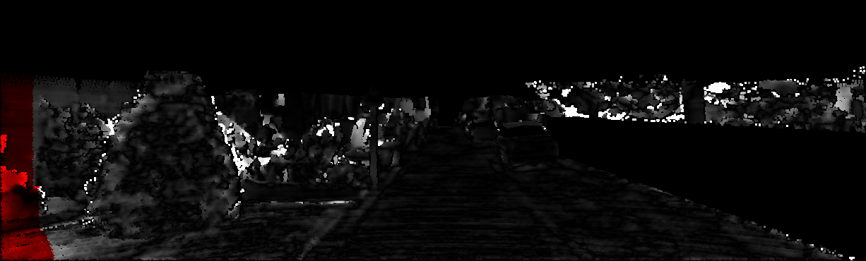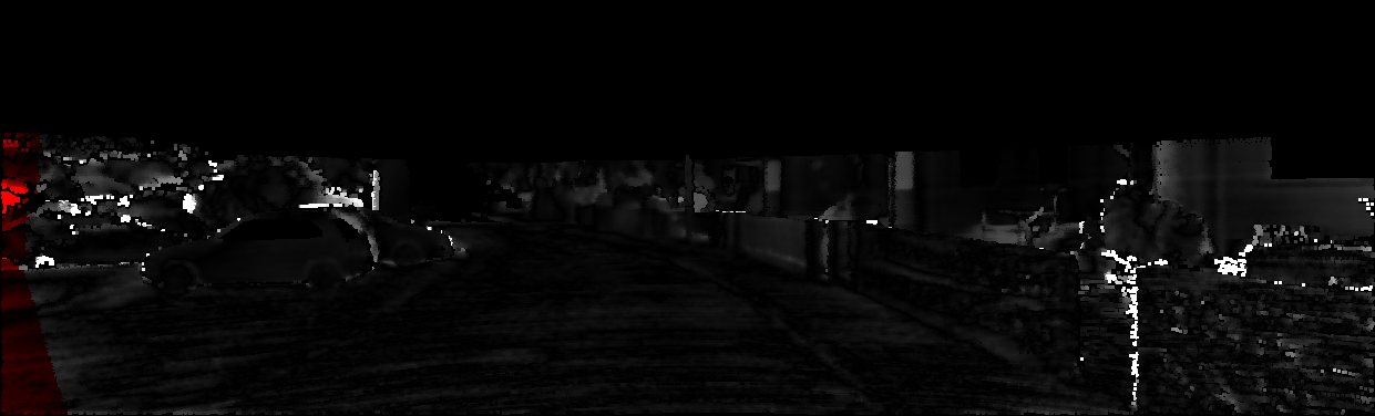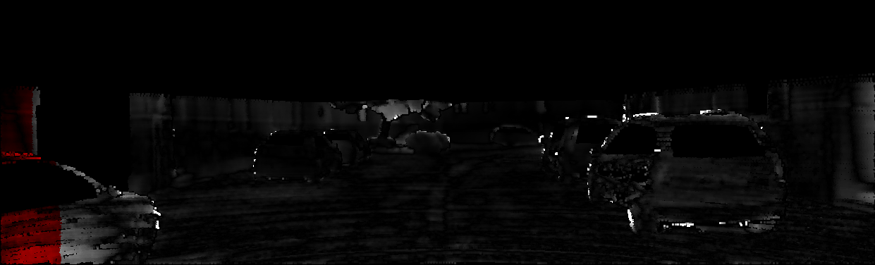 This page provides detailed results for the method(s) selected. For each of the first 20 test images, the number of erroneous pixels at all thresholds is depicted in the table. Underneath, the left input image, the disparity / end-point error map and the estimated (and interpolated) disparity / optical flow map are shown. The error map scales linearly between 0 (black) and >=5 (white) pixels error. Red denotes all occluded pixels, falling outside the image boundaries. The false color map is scaled to the largest ground truth disparity / flow value.