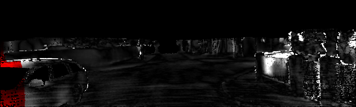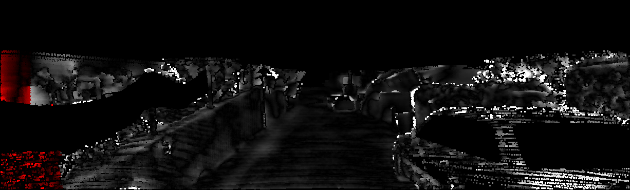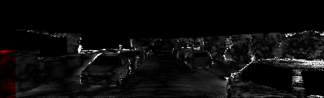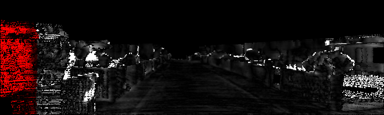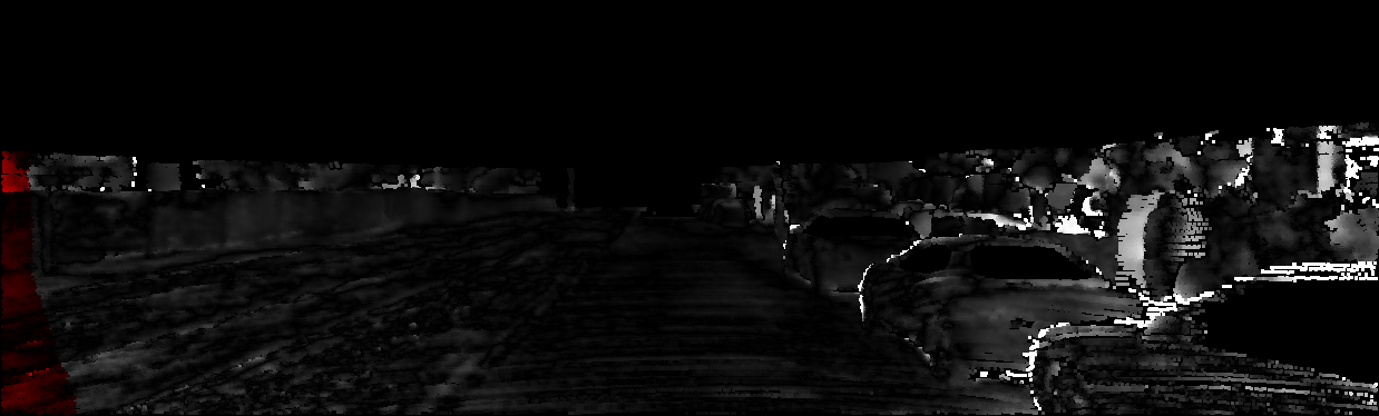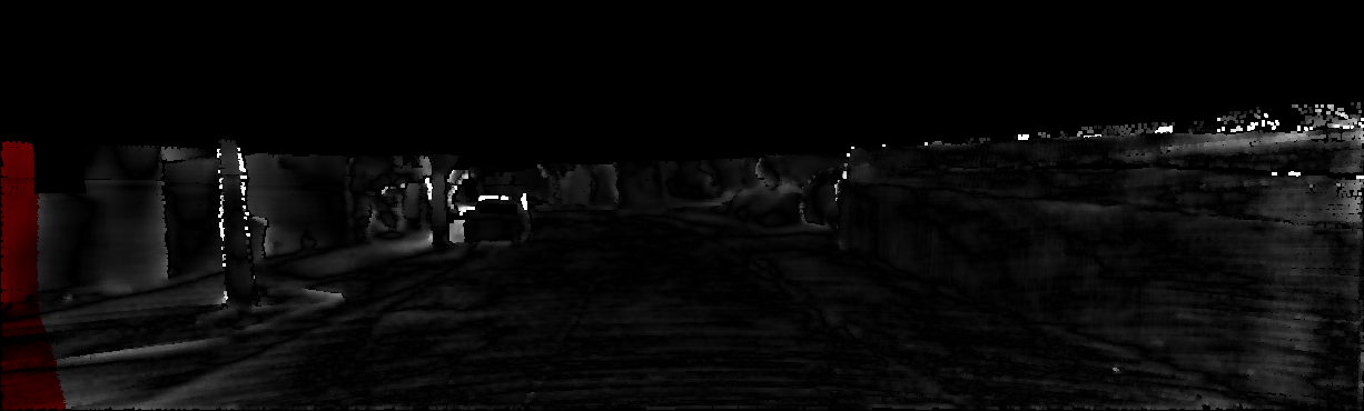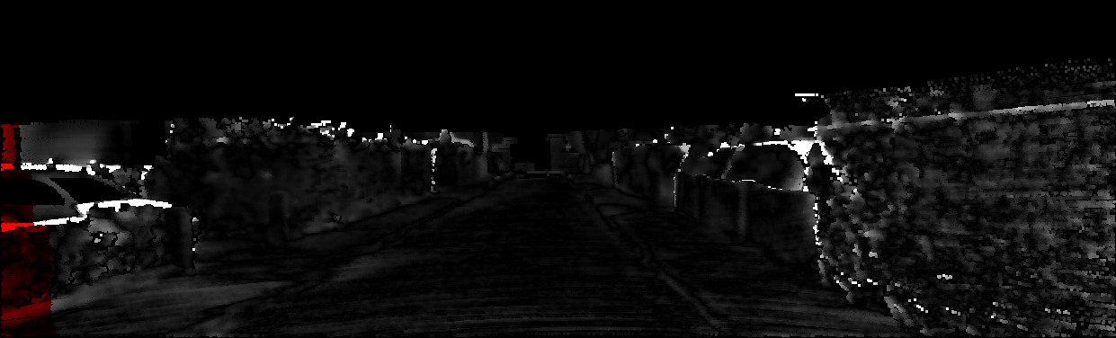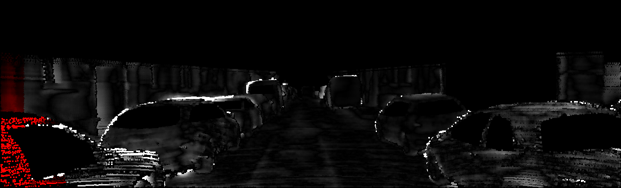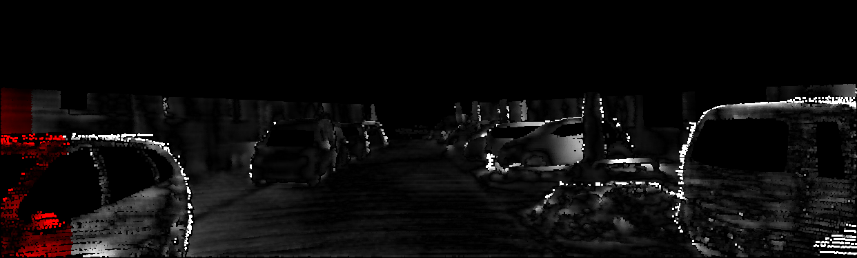 This page provides detailed results for the method(s) selected. For each of the first 20 test images, the number of erroneous pixels at all thresholds is depicted in the table. Underneath, the left input image, the disparity / end-point error map and the estimated (and interpolated) disparity / optical flow map are shown. The error map scales linearly between 0 (black) and >=5 (white) pixels error. Red denotes all occluded pixels, falling outside the image boundaries. The false color map is scaled to the largest ground truth disparity / flow value.