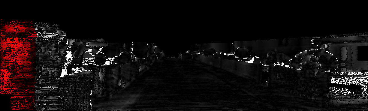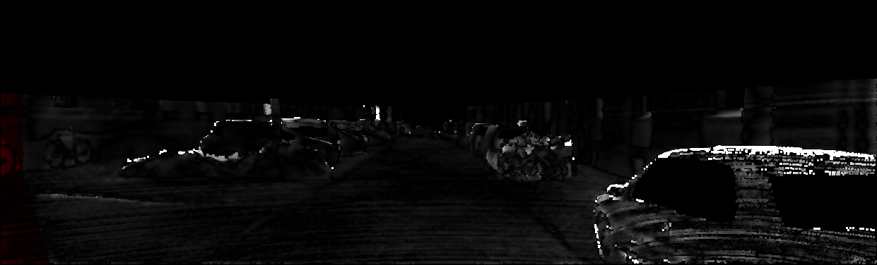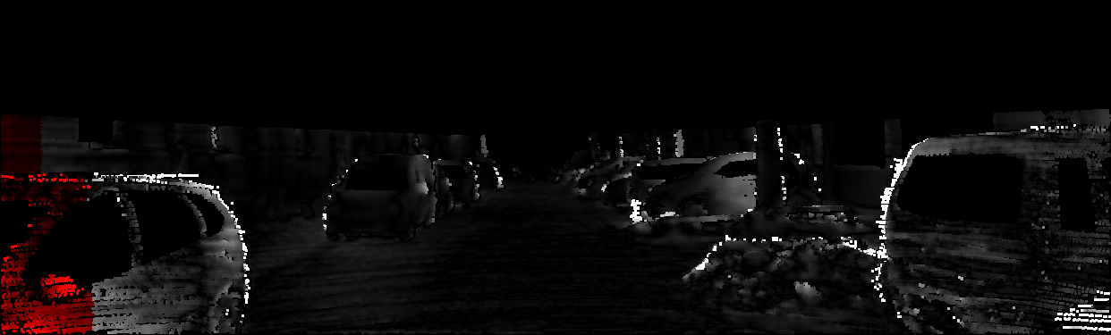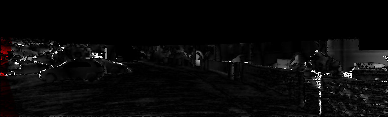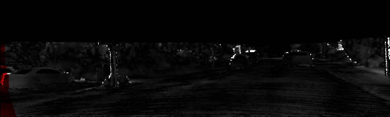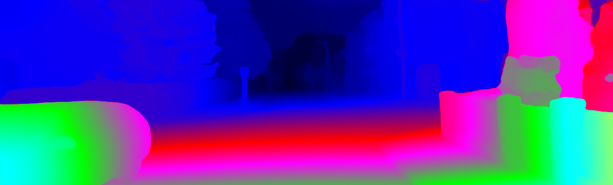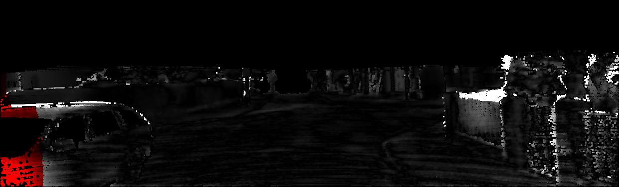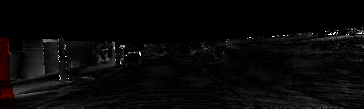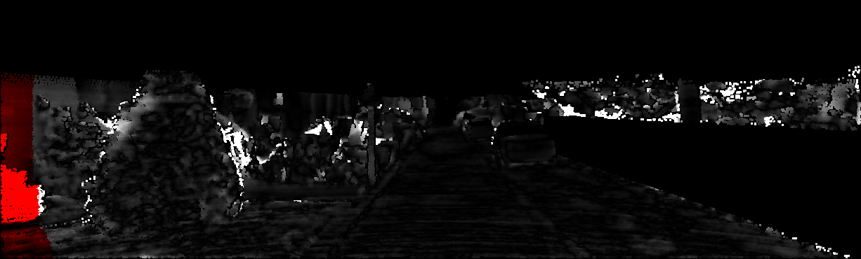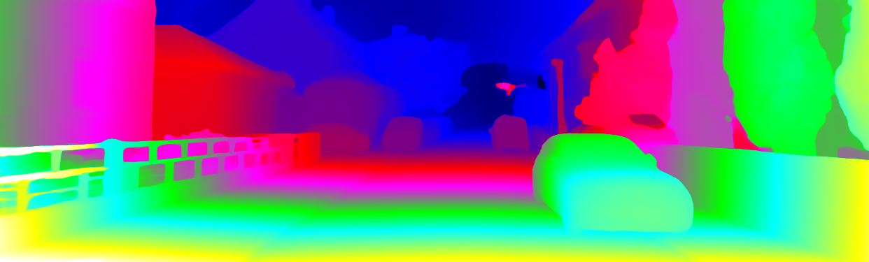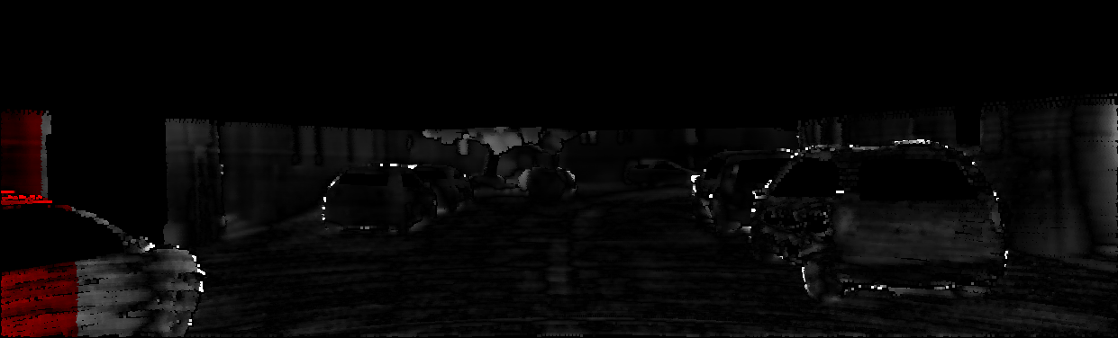 This page provides detailed results for the method(s) selected. For each of the first 20 test images, the number of erroneous pixels at all thresholds is depicted in the table. Underneath, the left input image, the disparity / end-point error map and the estimated (and interpolated) disparity / optical flow map are shown. The error map scales linearly between 0 (black) and >=5 (white) pixels error. Red denotes all occluded pixels, falling outside the image boundaries. The false color map is scaled to the largest ground truth disparity / flow value.