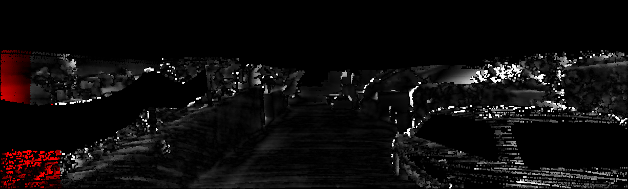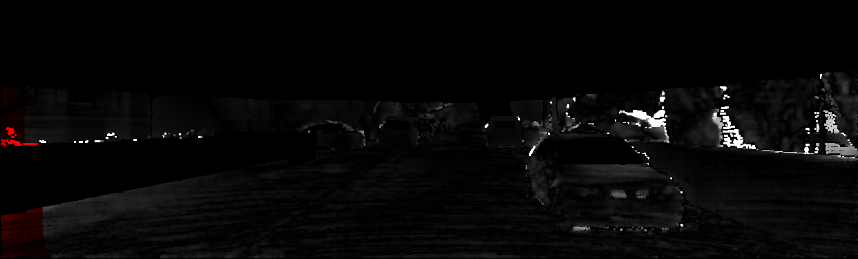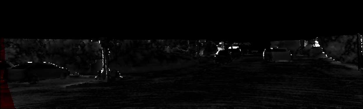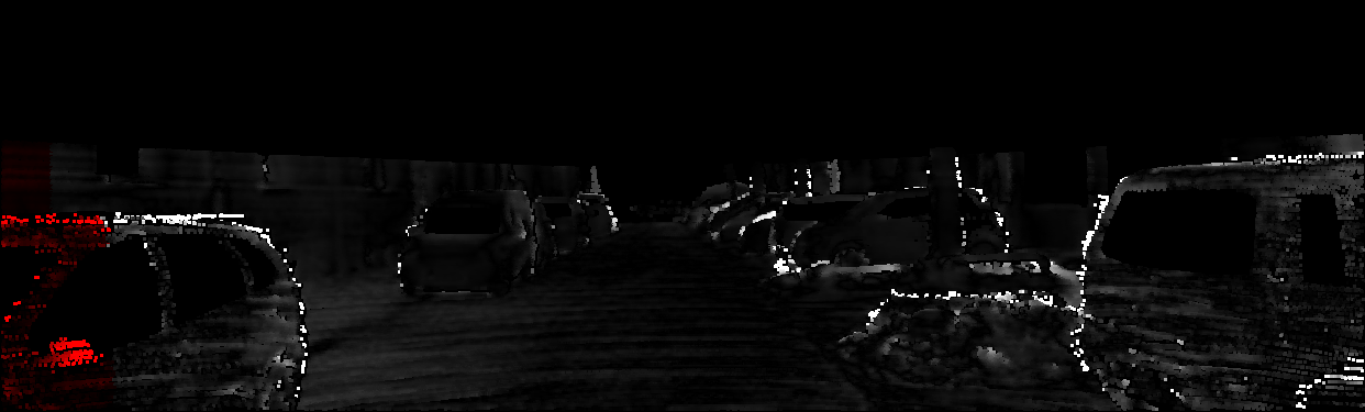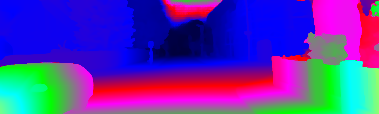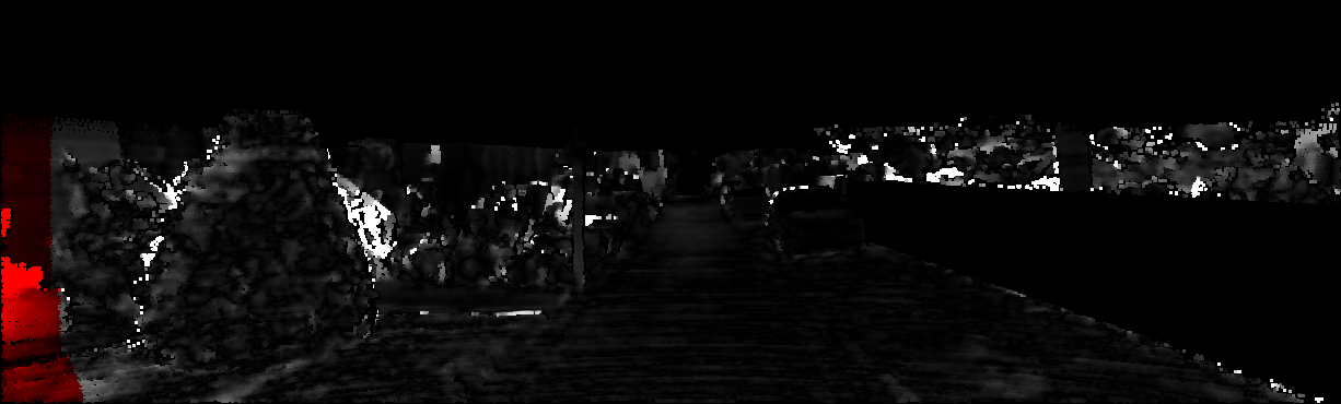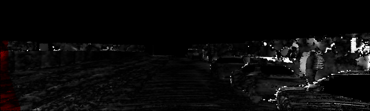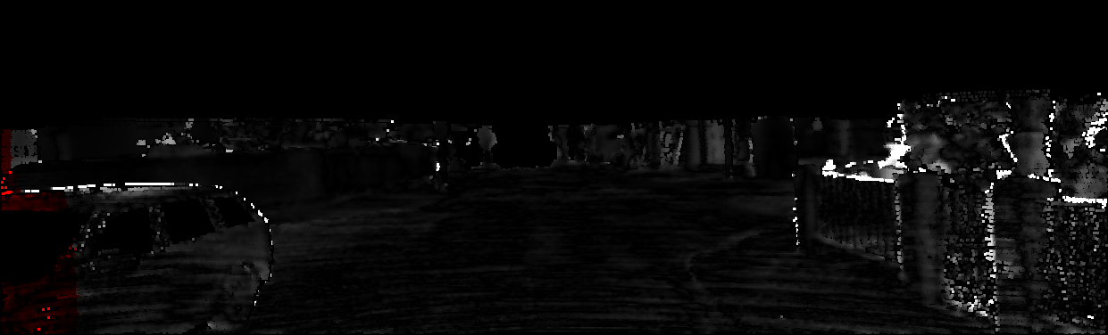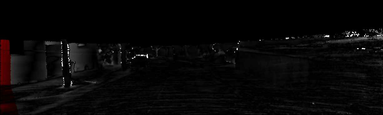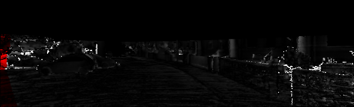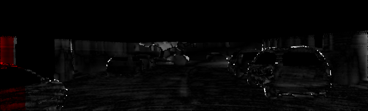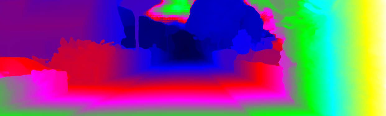 This page provides detailed results for the method(s) selected. For each of the first 20 test images, the number of erroneous pixels at all thresholds is depicted in the table. Underneath, the left input image, the disparity / end-point error map and the estimated (and interpolated) disparity / optical flow map are shown. The error map scales linearly between 0 (black) and >=5 (white) pixels error. Red denotes all occluded pixels, falling outside the image boundaries. The false color map is scaled to the largest ground truth disparity / flow value.