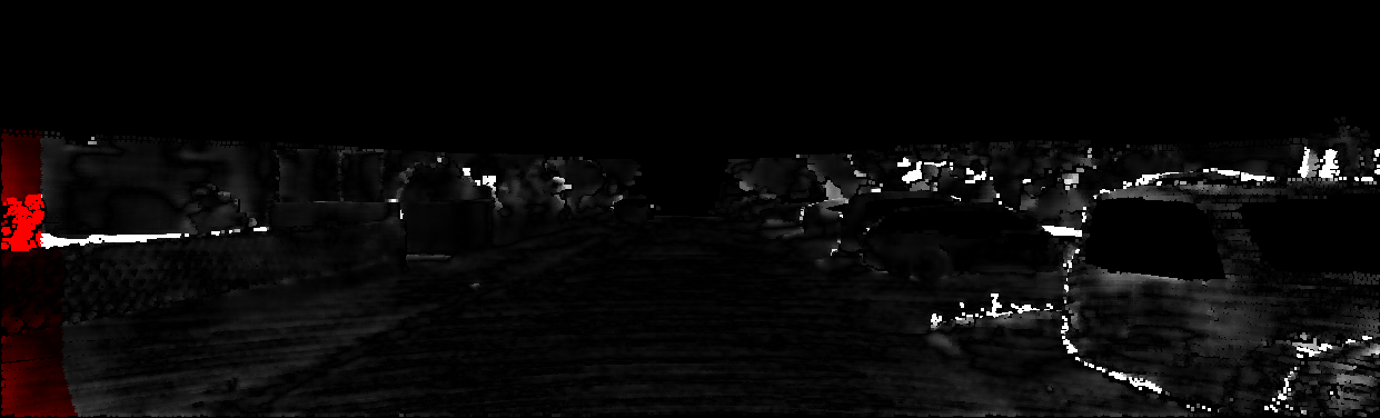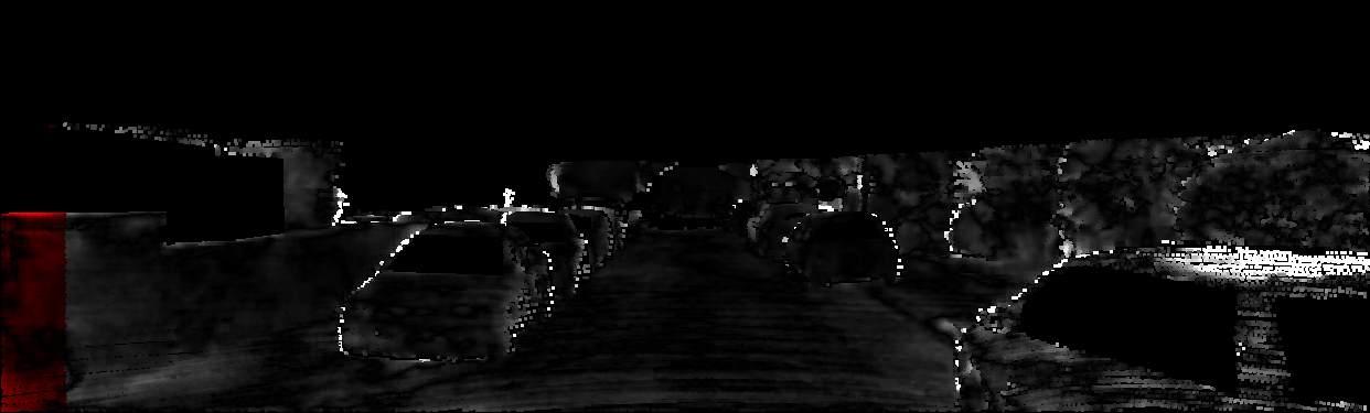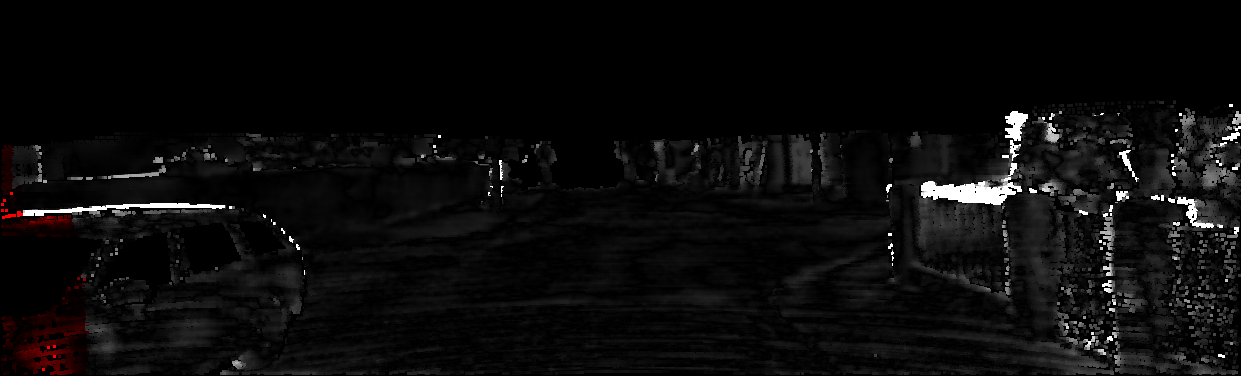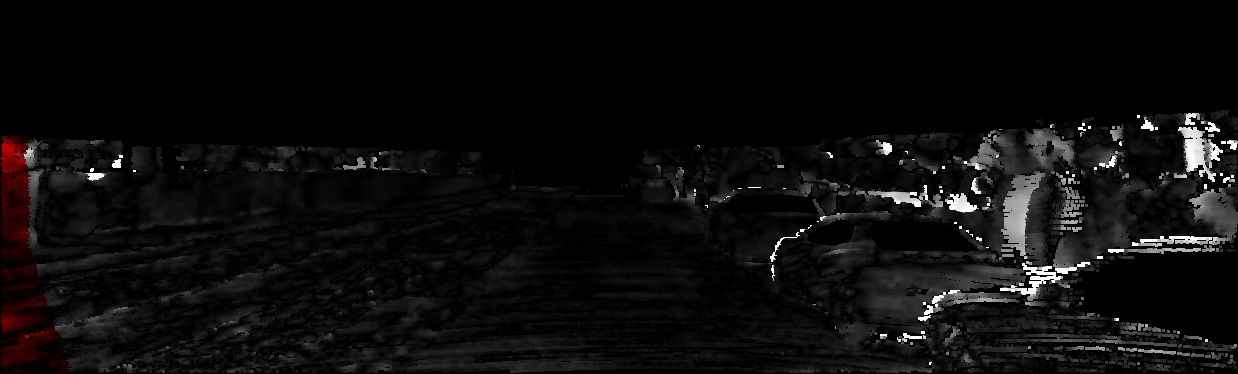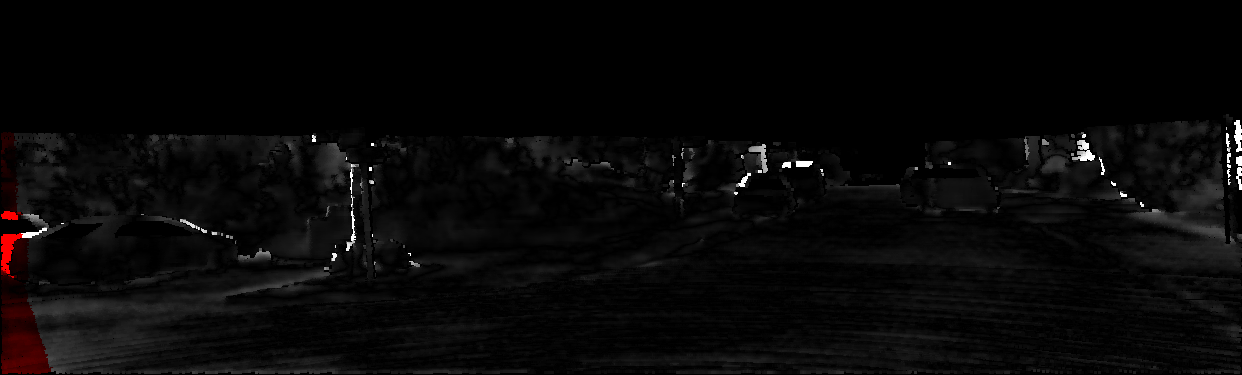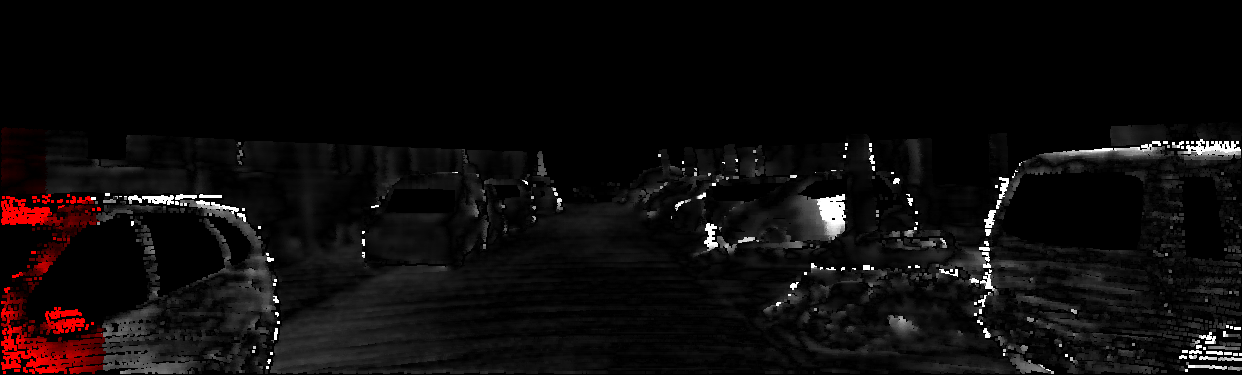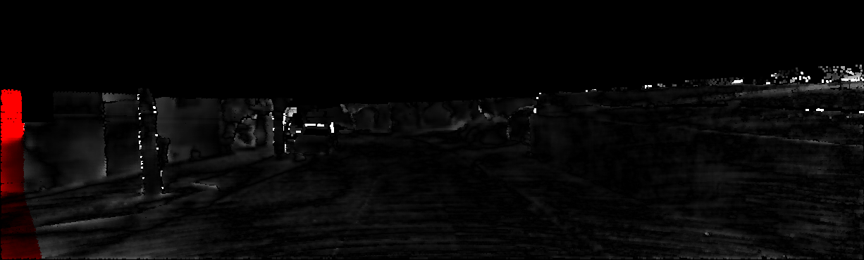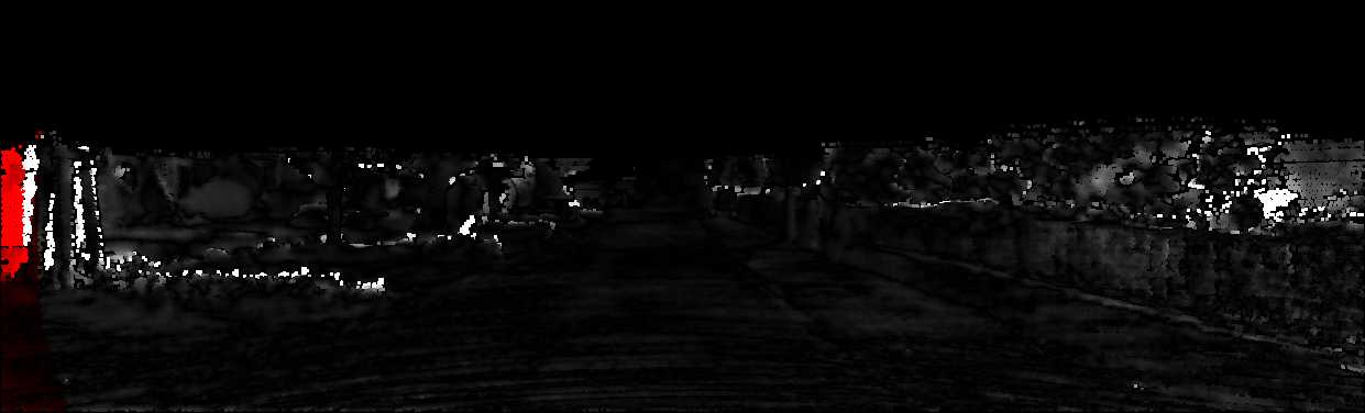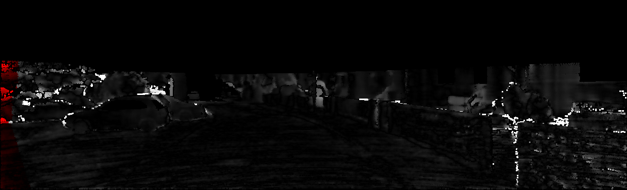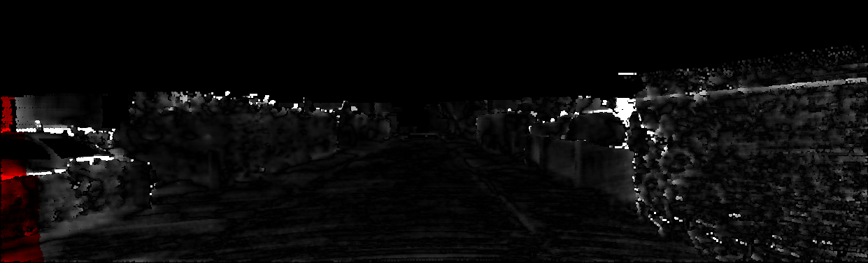 This page provides detailed results for the method(s) selected. For each of the first 20 test images, the number of erroneous pixels at all thresholds is depicted in the table. Underneath, the left input image, the disparity / end-point error map and the estimated (and interpolated) disparity / optical flow map are shown. The error map scales linearly between 0 (black) and >=5 (white) pixels error. Red denotes all occluded pixels, falling outside the image boundaries. The false color map is scaled to the largest ground truth disparity / flow value.
