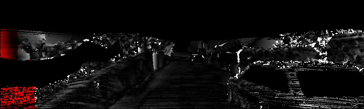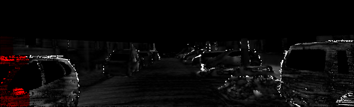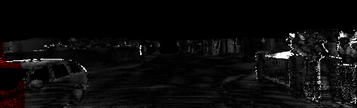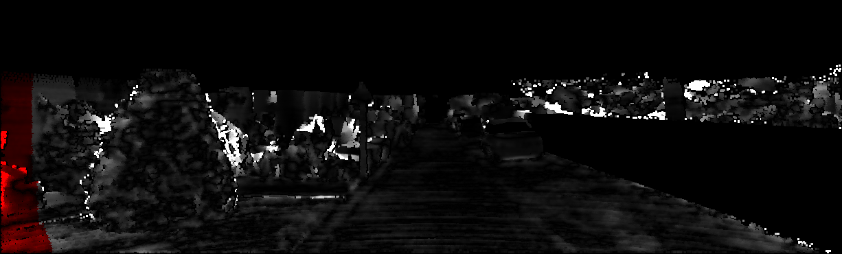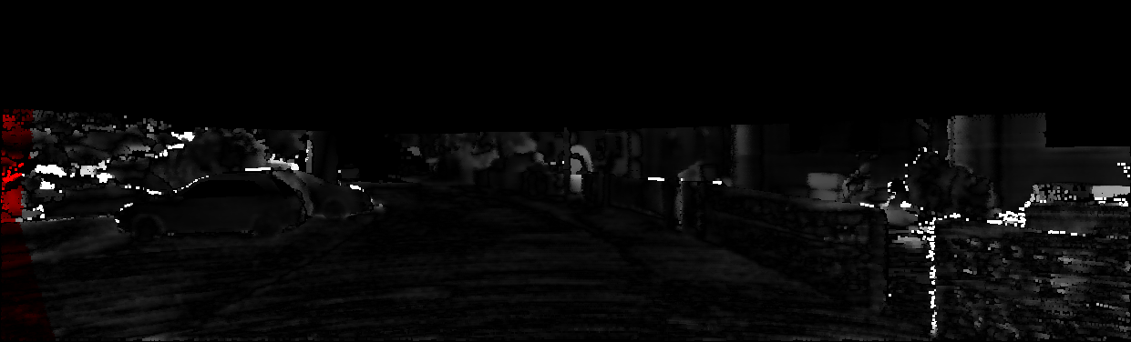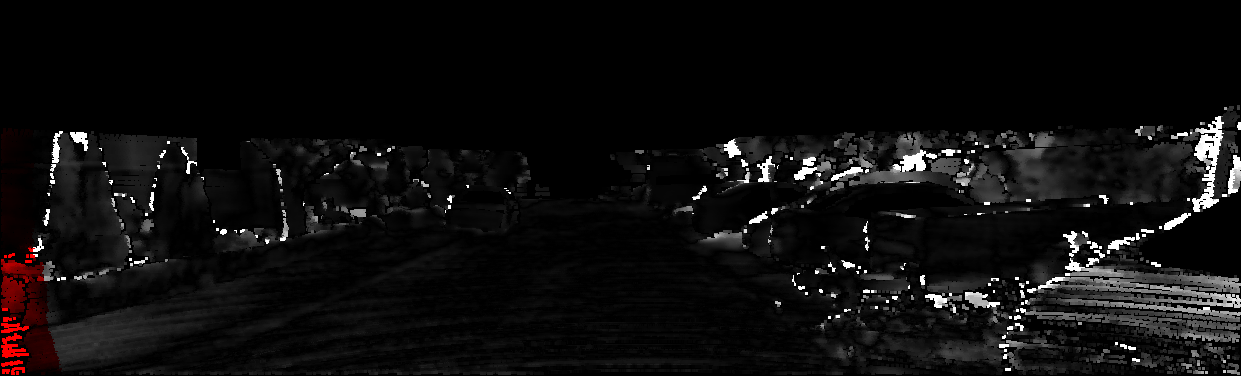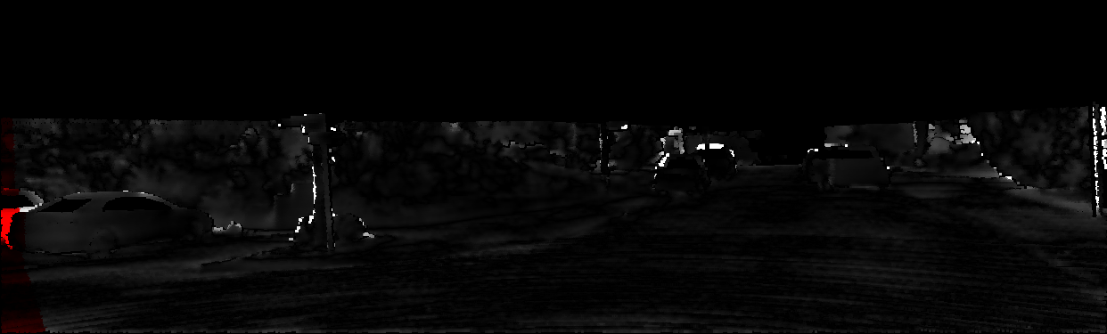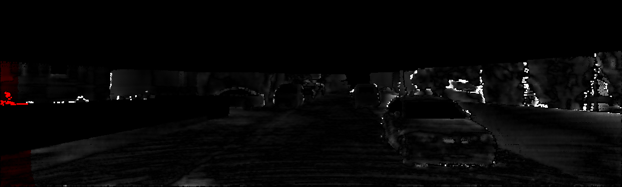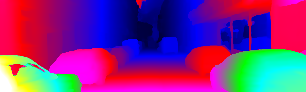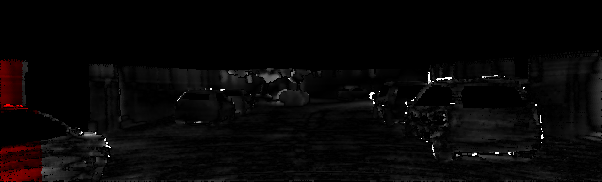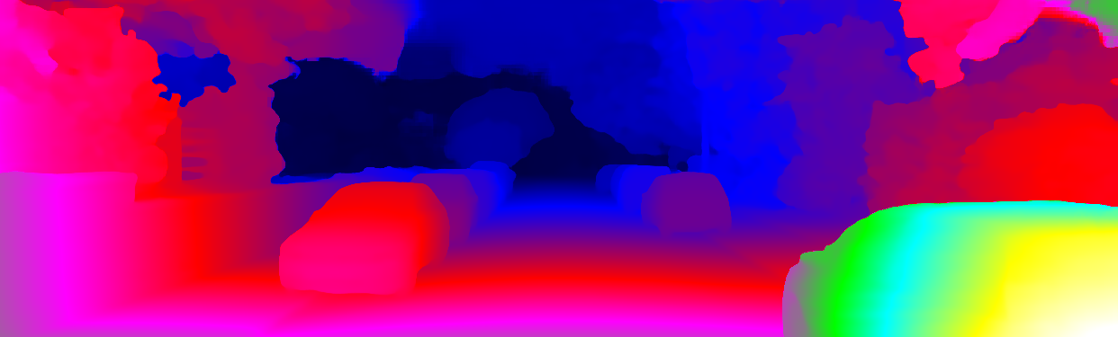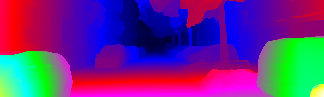 This page provides detailed results for the method(s) selected. For each of the first 20 test images, the number of erroneous pixels at all thresholds is depicted in the table. Underneath, the left input image, the disparity / end-point error map and the estimated (and interpolated) disparity / optical flow map are shown. The error map scales linearly between 0 (black) and >=5 (white) pixels error. Red denotes all occluded pixels, falling outside the image boundaries. The false color map is scaled to the largest ground truth disparity / flow value.