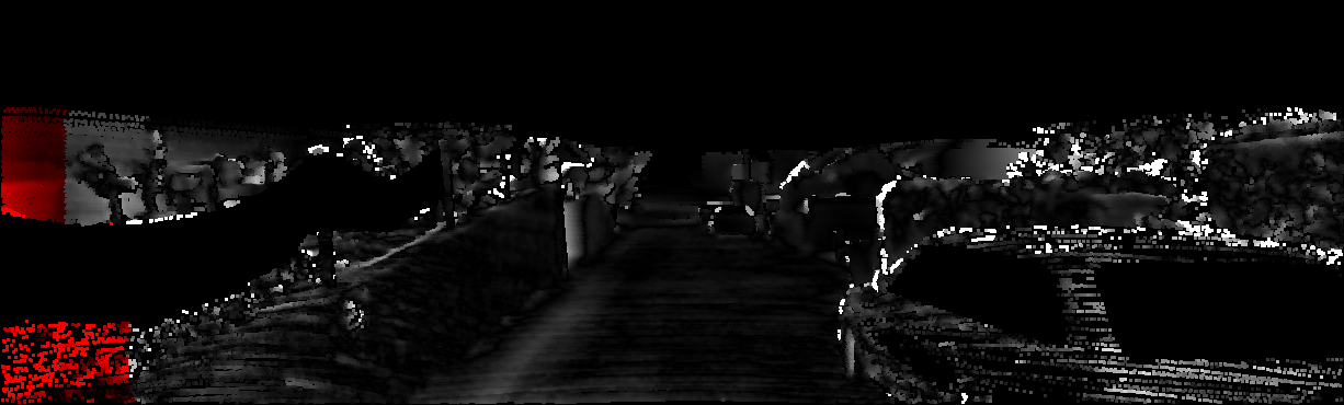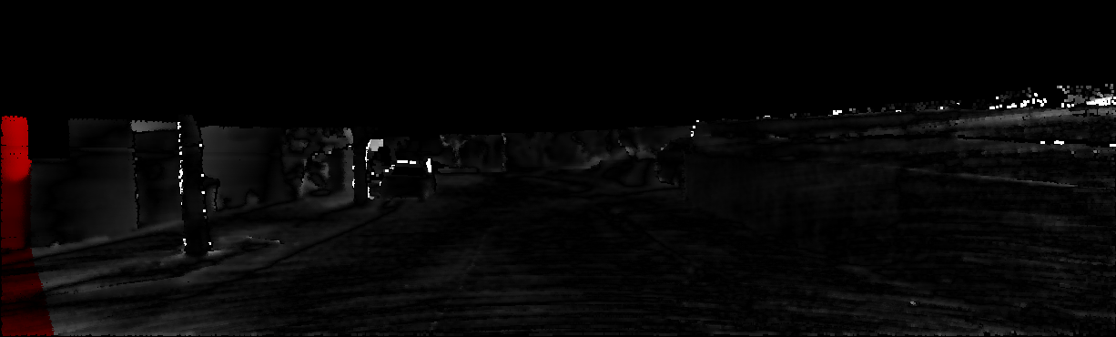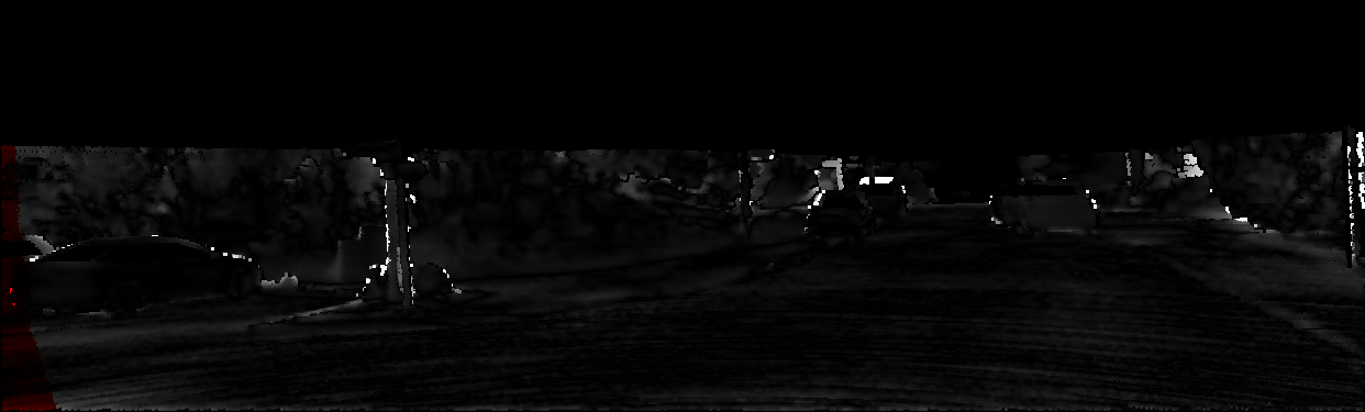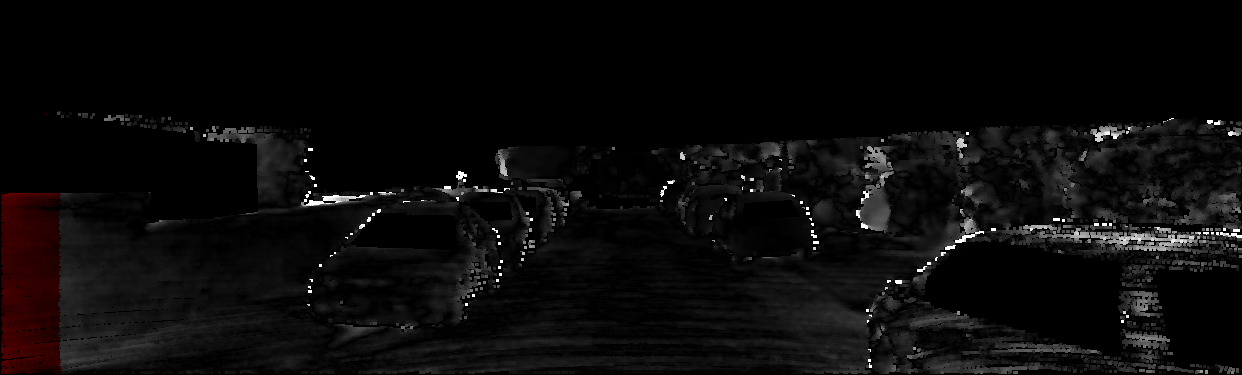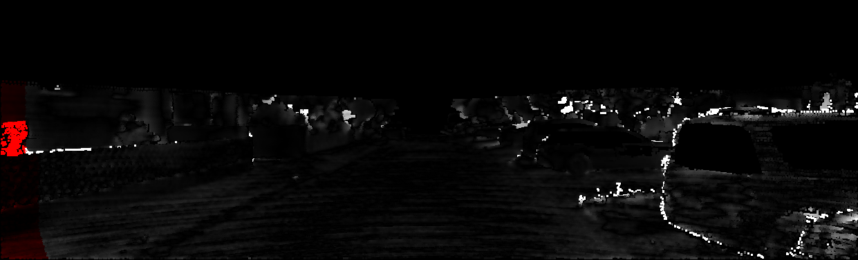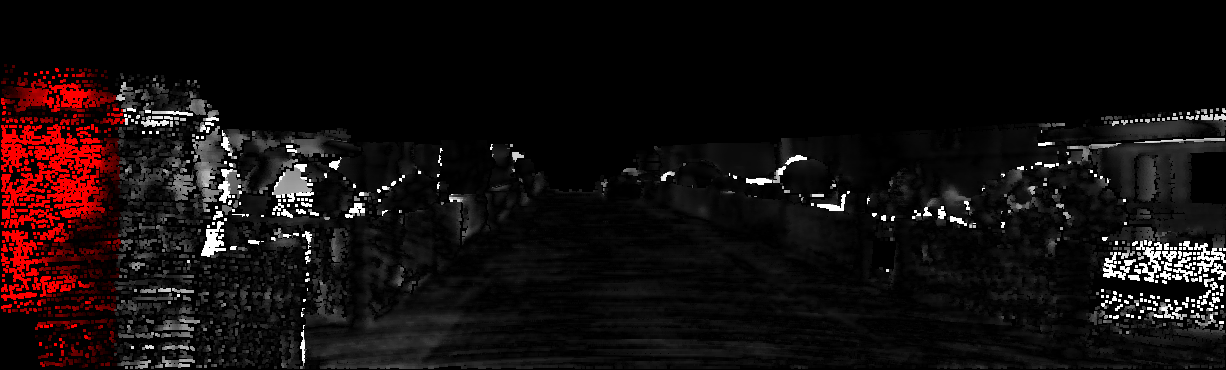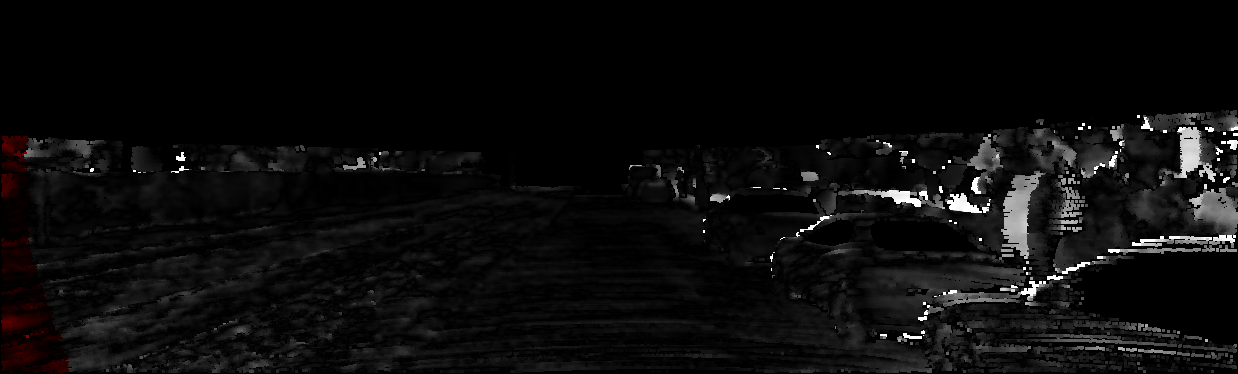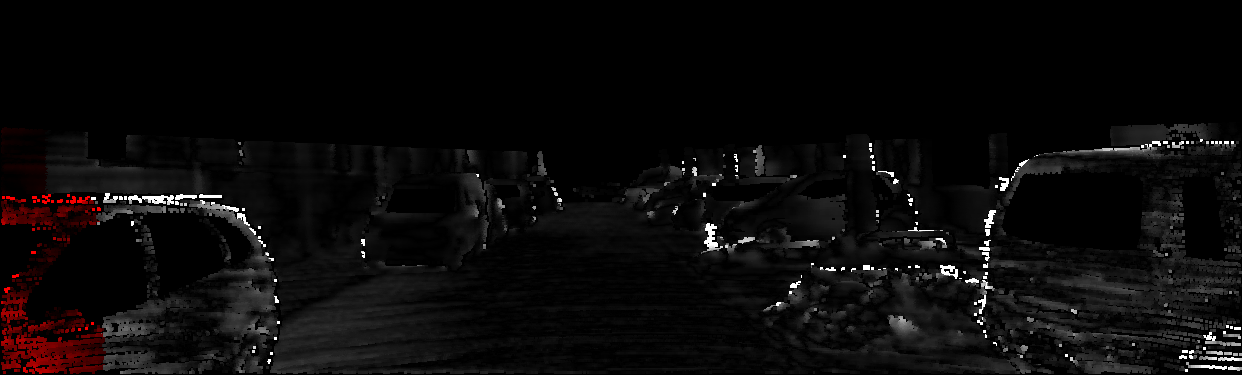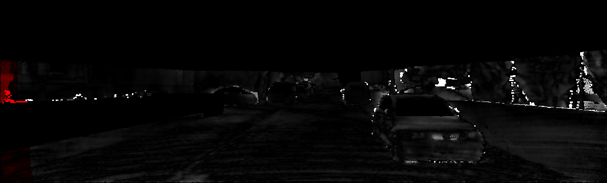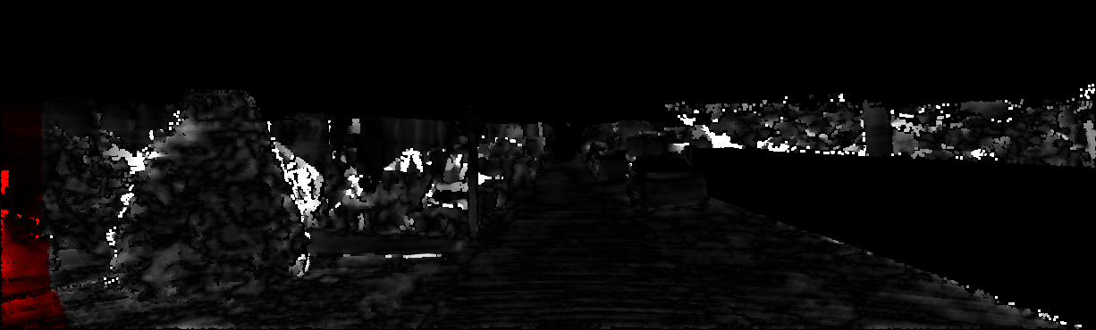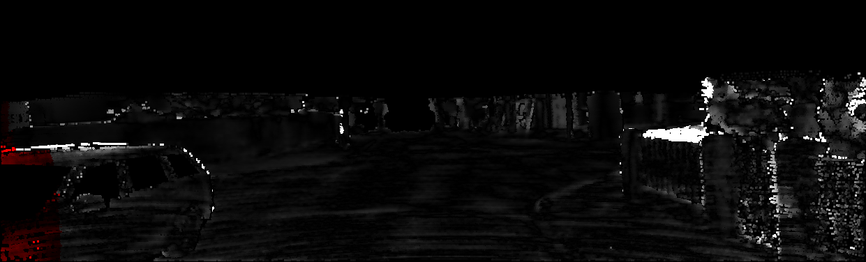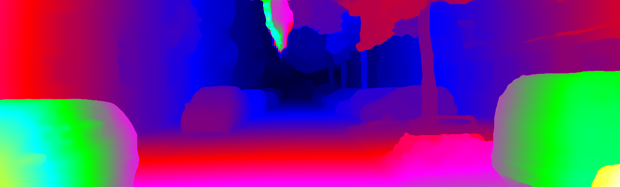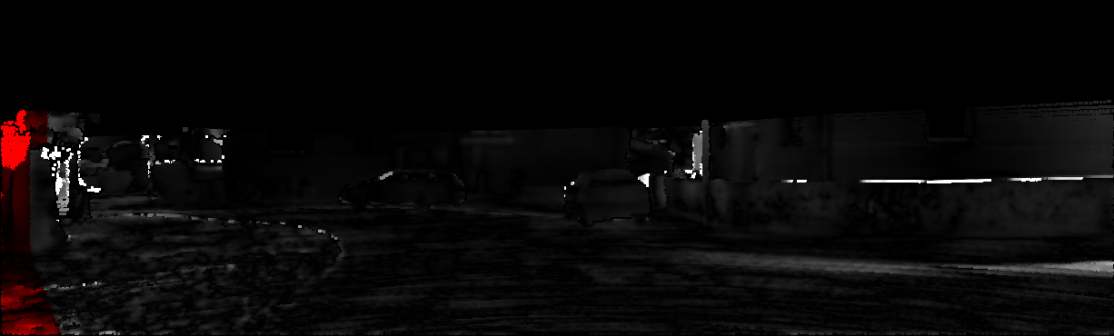 This page provides detailed results for the method(s) selected. For each of the first 20 test images, the number of erroneous pixels at all thresholds is depicted in the table. Underneath, the left input image, the disparity / end-point error map and the estimated (and interpolated) disparity / optical flow map are shown. The error map scales linearly between 0 (black) and >=5 (white) pixels error. Red denotes all occluded pixels, falling outside the image boundaries. The false color map is scaled to the largest ground truth disparity / flow value.