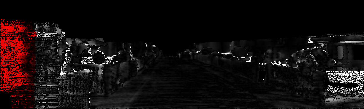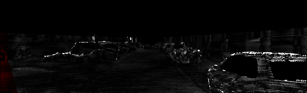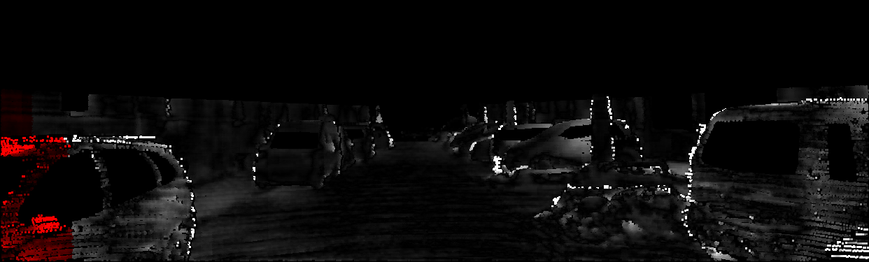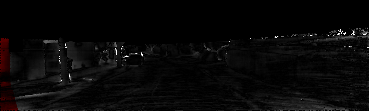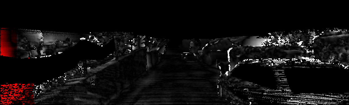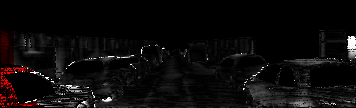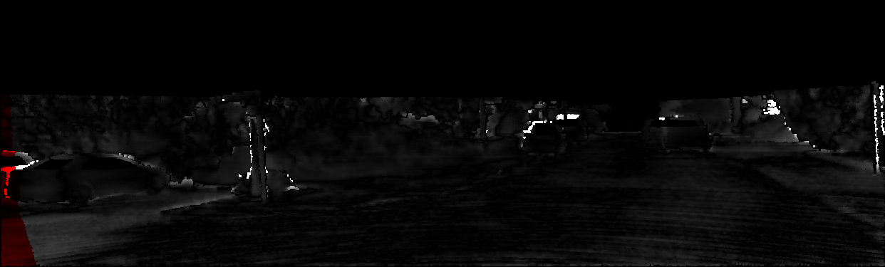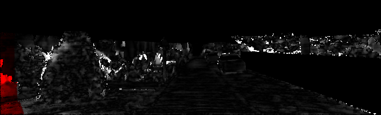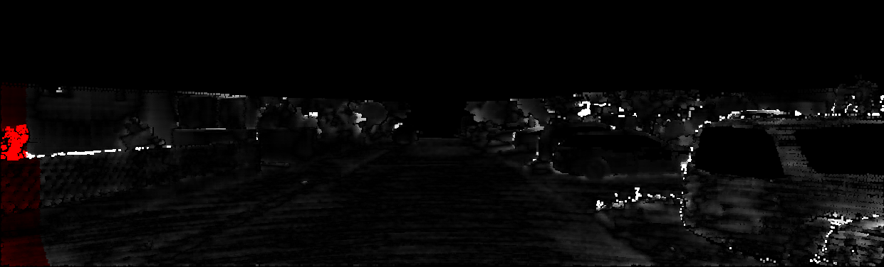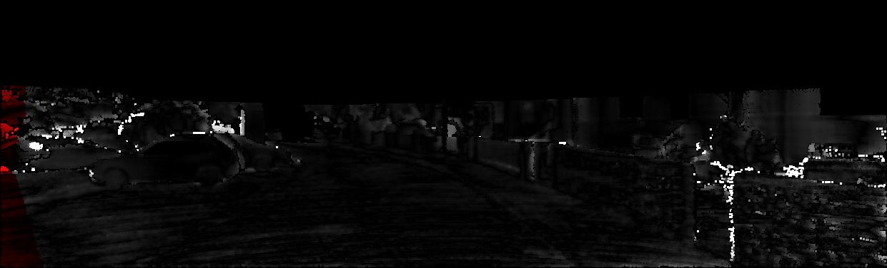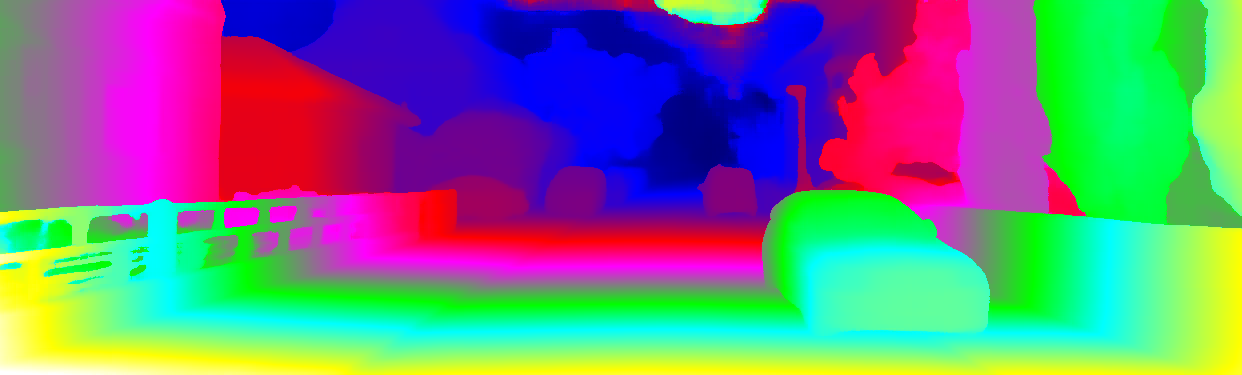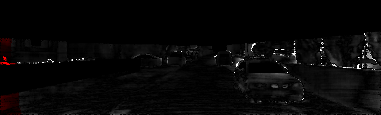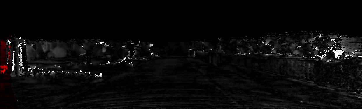 This page provides detailed results for the method(s) selected. For each of the first 20 test images, the number of erroneous pixels at all thresholds is depicted in the table. Underneath, the left input image, the disparity / end-point error map and the estimated (and interpolated) disparity / optical flow map are shown. The error map scales linearly between 0 (black) and >=5 (white) pixels error. Red denotes all occluded pixels, falling outside the image boundaries. The false color map is scaled to the largest ground truth disparity / flow value.