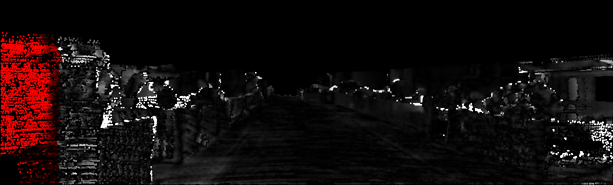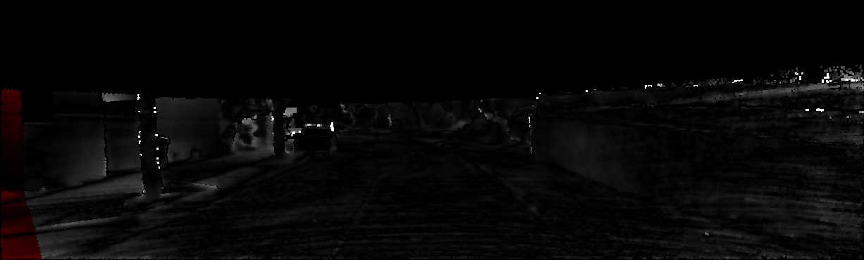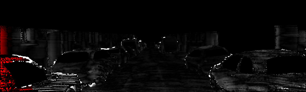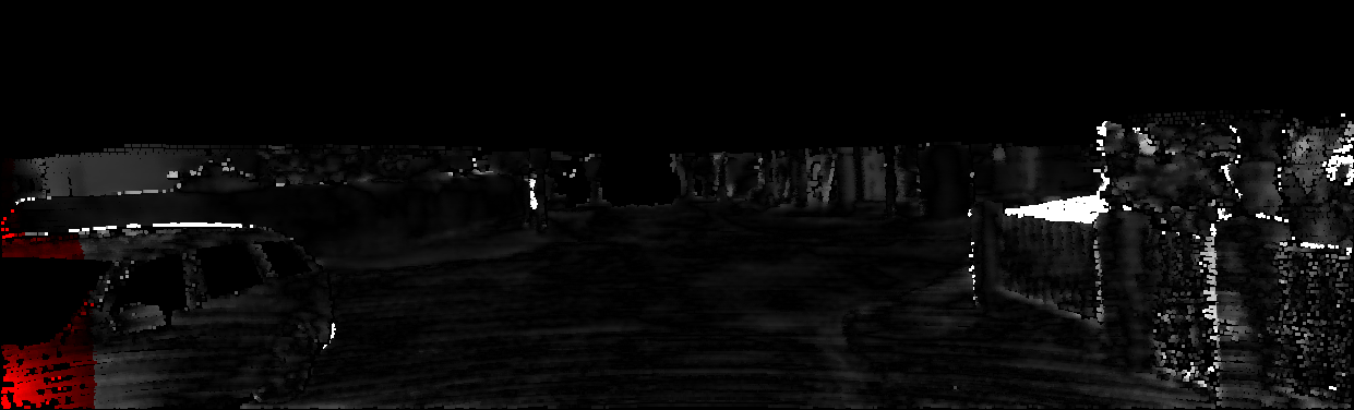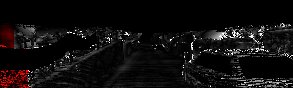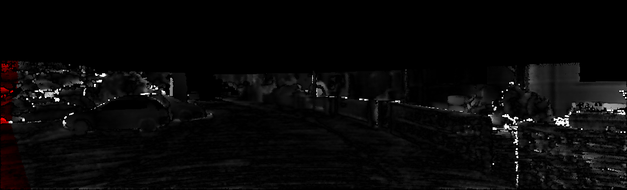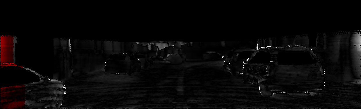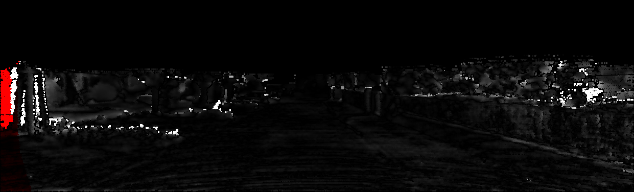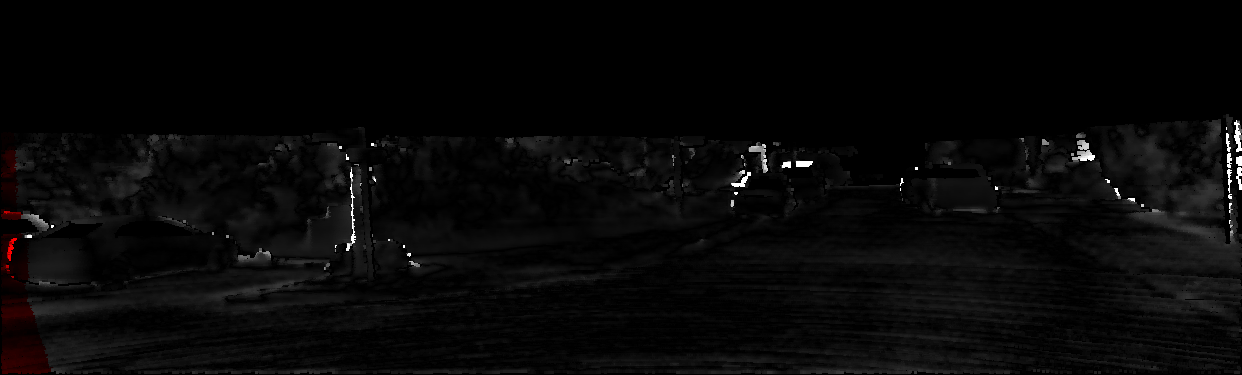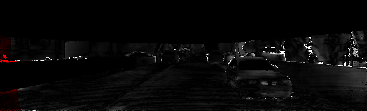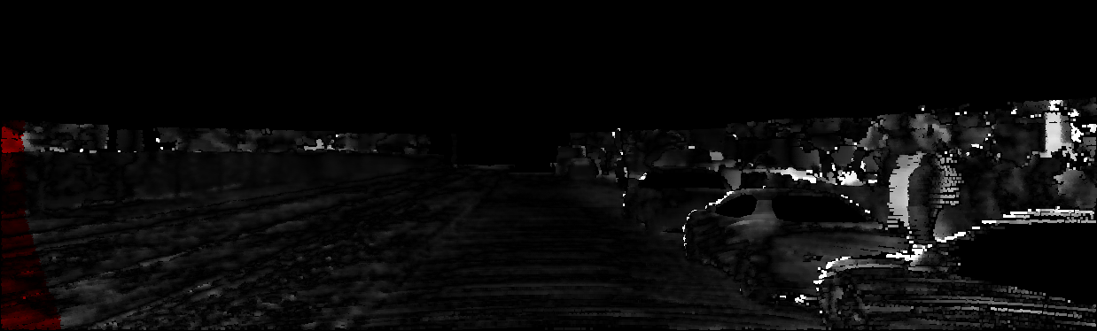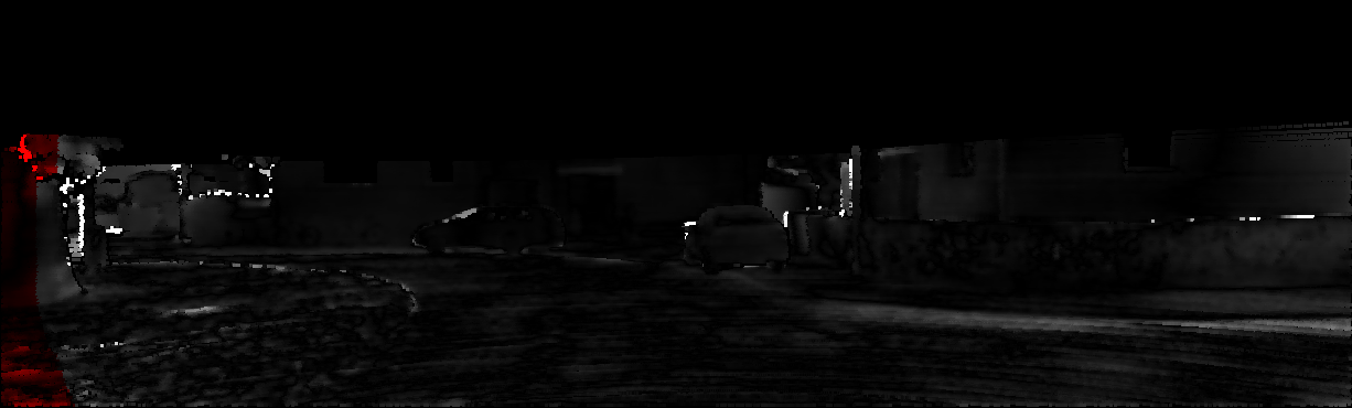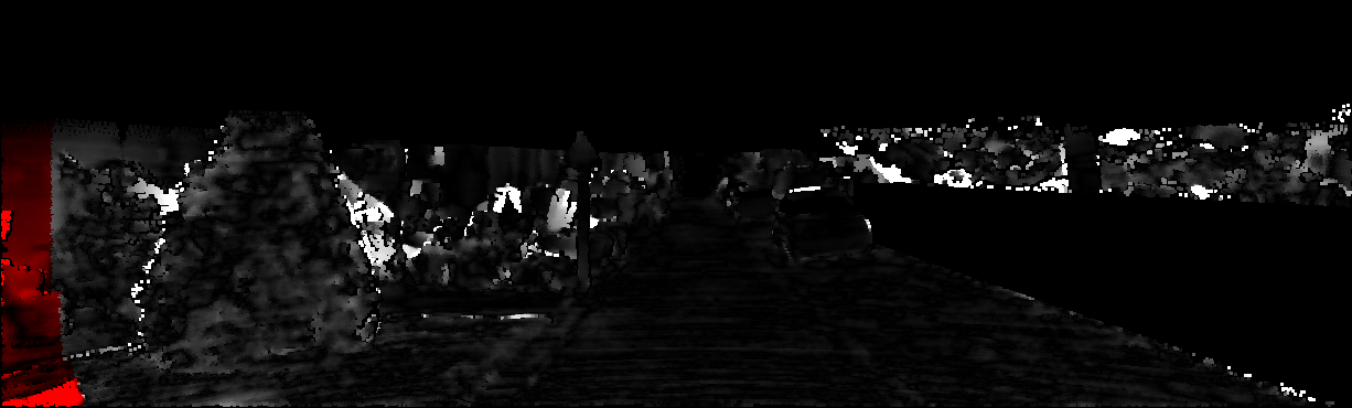 This page provides detailed results for the method(s) selected. For each of the first 20 test images, the number of erroneous pixels at all thresholds is depicted in the table. Underneath, the left input image, the disparity / end-point error map and the estimated (and interpolated) disparity / optical flow map are shown. The error map scales linearly between 0 (black) and >=5 (white) pixels error. Red denotes all occluded pixels, falling outside the image boundaries. The false color map is scaled to the largest ground truth disparity / flow value.
