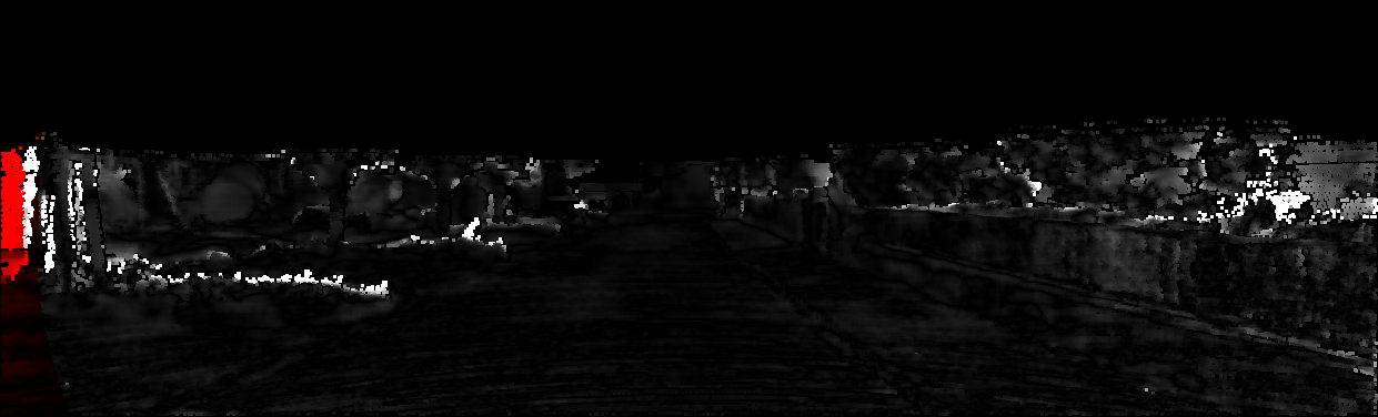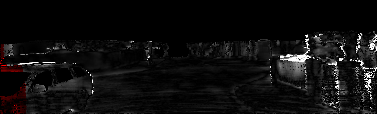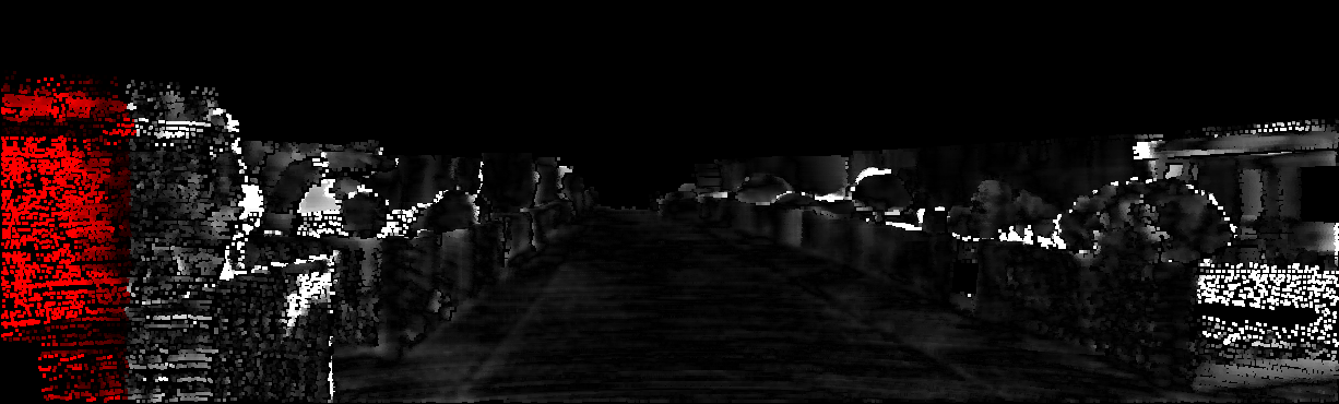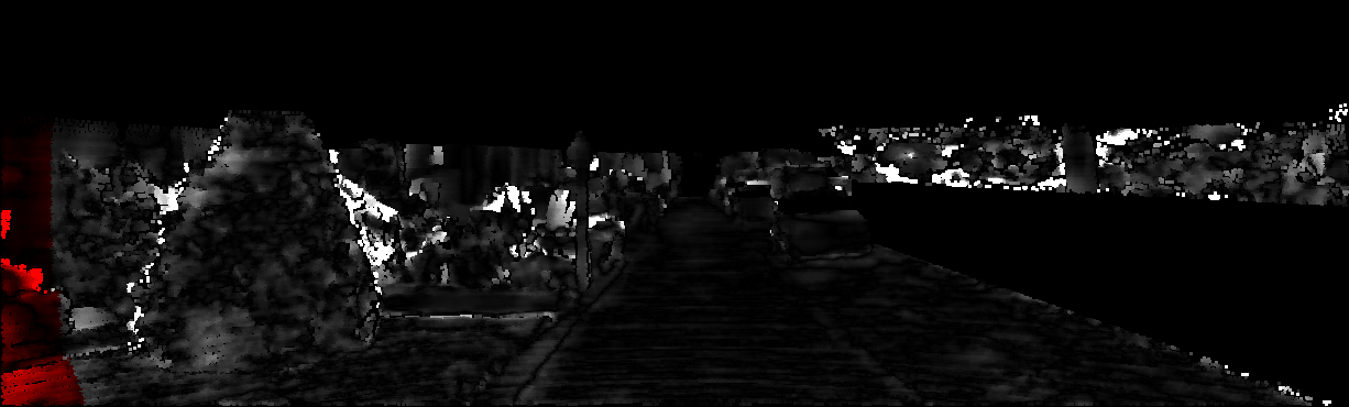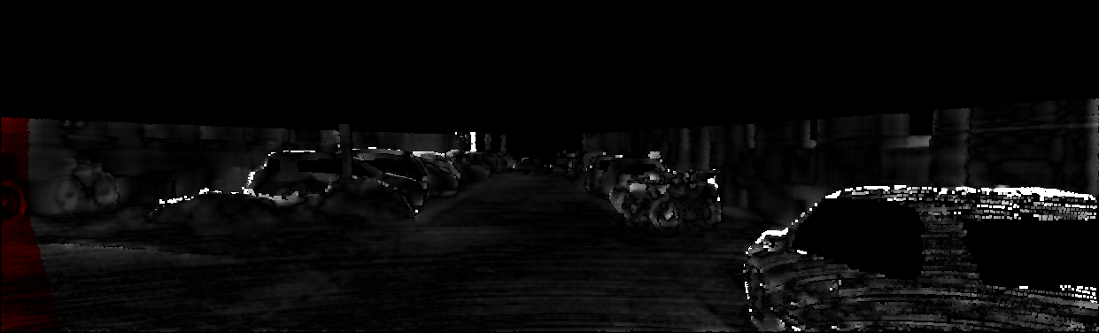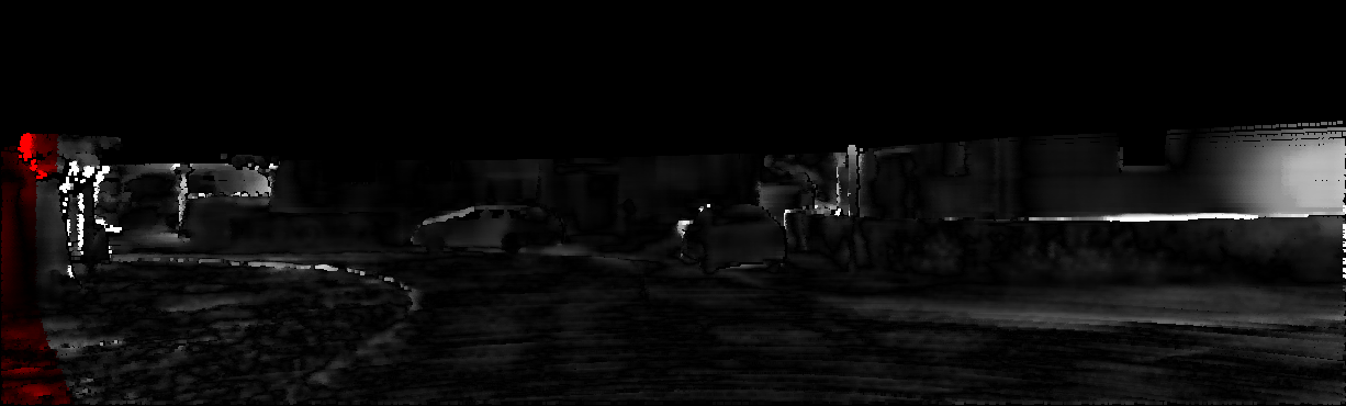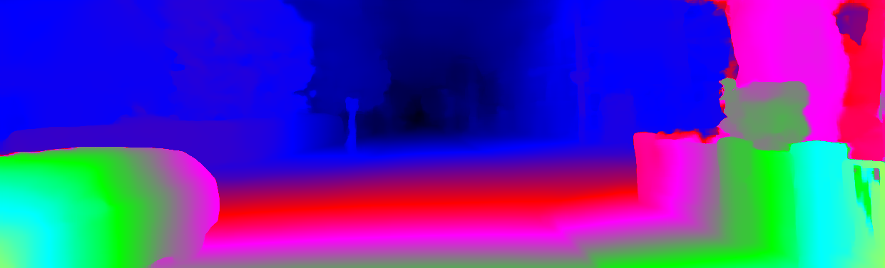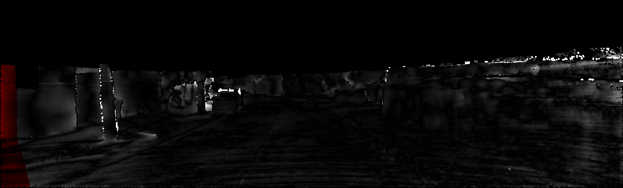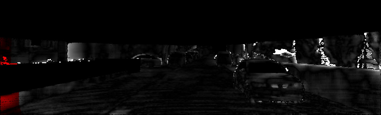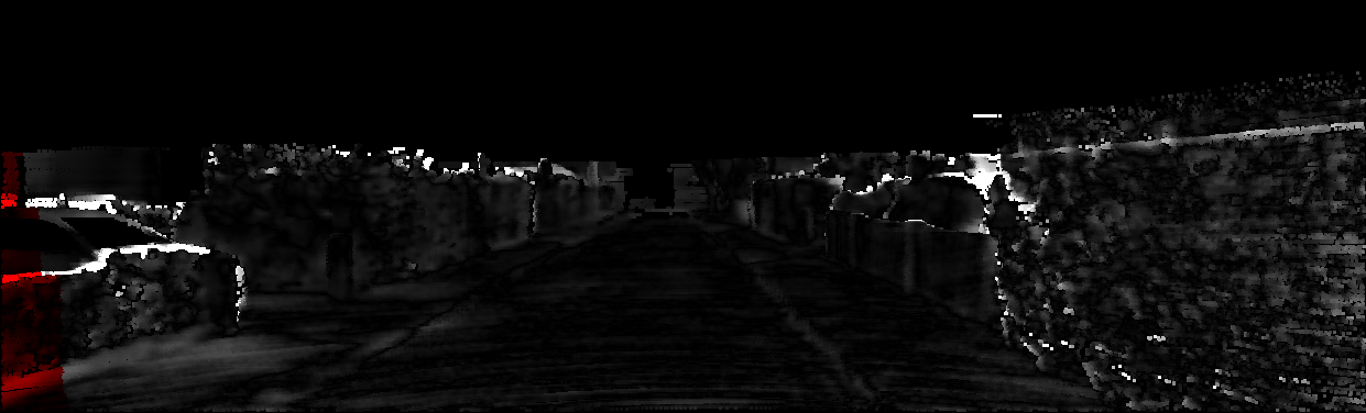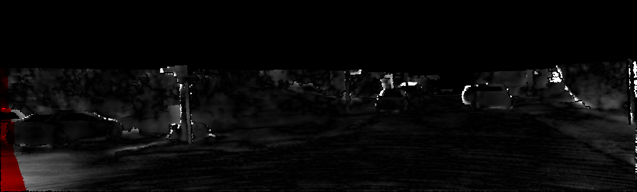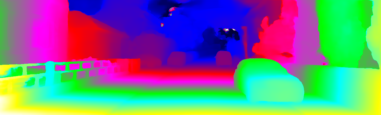This page provides detailed results for the method(s) selected. For each of the first 20 test images, the number of erroneous pixels at all thresholds is depicted in the table. Underneath, the left input image, the disparity / end-point error map and the estimated (and interpolated) disparity / optical flow map are shown. The error map scales linearly between 0 (black) and >=5 (white) pixels error. Red denotes all occluded pixels, falling outside the image boundaries. The false color map is scaled to the largest ground truth disparity / flow value.