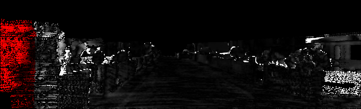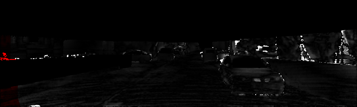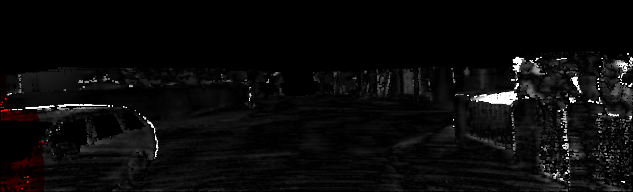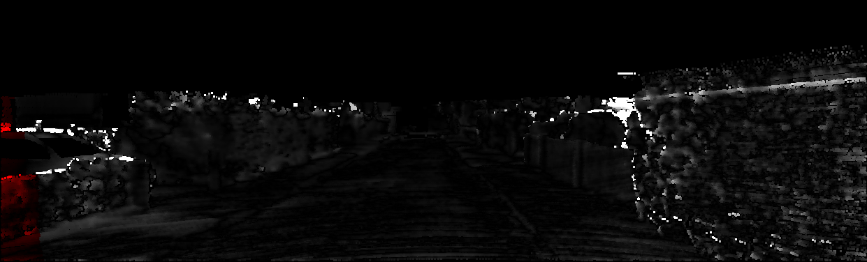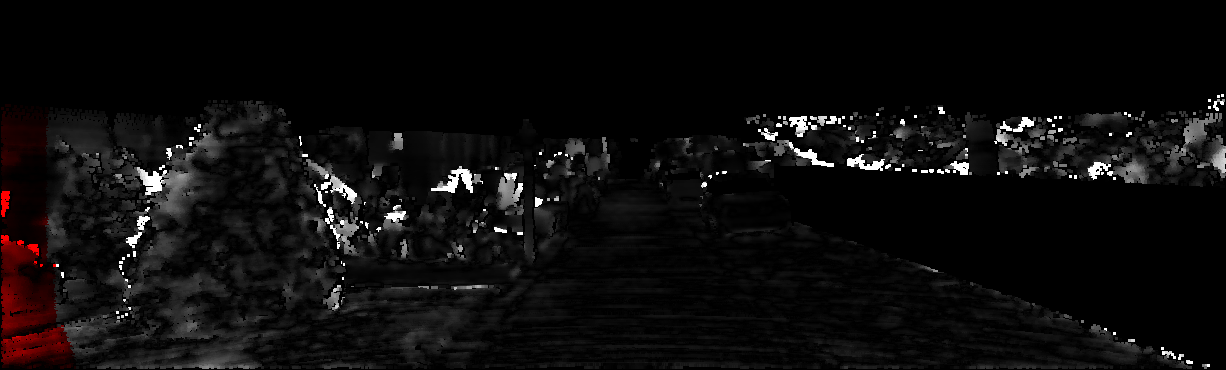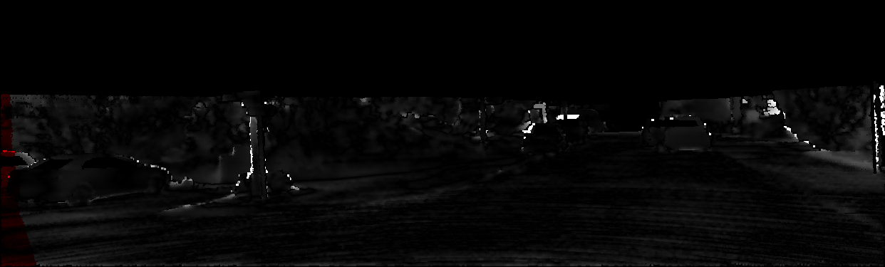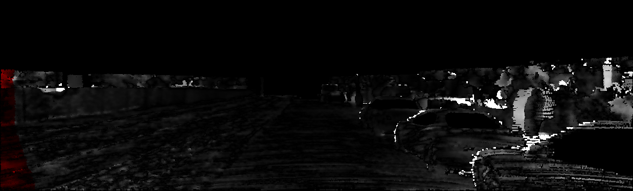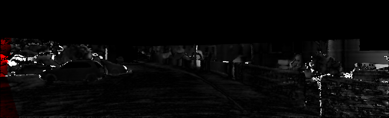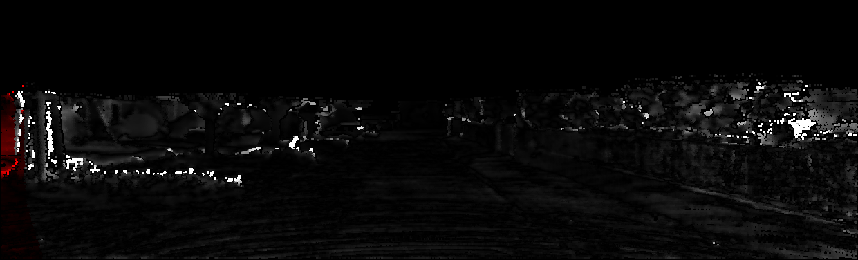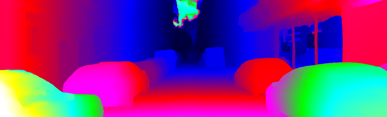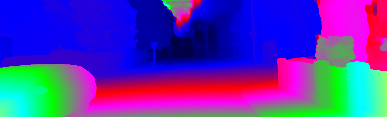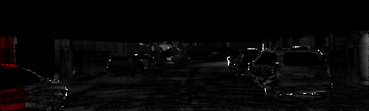 This page provides detailed results for the method(s) selected. For each of the first 20 test images, the number of erroneous pixels at all thresholds is depicted in the table. Underneath, the left input image, the disparity / end-point error map and the estimated (and interpolated) disparity / optical flow map are shown. The error map scales linearly between 0 (black) and >=5 (white) pixels error. Red denotes all occluded pixels, falling outside the image boundaries. The false color map is scaled to the largest ground truth disparity / flow value.