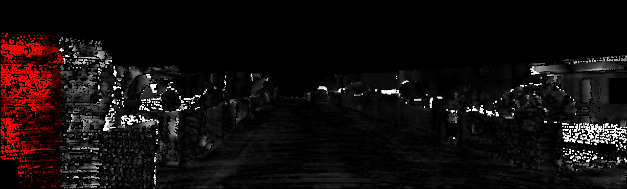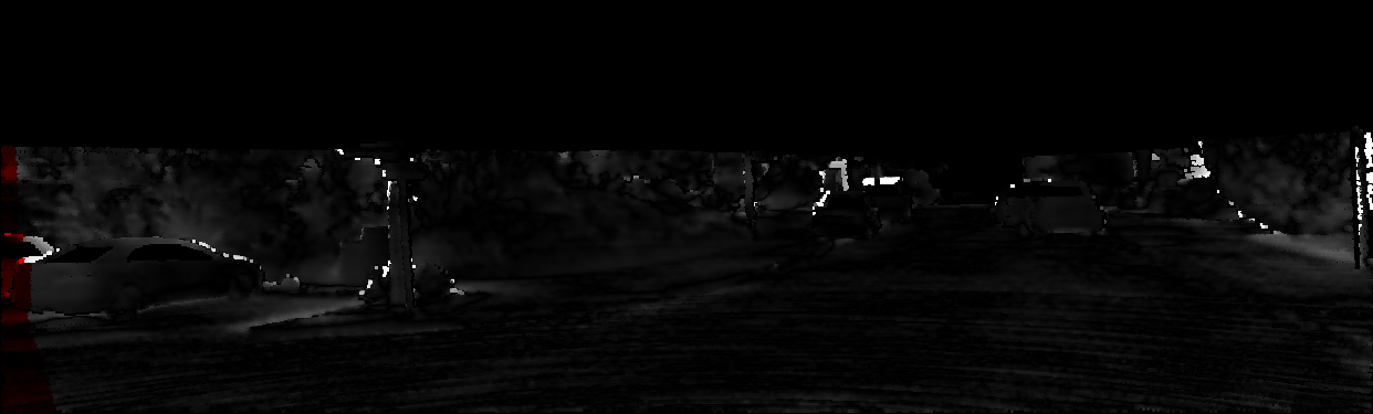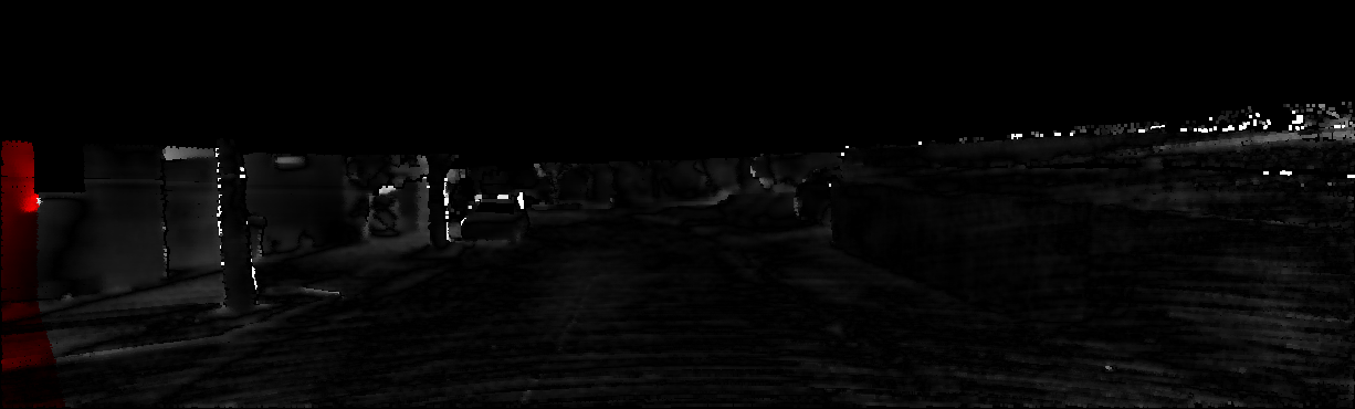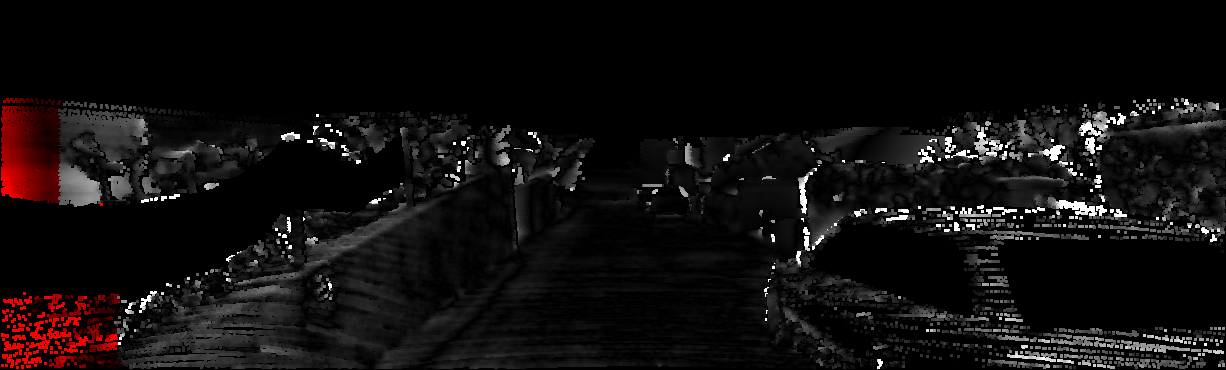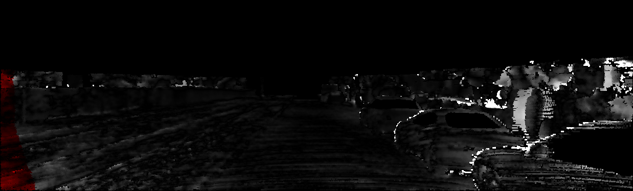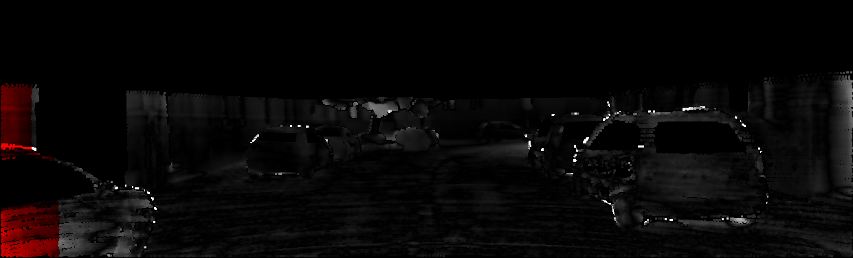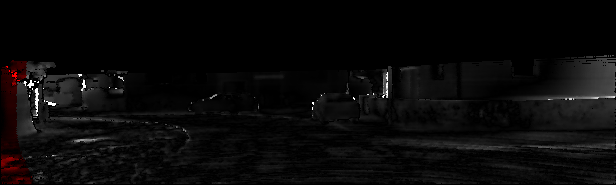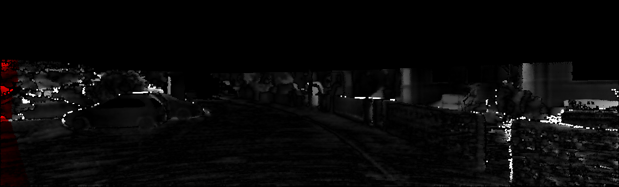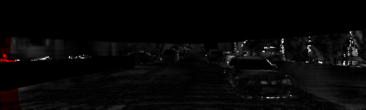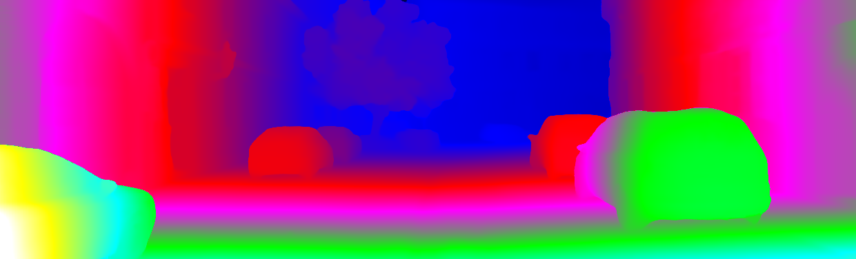 This page provides detailed results for the method(s) selected. For each of the first 20 test images, the number of erroneous pixels at all thresholds is depicted in the table. Underneath, the left input image, the disparity / end-point error map and the estimated (and interpolated) disparity / optical flow map are shown. The error map scales linearly between 0 (black) and >=5 (white) pixels error. Red denotes all occluded pixels, falling outside the image boundaries. The false color map is scaled to the largest ground truth disparity / flow value.