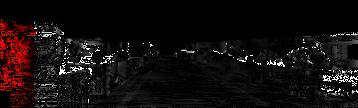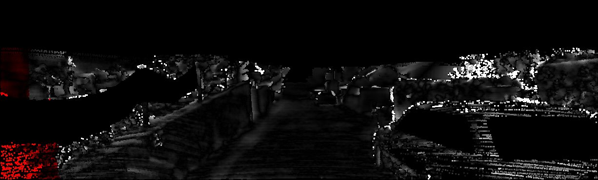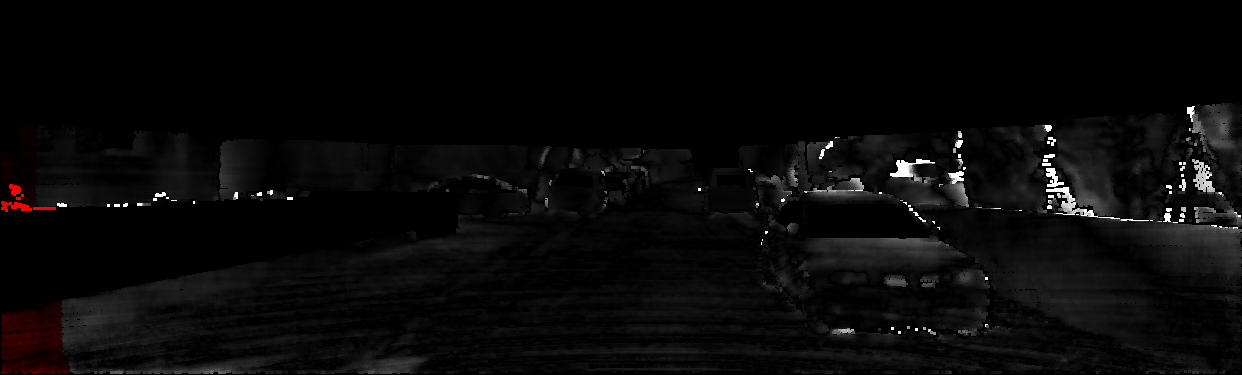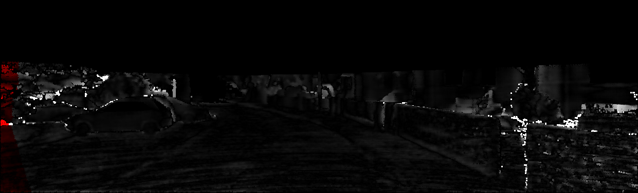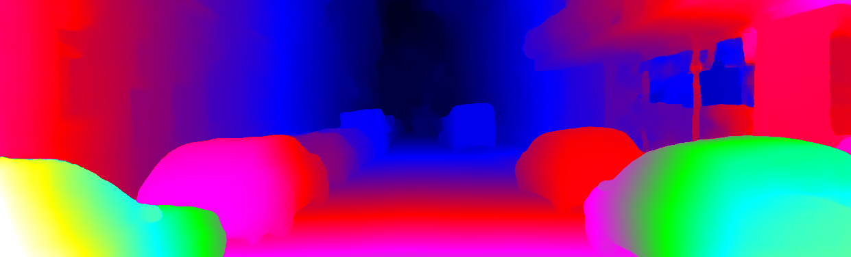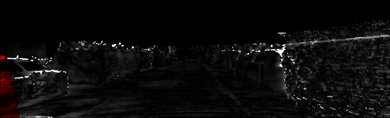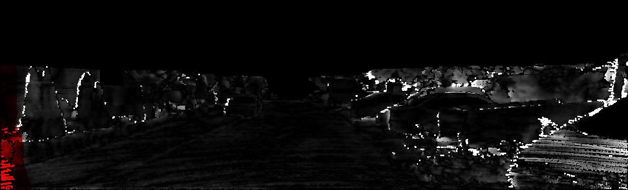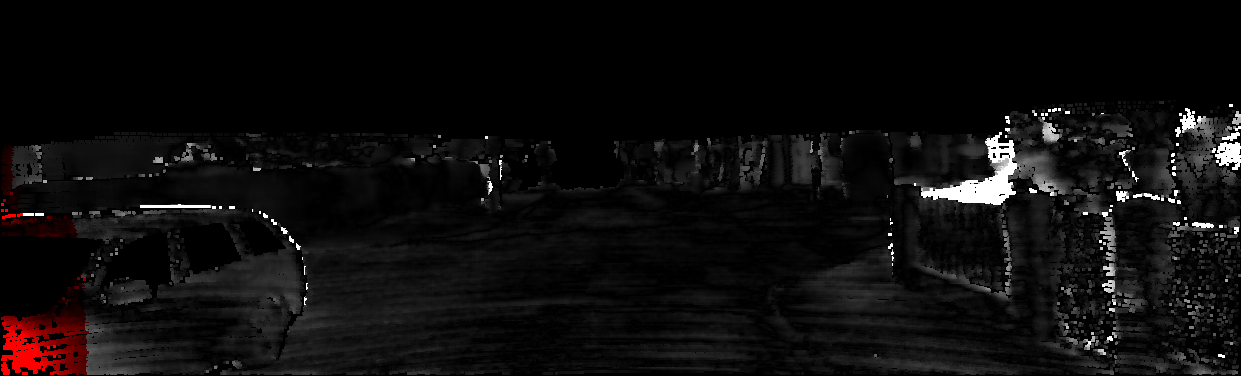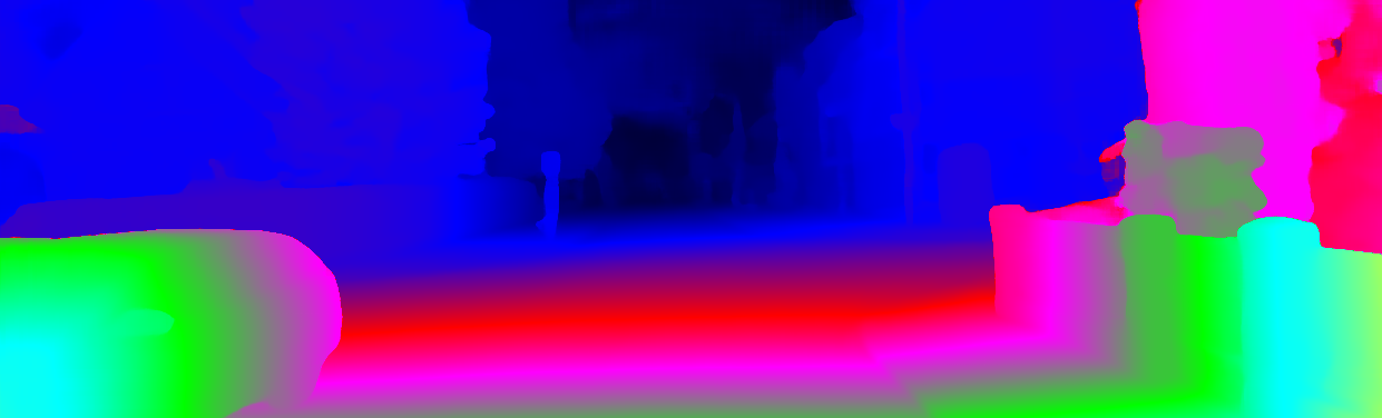 This page provides detailed results for the method(s) selected. For each of the first 20 test images, the number of erroneous pixels at all thresholds is depicted in the table. Underneath, the left input image, the disparity / end-point error map and the estimated (and interpolated) disparity / optical flow map are shown. The error map scales linearly between 0 (black) and >=5 (white) pixels error. Red denotes all occluded pixels, falling outside the image boundaries. The false color map is scaled to the largest ground truth disparity / flow value.
