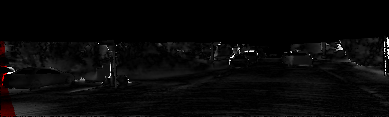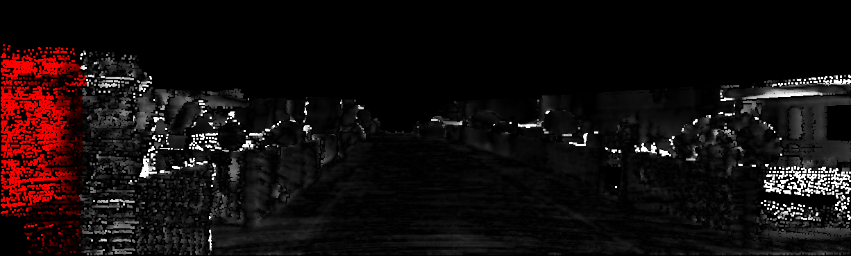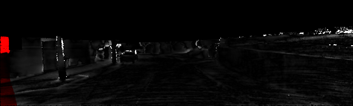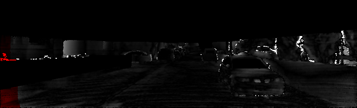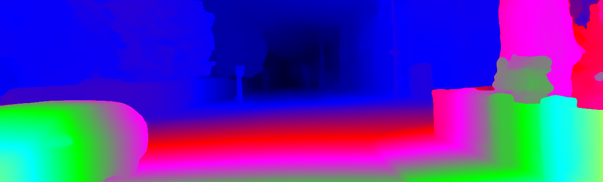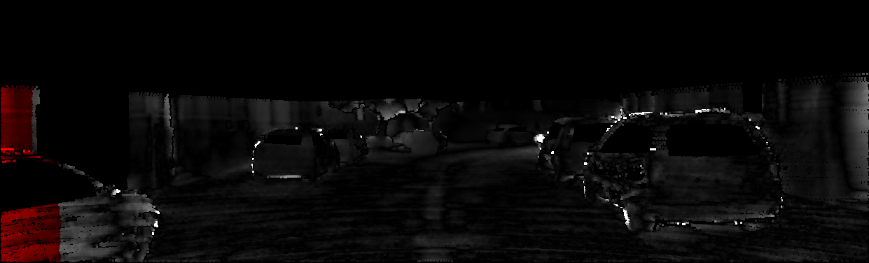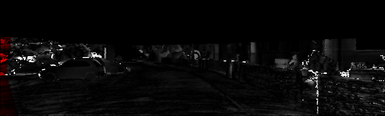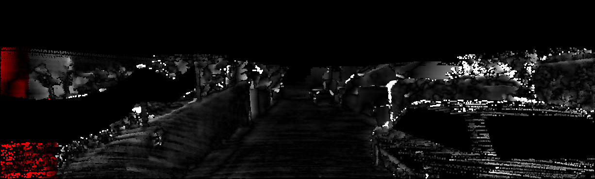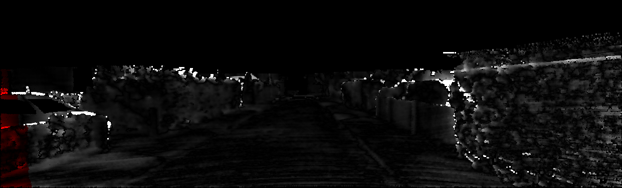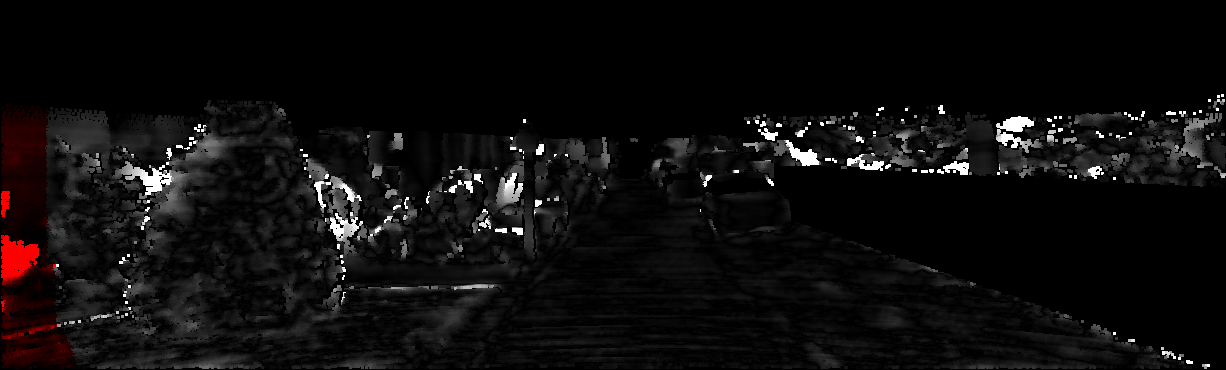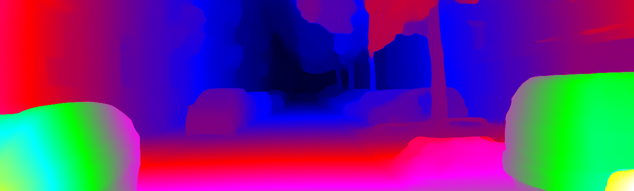 This page provides detailed results for the method(s) selected. For each of the first 20 test images, the number of erroneous pixels at all thresholds is depicted in the table. Underneath, the left input image, the disparity / end-point error map and the estimated (and interpolated) disparity / optical flow map are shown. The error map scales linearly between 0 (black) and >=5 (white) pixels error. Red denotes all occluded pixels, falling outside the image boundaries. The false color map is scaled to the largest ground truth disparity / flow value.