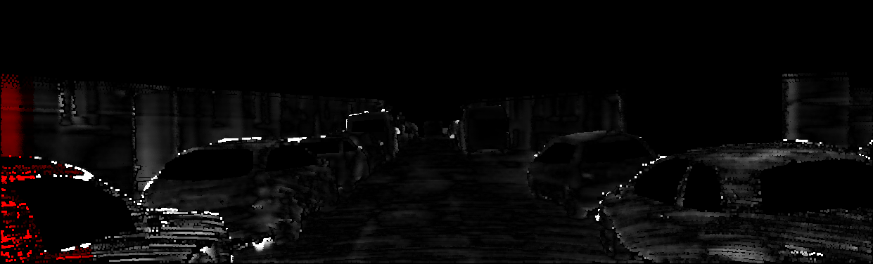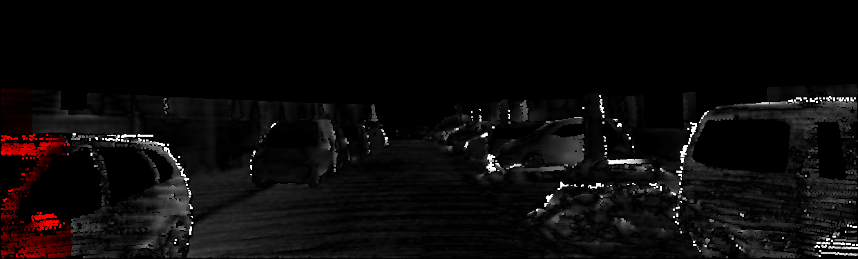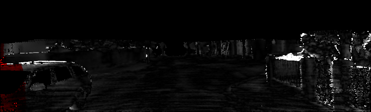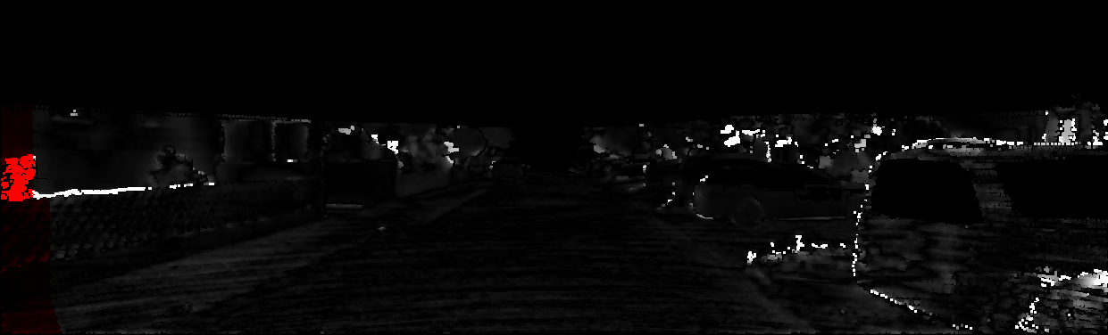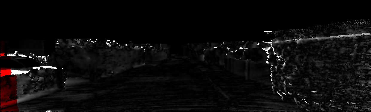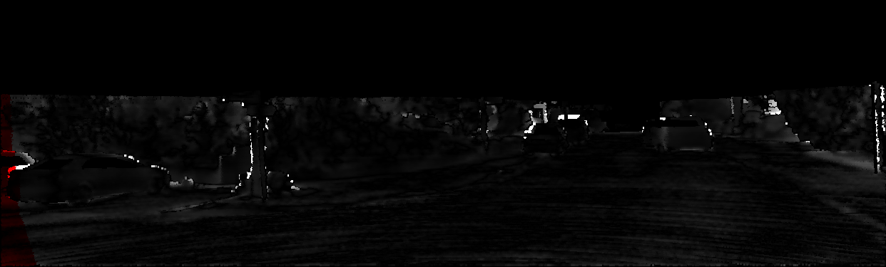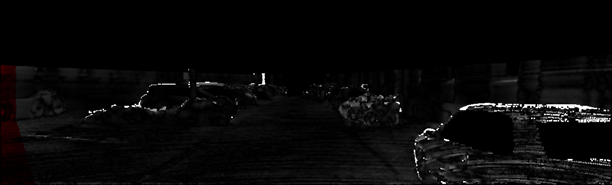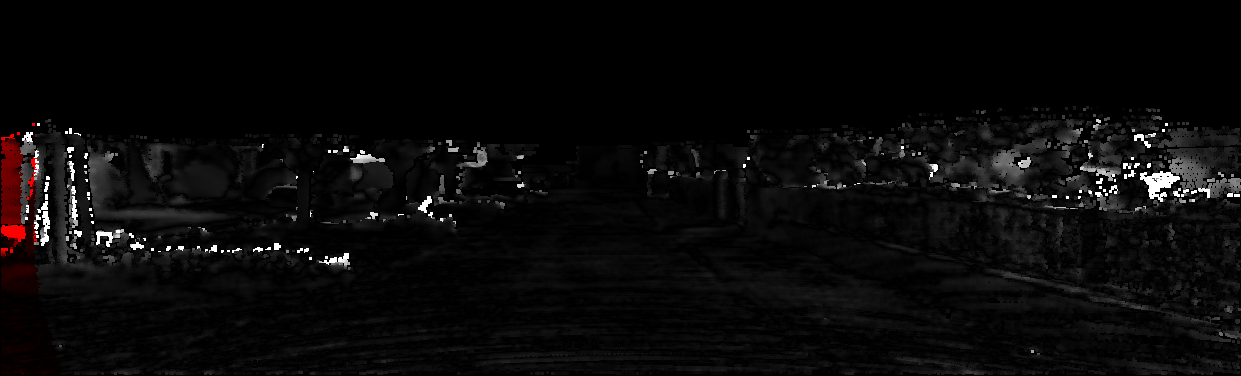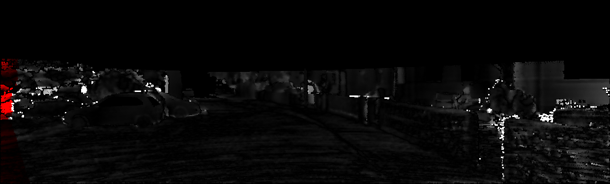 This page provides detailed results for the method(s) selected. For each of the first 20 test images, the number of erroneous pixels at all thresholds is depicted in the table. Underneath, the left input image, the disparity / end-point error map and the estimated (and interpolated) disparity / optical flow map are shown. The error map scales linearly between 0 (black) and >=5 (white) pixels error. Red denotes all occluded pixels, falling outside the image boundaries. The false color map is scaled to the largest ground truth disparity / flow value.