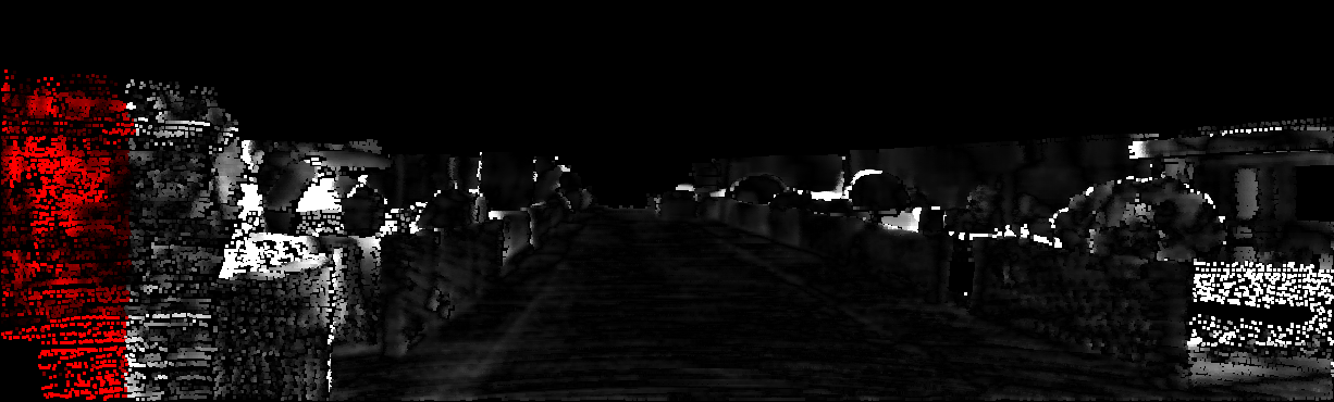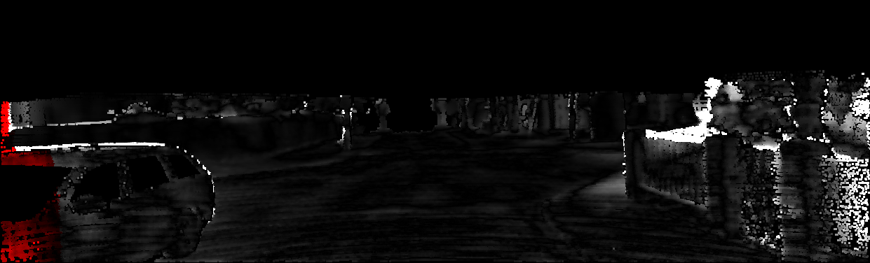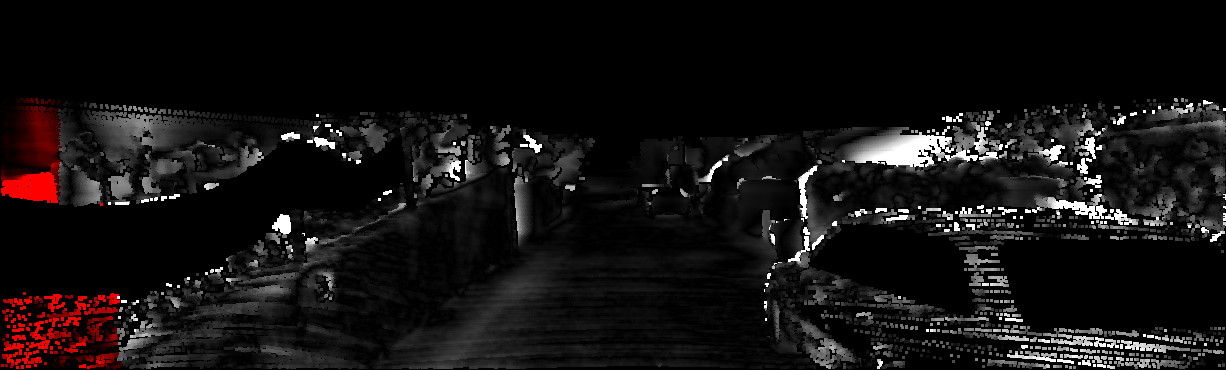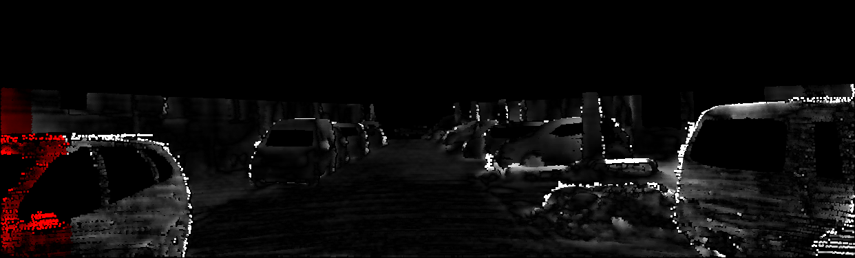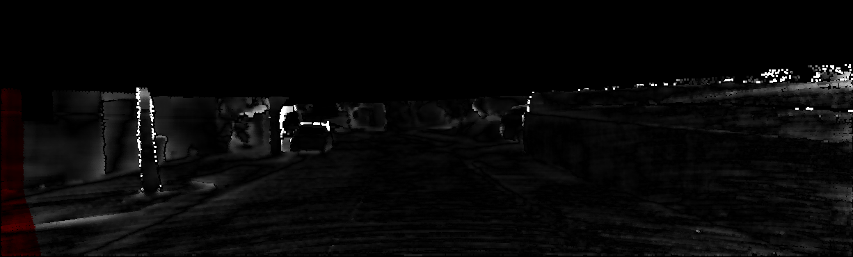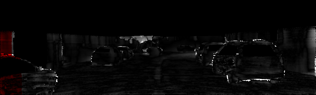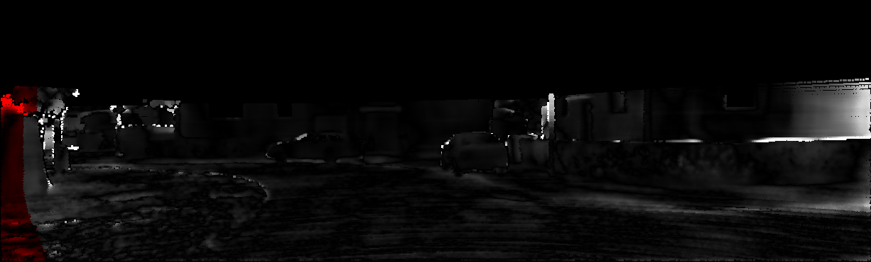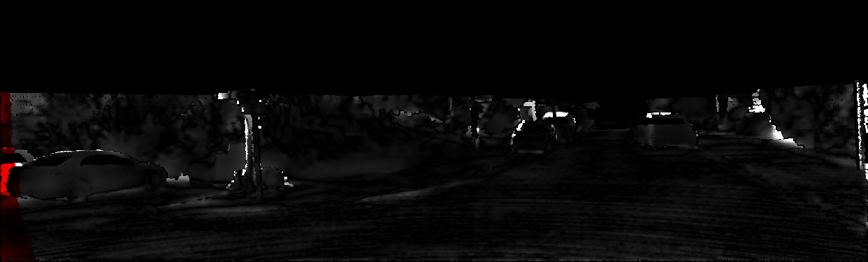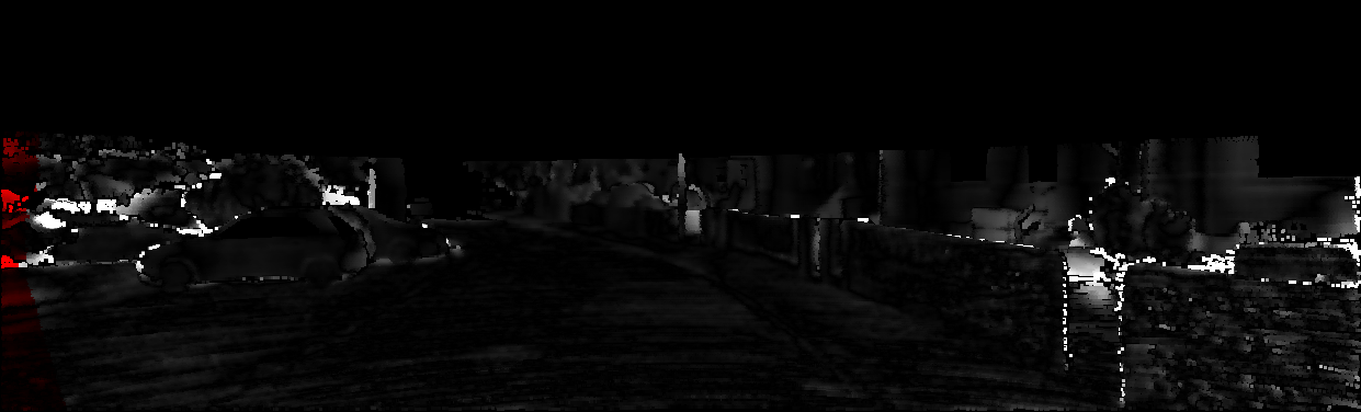 This page provides detailed results for the method(s) selected. For each of the first 20 test images, the number of erroneous pixels at all thresholds is depicted in the table. Underneath, the left input image, the disparity / end-point error map and the estimated (and interpolated) disparity / optical flow map are shown. The error map scales linearly between 0 (black) and >=5 (white) pixels error. Red denotes all occluded pixels, falling outside the image boundaries. The false color map is scaled to the largest ground truth disparity / flow value.