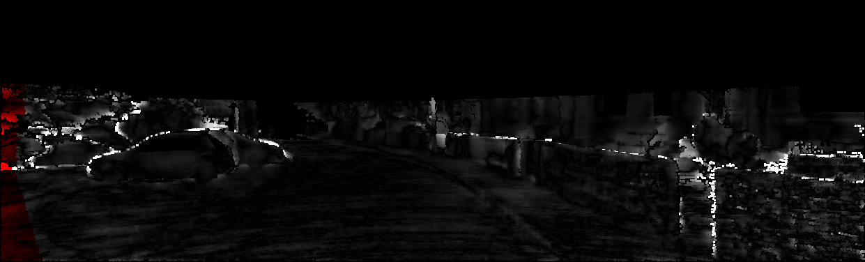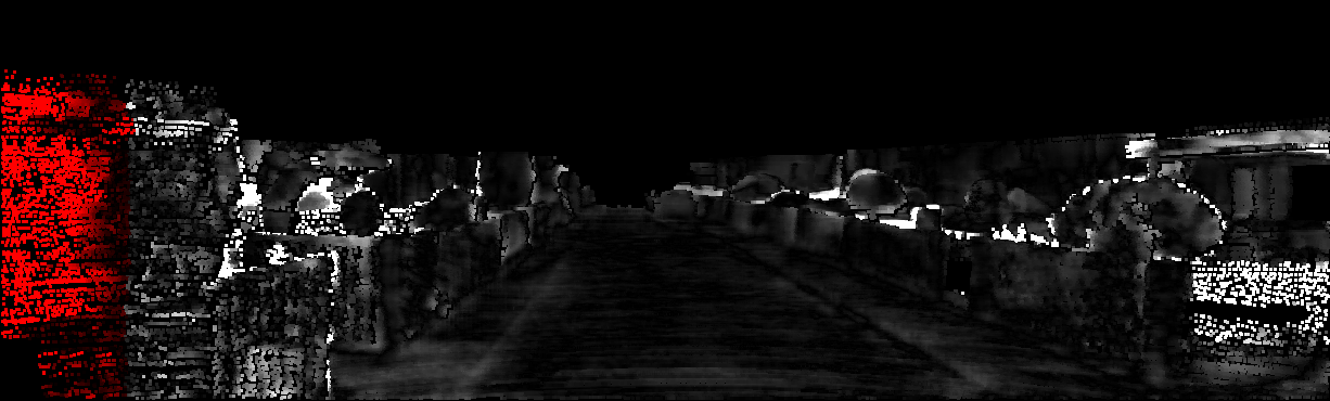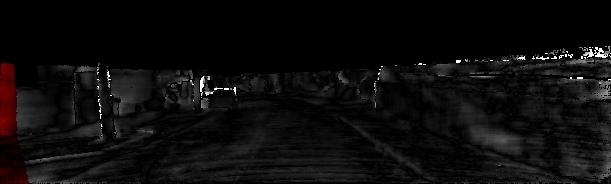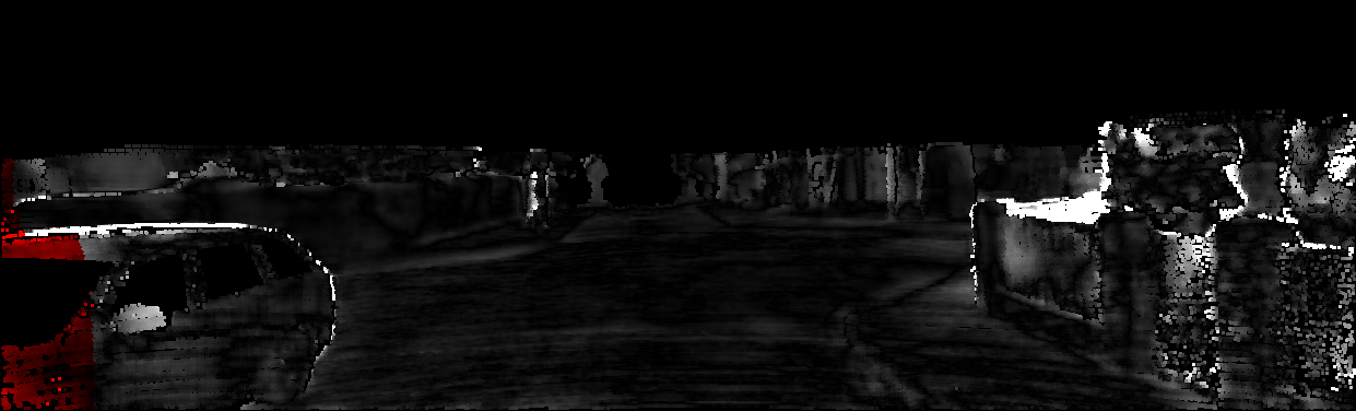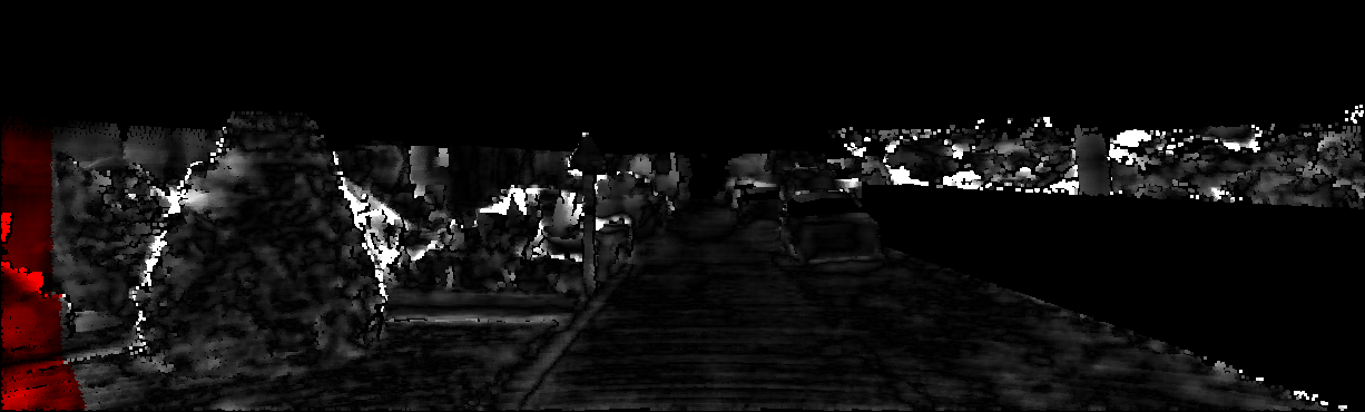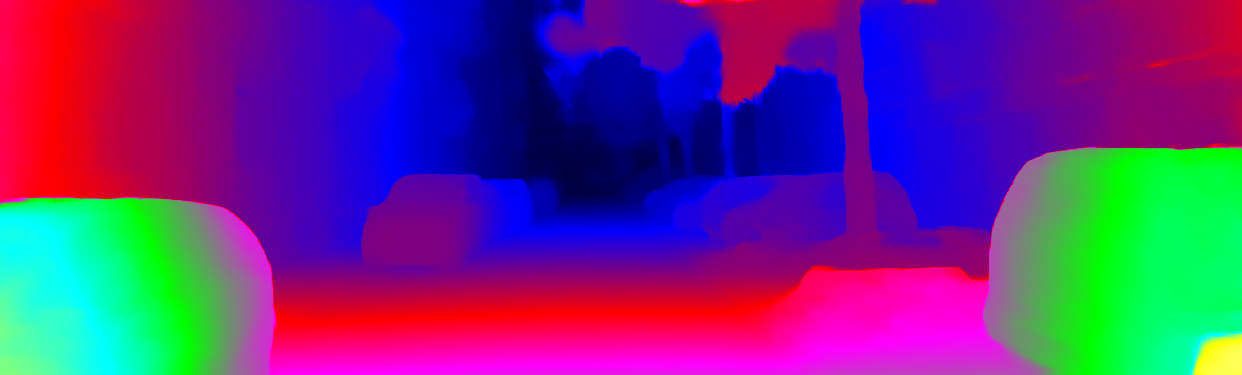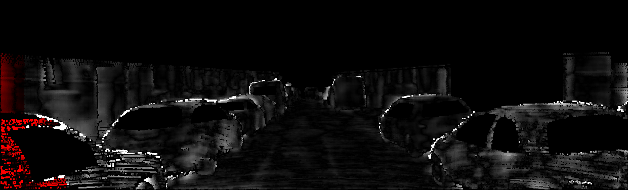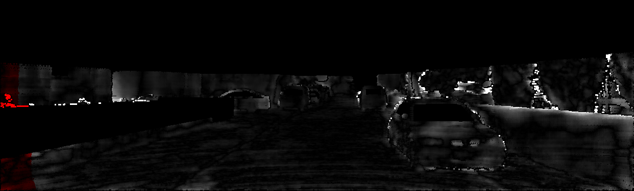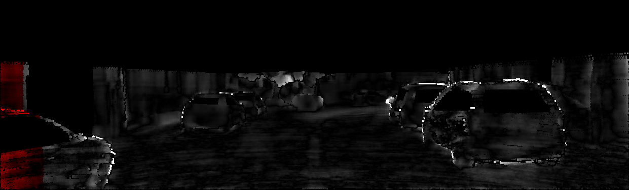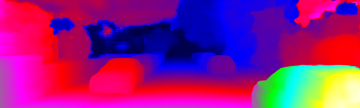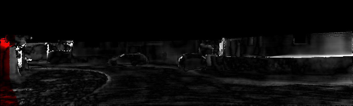 This page provides detailed results for the method(s) selected. For each of the first 20 test images, the number of erroneous pixels at all thresholds is depicted in the table. Underneath, the left input image, the disparity / end-point error map and the estimated (and interpolated) disparity / optical flow map are shown. The error map scales linearly between 0 (black) and >=5 (white) pixels error. Red denotes all occluded pixels, falling outside the image boundaries. The false color map is scaled to the largest ground truth disparity / flow value.