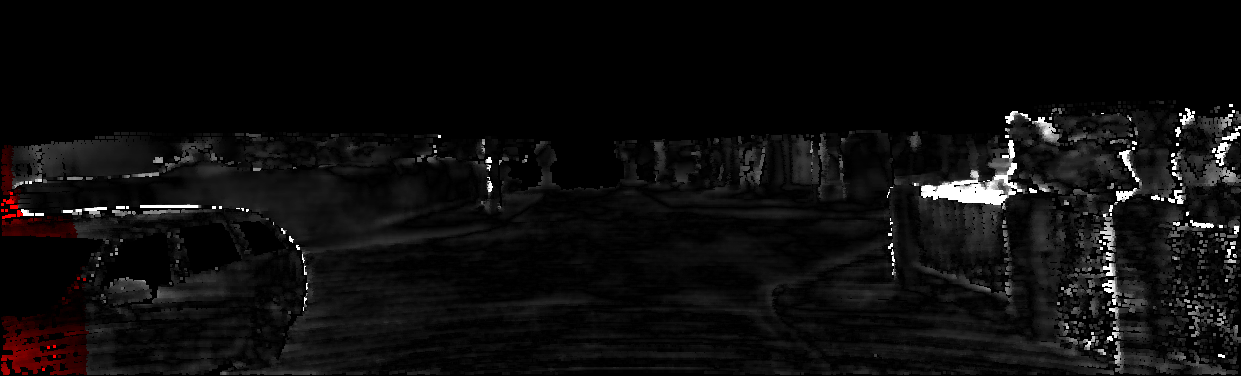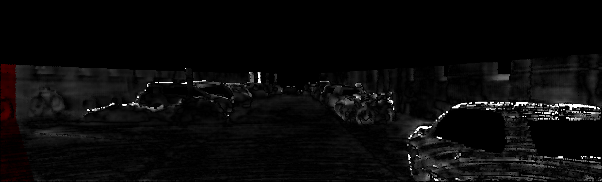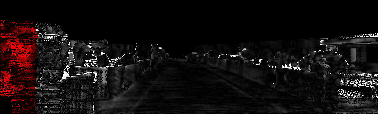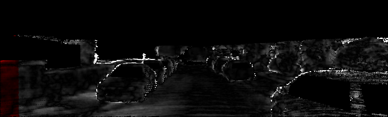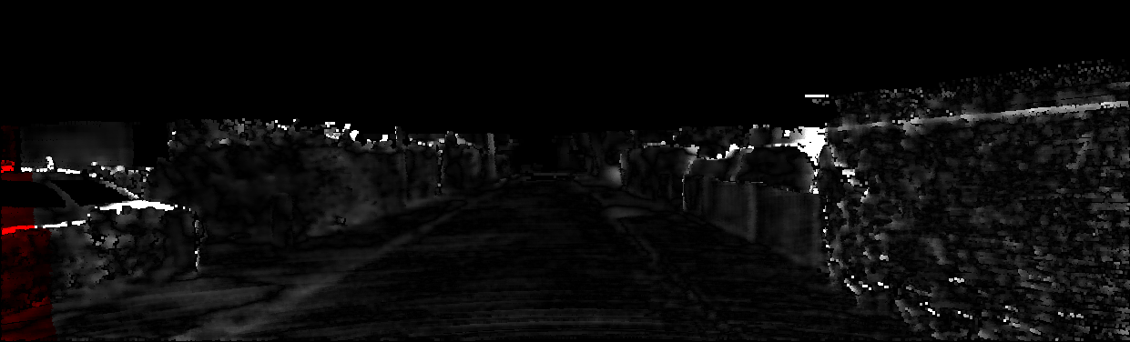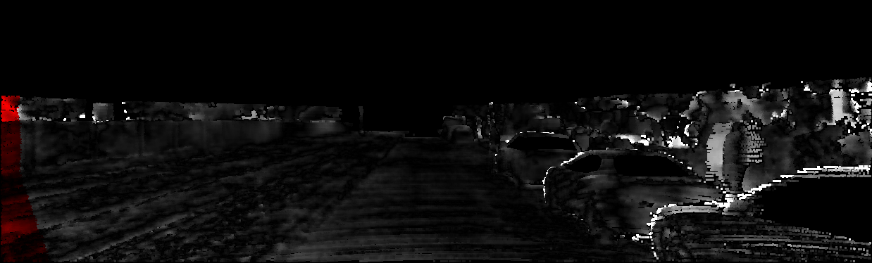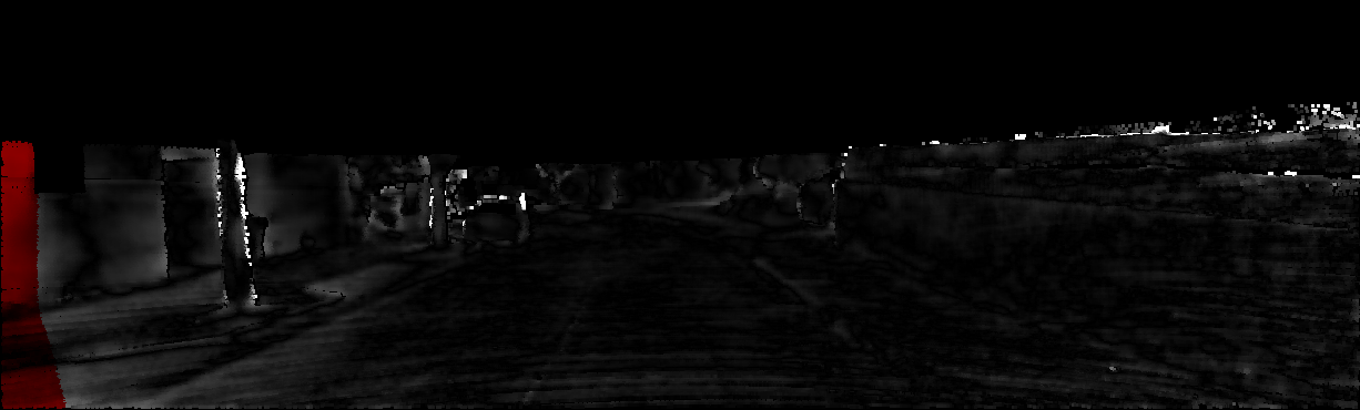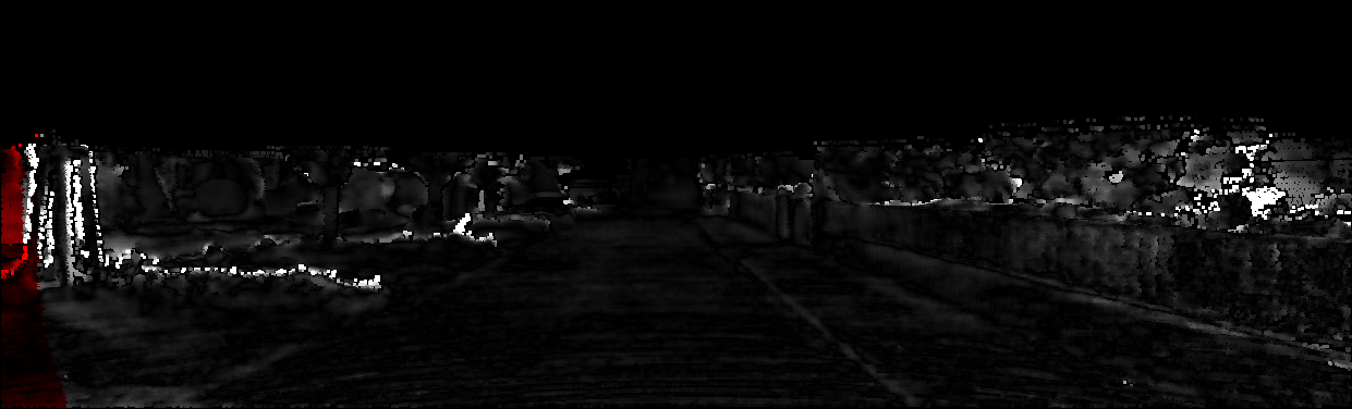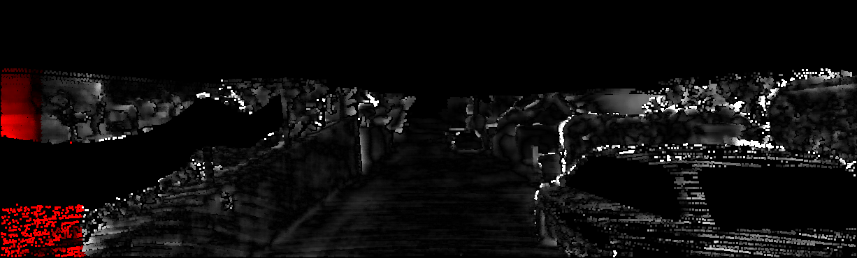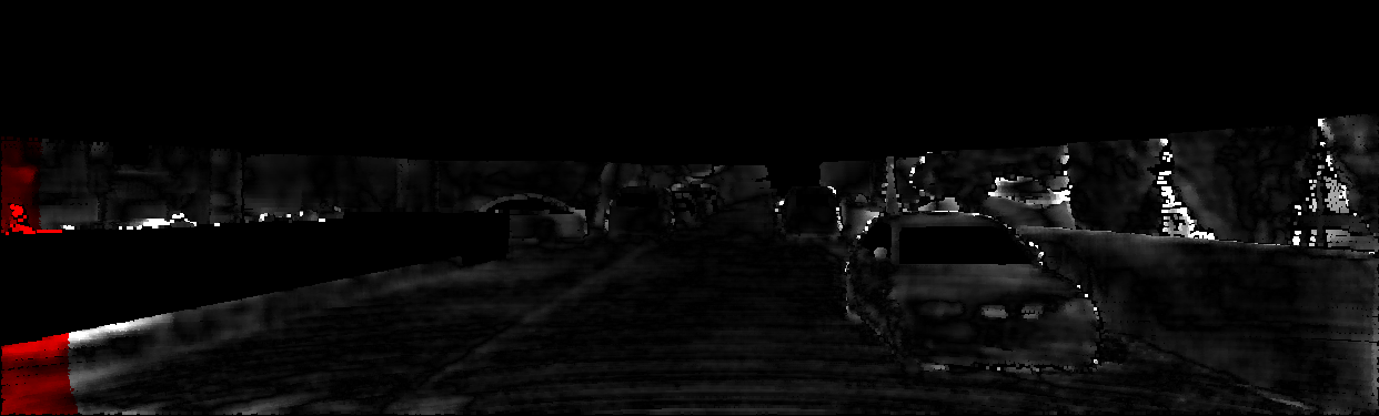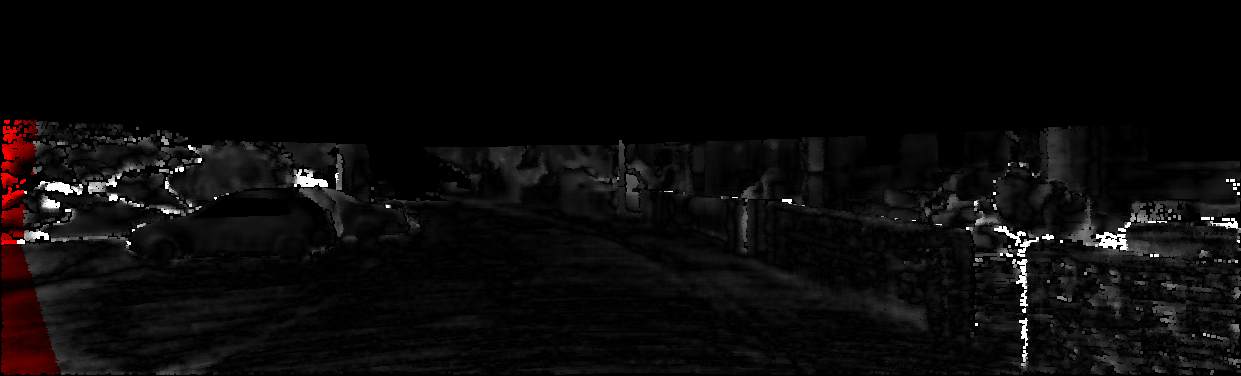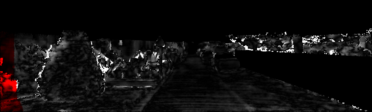This page provides detailed results for the method(s) selected. For each of the first 20 test images, the number of erroneous pixels at all thresholds is depicted in the table. Underneath, the left input image, the disparity / end-point error map and the estimated (and interpolated) disparity / optical flow map are shown. The error map scales linearly between 0 (black) and >=5 (white) pixels error. Red denotes all occluded pixels, falling outside the image boundaries. The false color map is scaled to the largest ground truth disparity / flow value.
