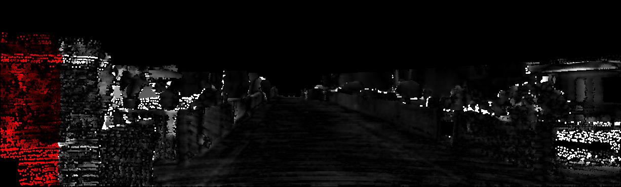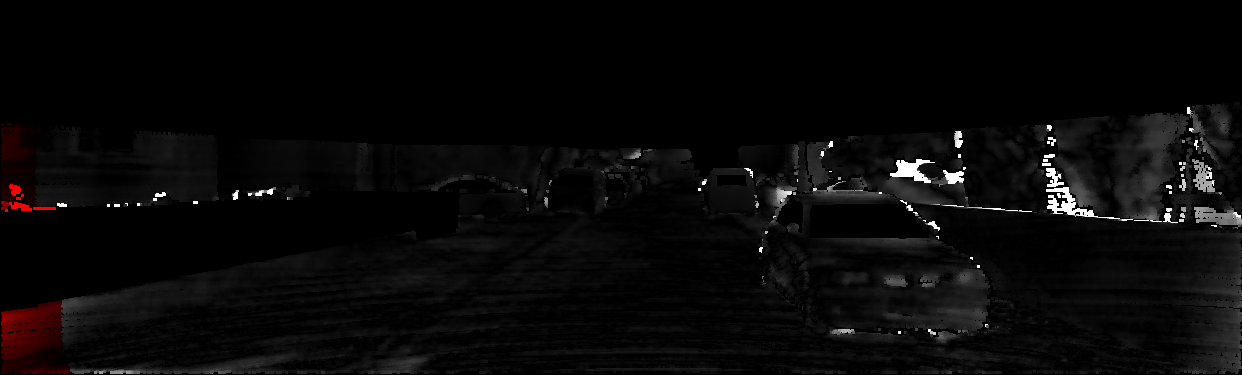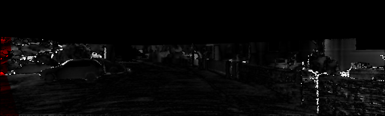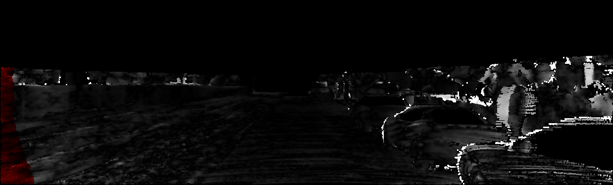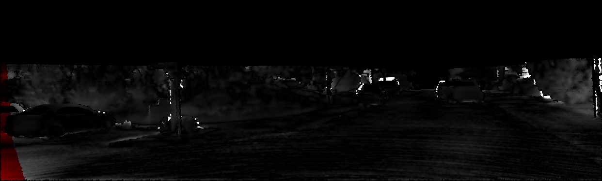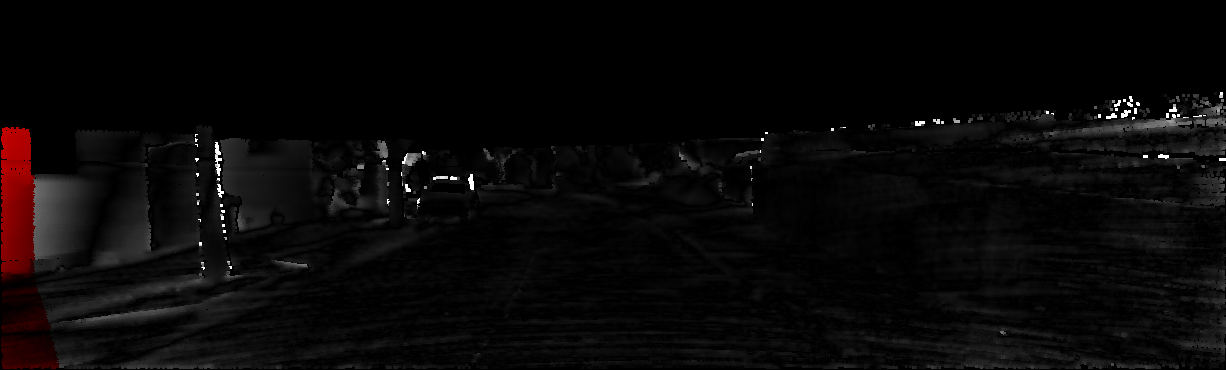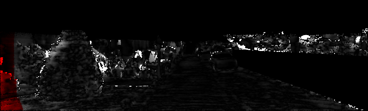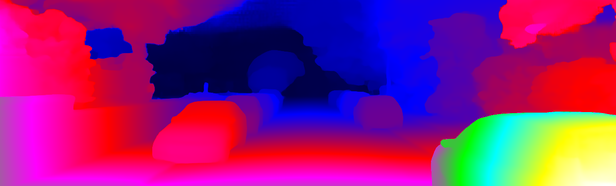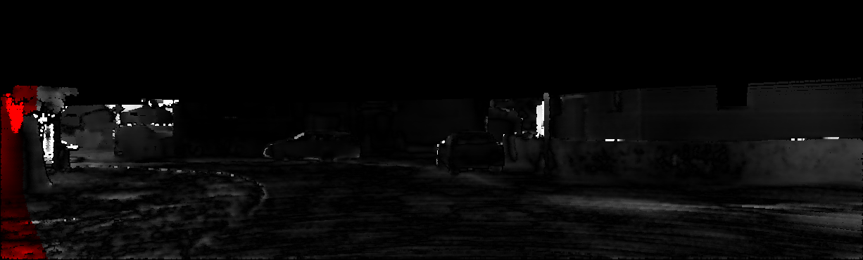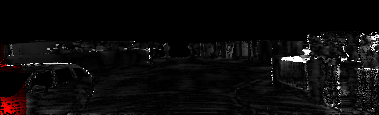 This page provides detailed results for the method(s) selected. For each of the first 20 test images, the number of erroneous pixels at all thresholds is depicted in the table. Underneath, the left input image, the disparity / end-point error map and the estimated (and interpolated) disparity / optical flow map are shown. The error map scales linearly between 0 (black) and >=5 (white) pixels error. Red denotes all occluded pixels, falling outside the image boundaries. The false color map is scaled to the largest ground truth disparity / flow value.
