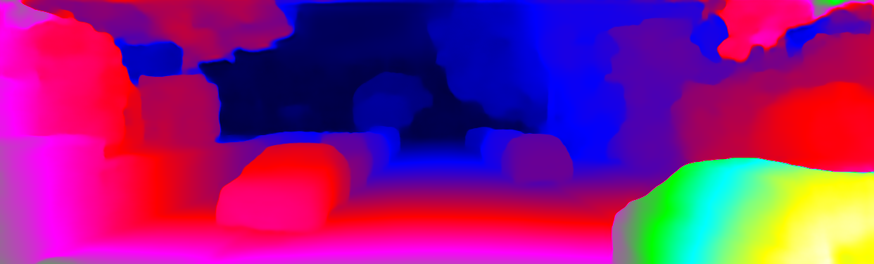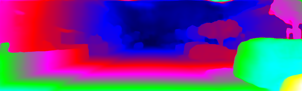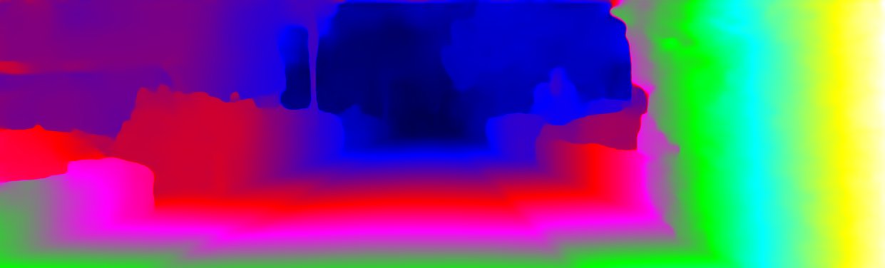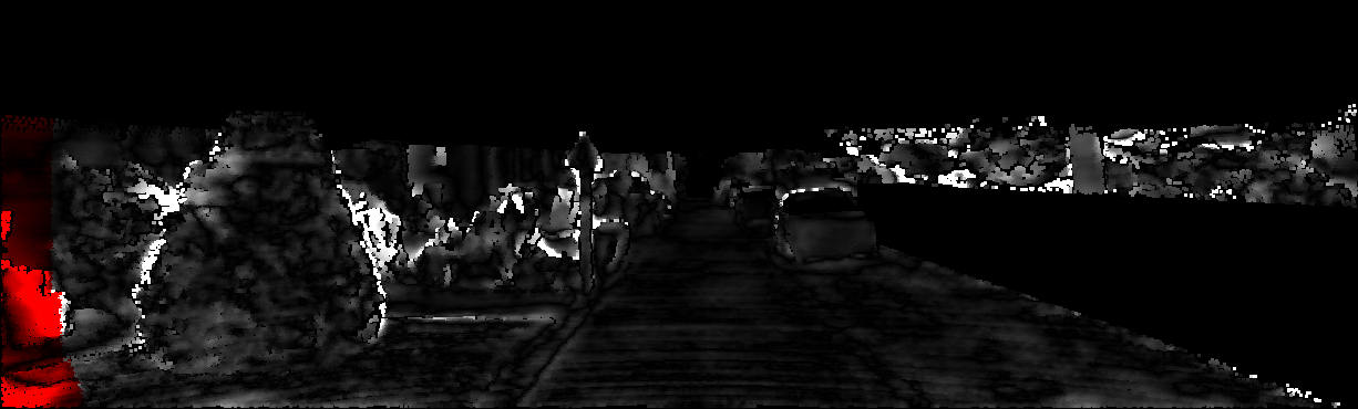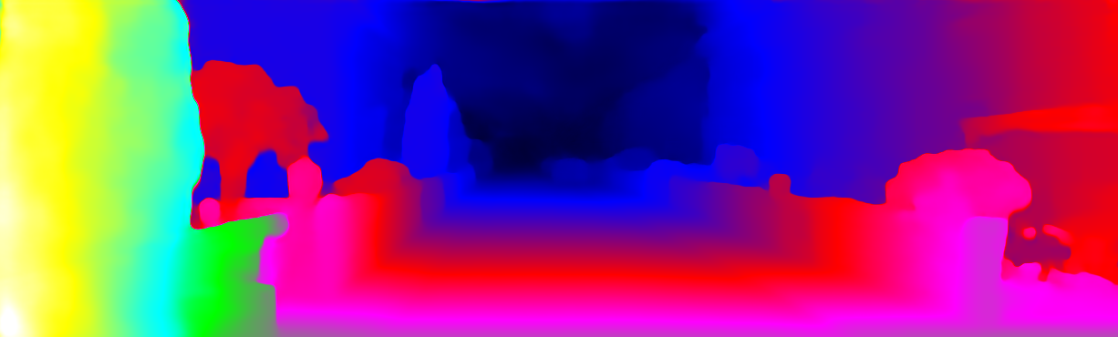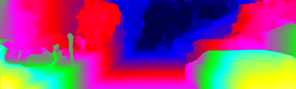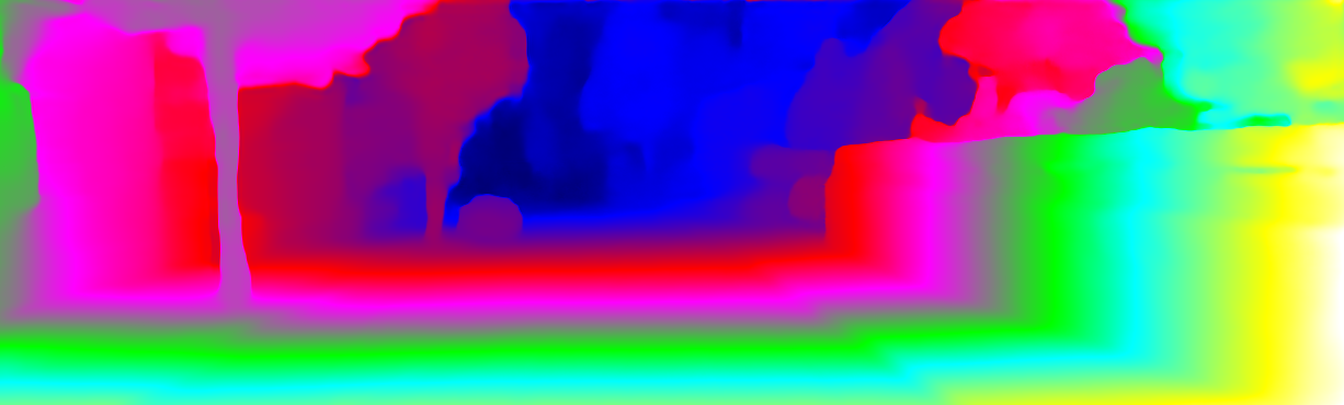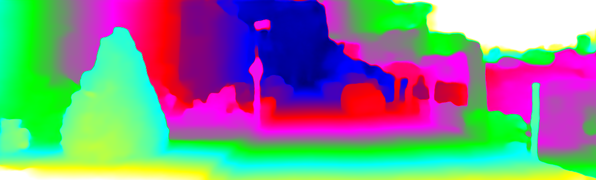 This page provides detailed results for the method(s) selected. For each of the first 20 test images, the number of erroneous pixels at all thresholds is depicted in the table. Underneath, the left input image, the disparity / end-point error map and the estimated (and interpolated) disparity / optical flow map are shown. The error map scales linearly between 0 (black) and >=5 (white) pixels error. Red denotes all occluded pixels, falling outside the image boundaries. The false color map is scaled to the largest ground truth disparity / flow value.