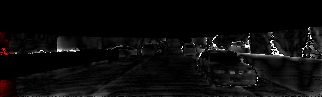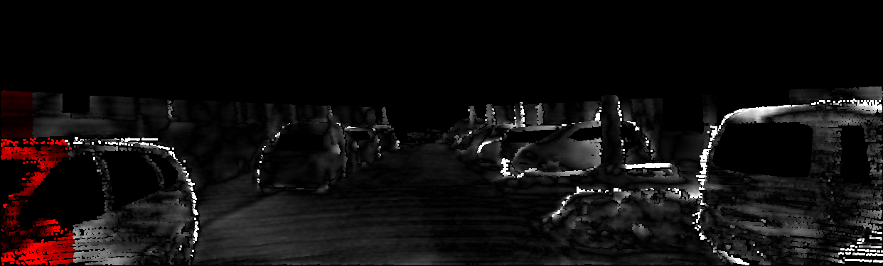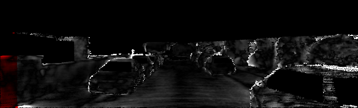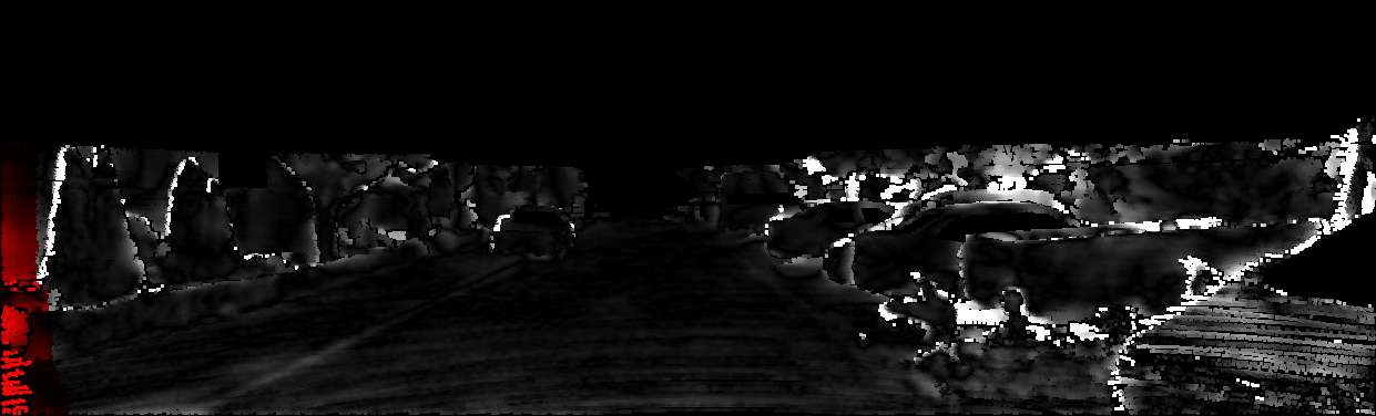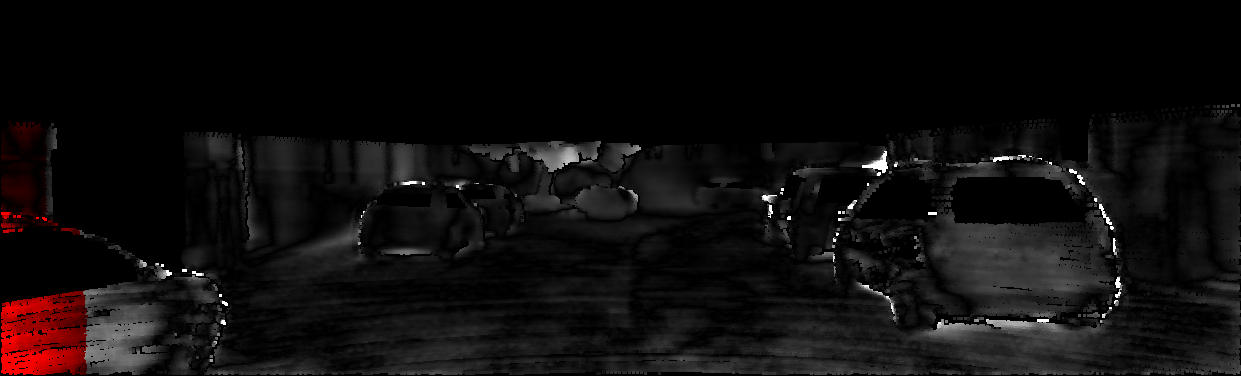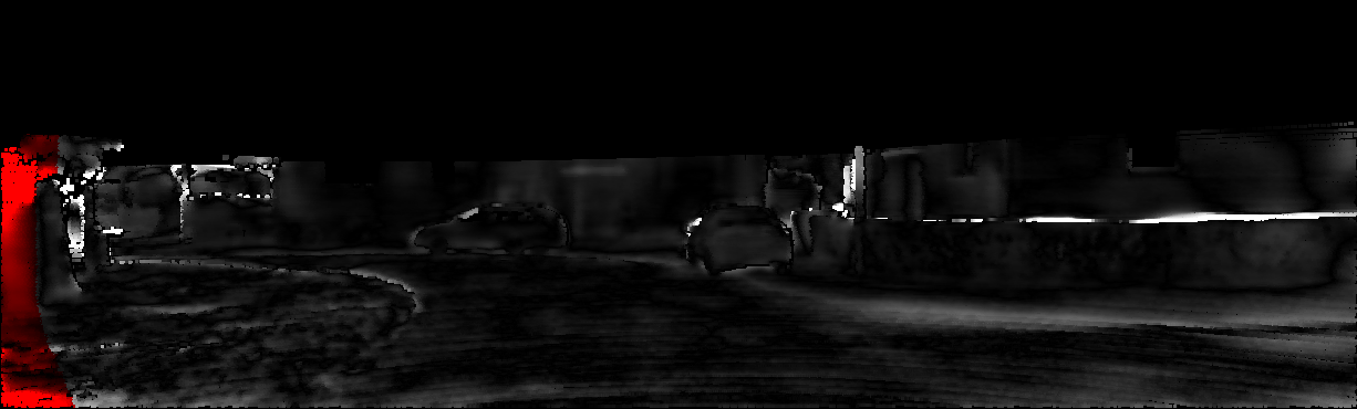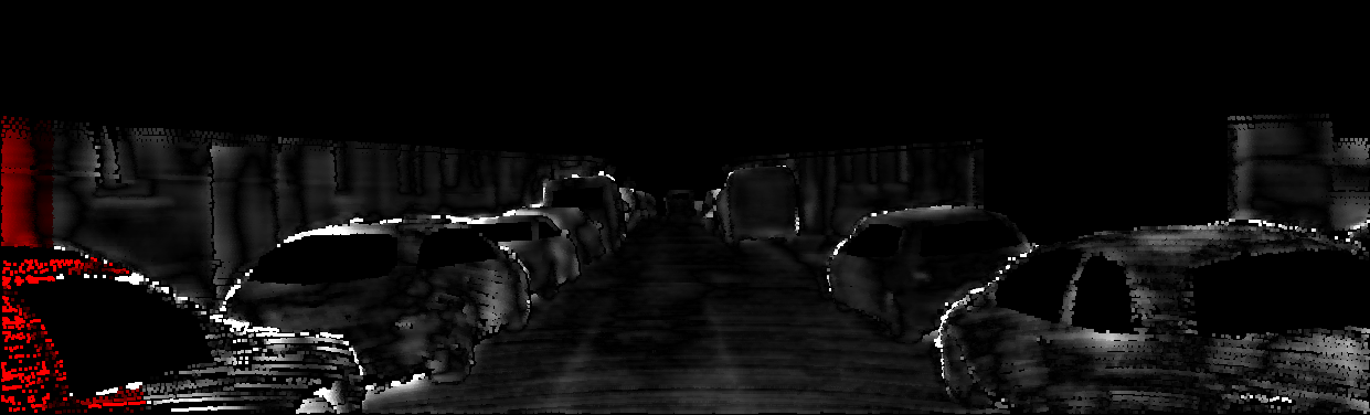 This page provides detailed results for the method(s) selected. For each of the first 20 test images, the number of erroneous pixels at all thresholds is depicted in the table. Underneath, the left input image, the disparity / end-point error map and the estimated (and interpolated) disparity / optical flow map are shown. The error map scales linearly between 0 (black) and >=5 (white) pixels error. Red denotes all occluded pixels, falling outside the image boundaries. The false color map is scaled to the largest ground truth disparity / flow value.
