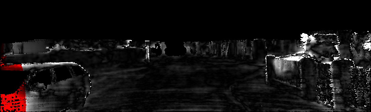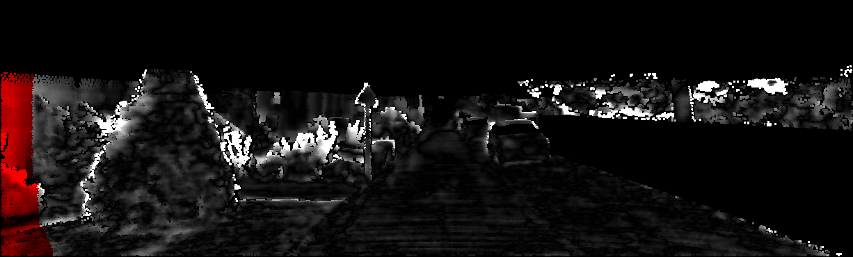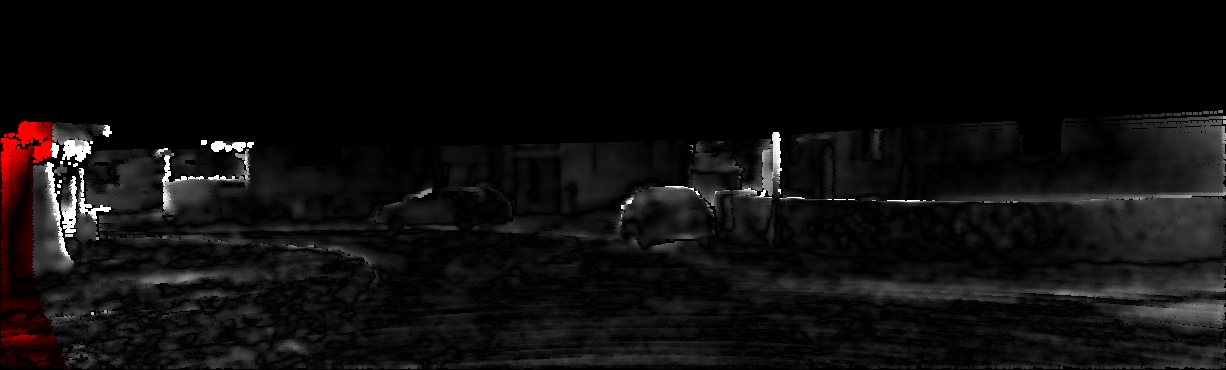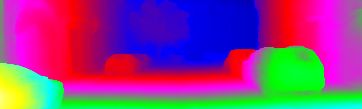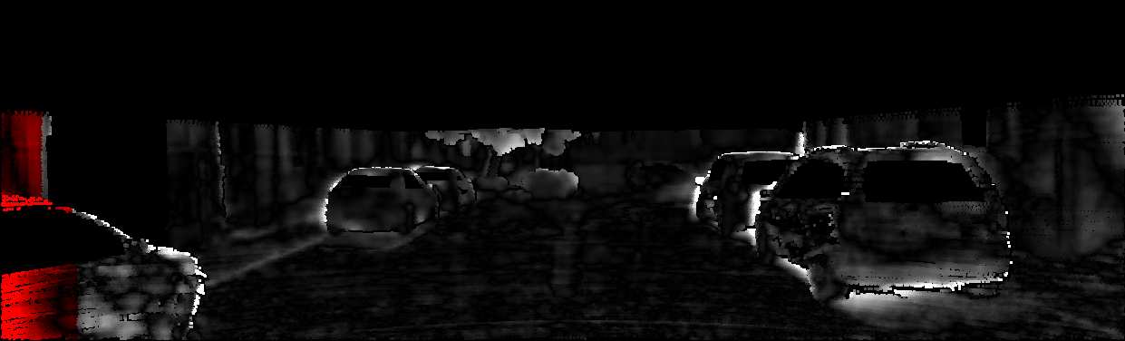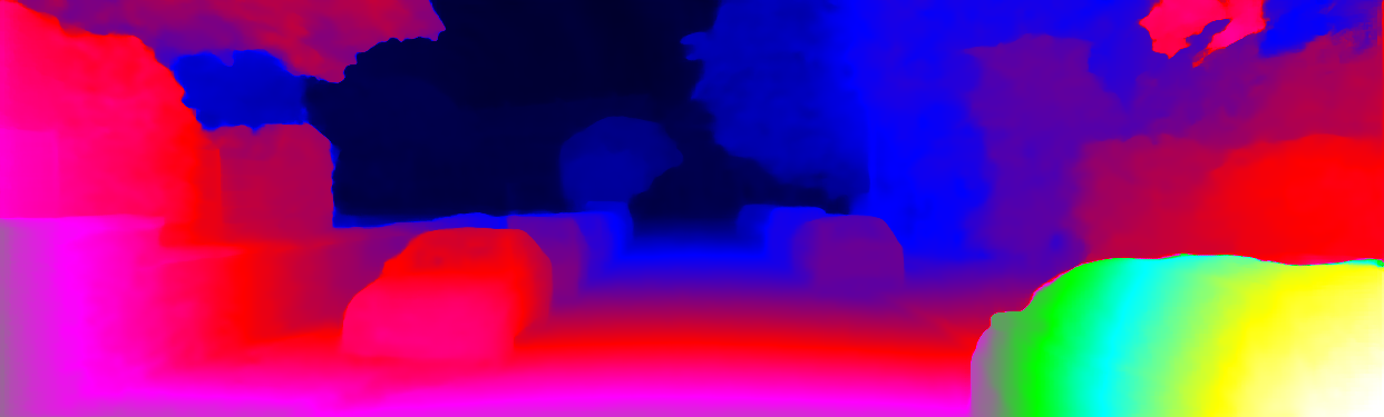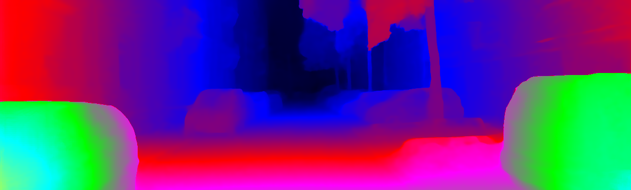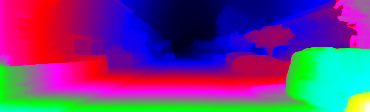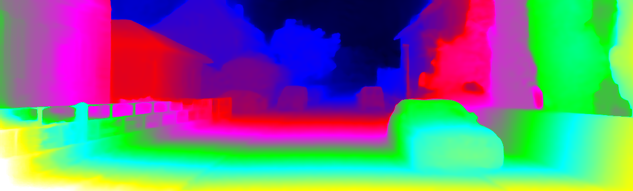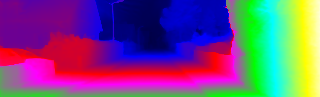 This page provides detailed results for the method(s) selected. For each of the first 20 test images, the number of erroneous pixels at all thresholds is depicted in the table. Underneath, the left input image, the disparity / end-point error map and the estimated (and interpolated) disparity / optical flow map are shown. The error map scales linearly between 0 (black) and >=5 (white) pixels error. Red denotes all occluded pixels, falling outside the image boundaries. The false color map is scaled to the largest ground truth disparity / flow value.
