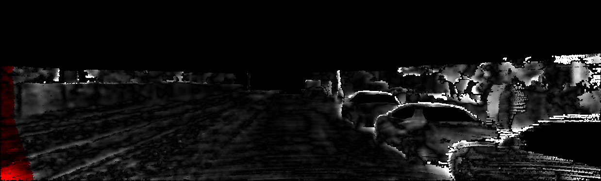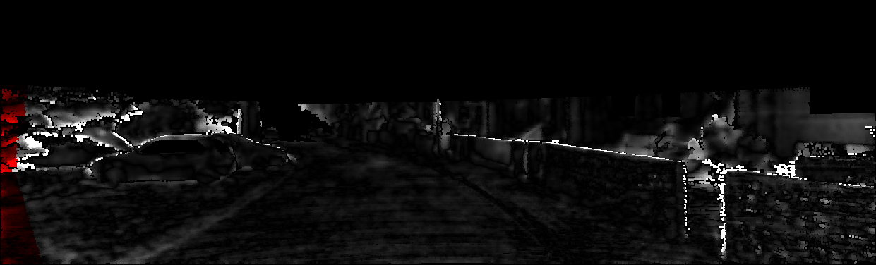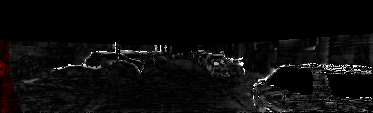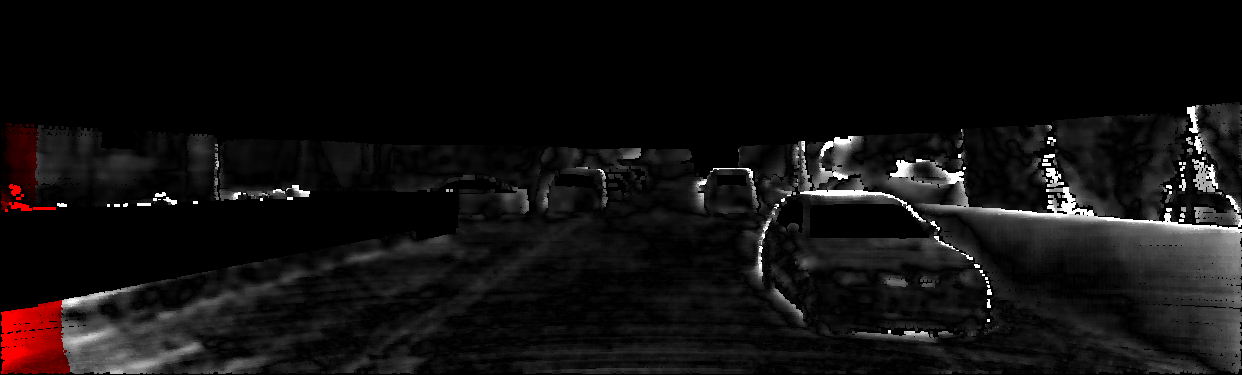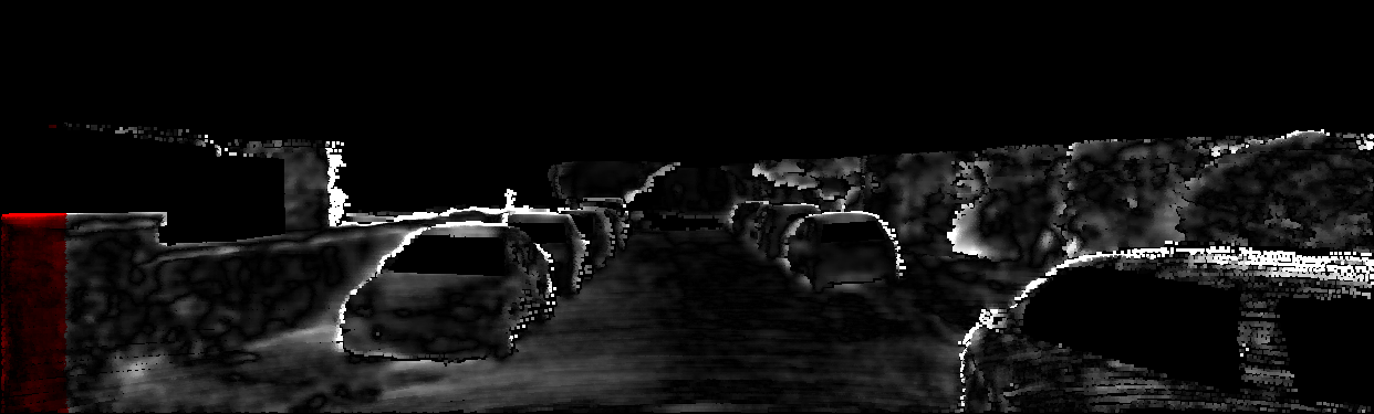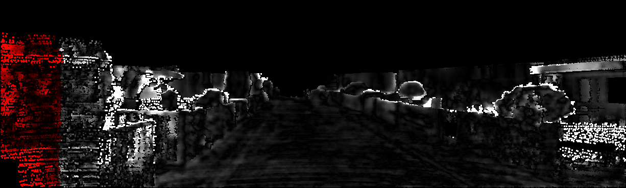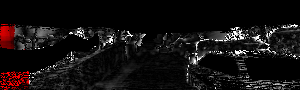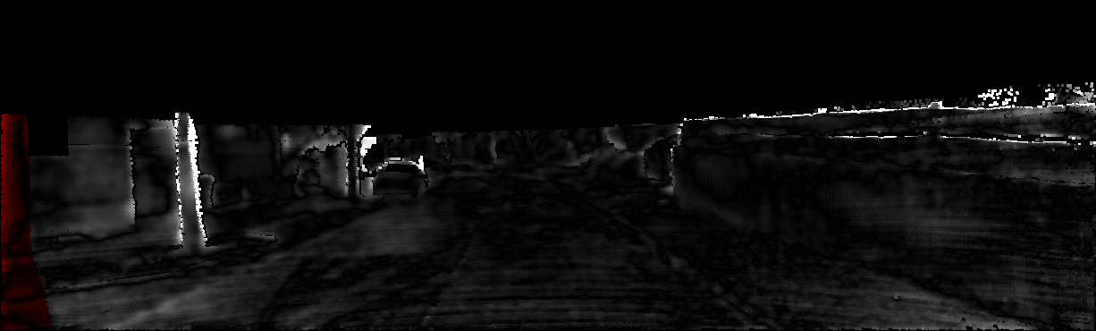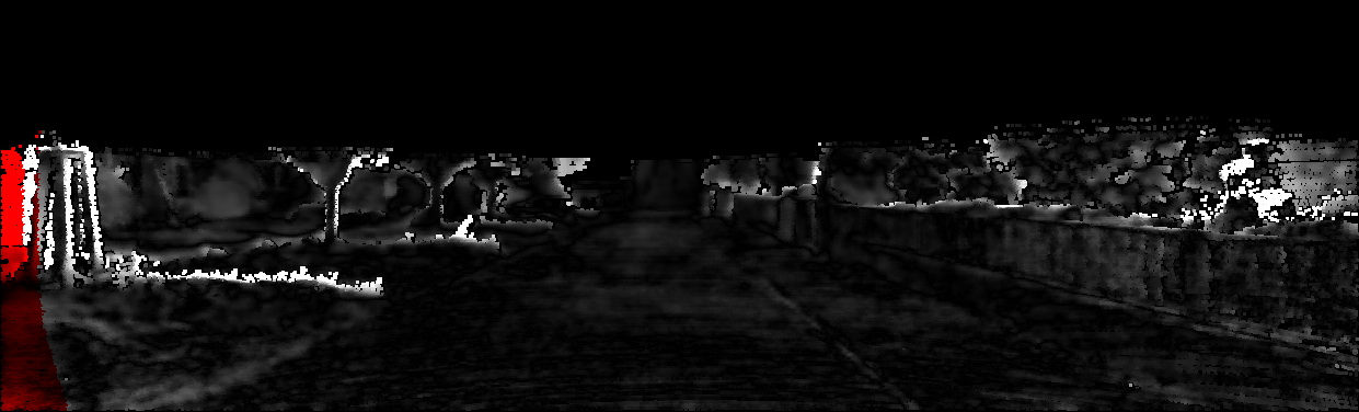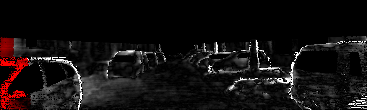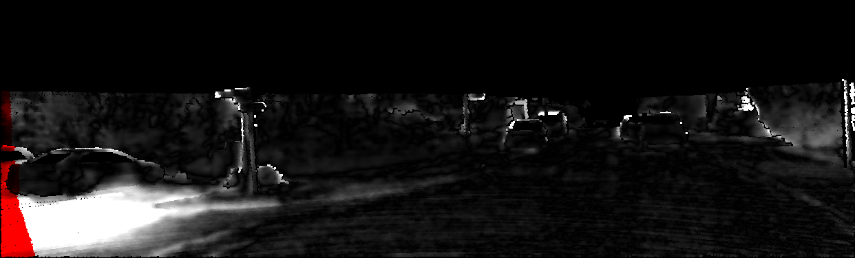 This page provides detailed results for the method(s) selected. For each of the first 20 test images, the number of erroneous pixels at all thresholds is depicted in the table. Underneath, the left input image, the disparity / end-point error map and the estimated (and interpolated) disparity / optical flow map are shown. The error map scales linearly between 0 (black) and >=5 (white) pixels error. Red denotes all occluded pixels, falling outside the image boundaries. The false color map is scaled to the largest ground truth disparity / flow value.