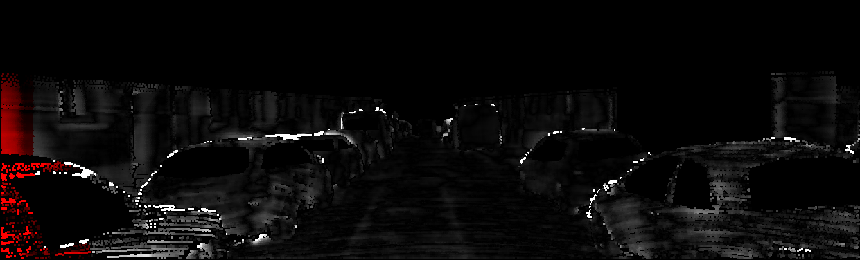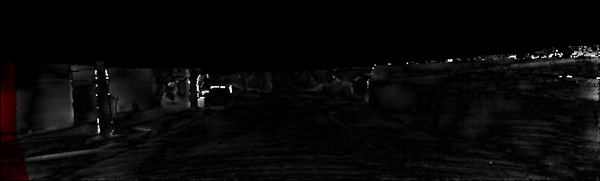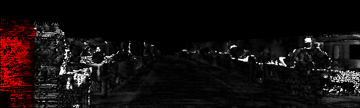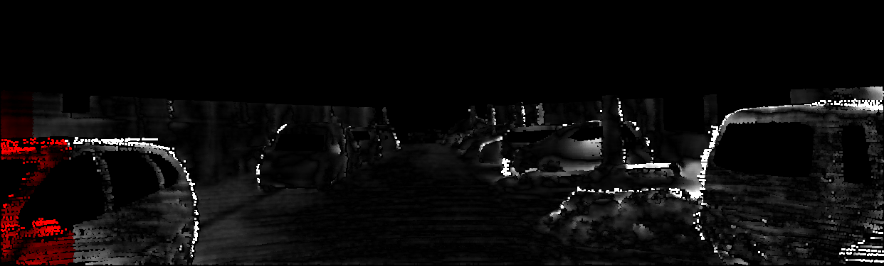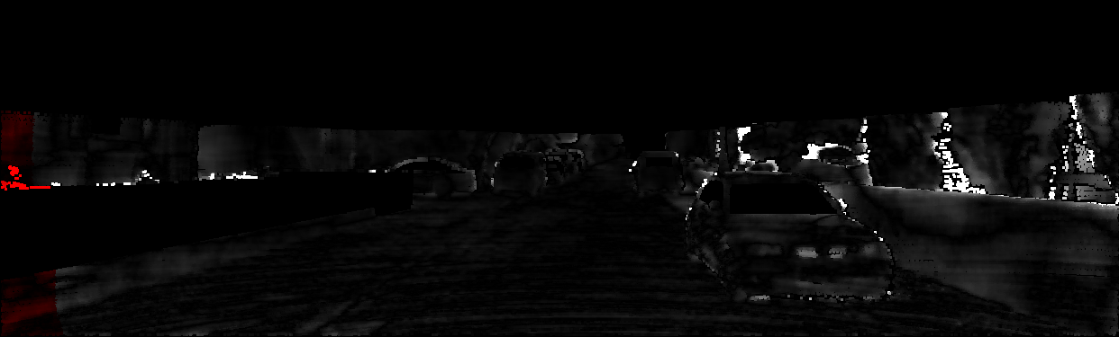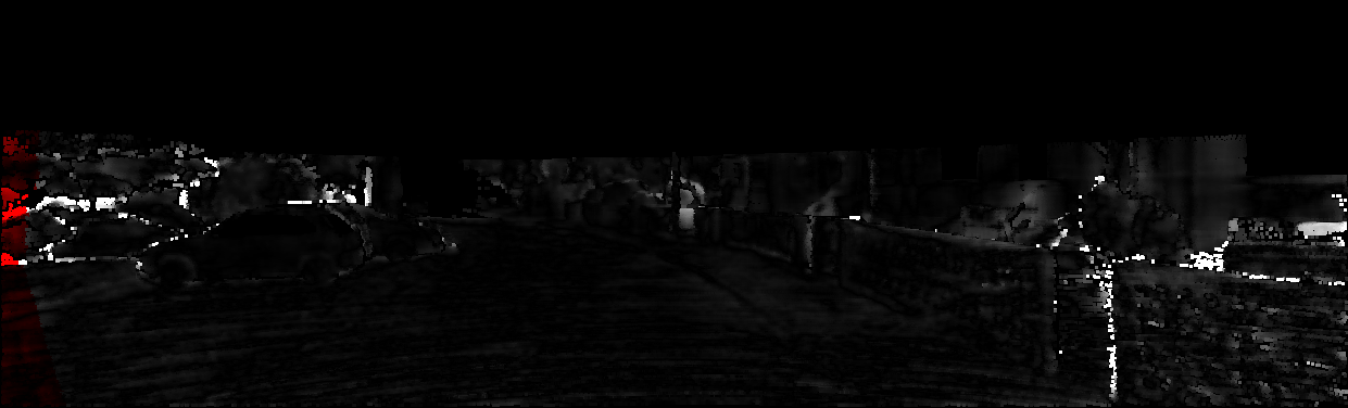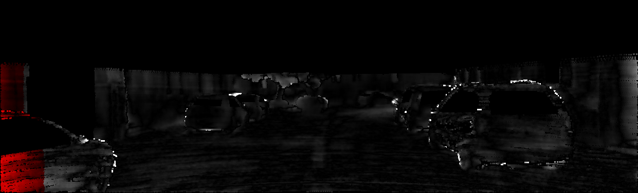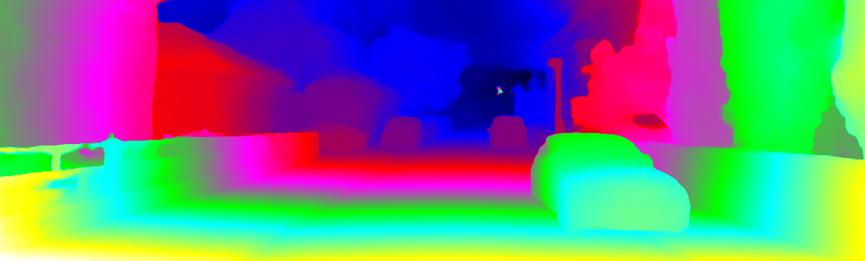 This page provides detailed results for the method(s) selected. For each of the first 20 test images, the number of erroneous pixels at all thresholds is depicted in the table. Underneath, the left input image, the disparity / end-point error map and the estimated (and interpolated) disparity / optical flow map are shown. The error map scales linearly between 0 (black) and >=5 (white) pixels error. Red denotes all occluded pixels, falling outside the image boundaries. The false color map is scaled to the largest ground truth disparity / flow value.
